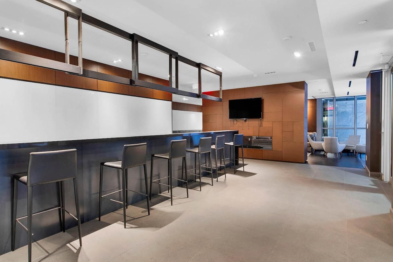 • Amenities include outdoor terrace, fitness center, and golf simulator.