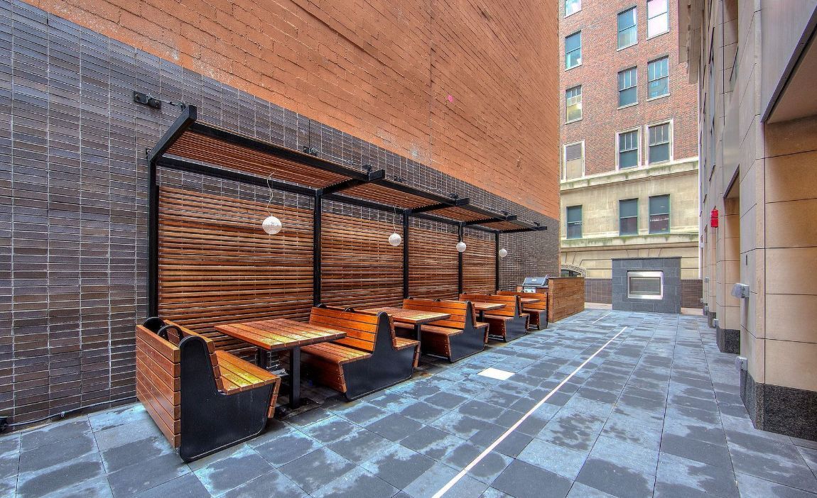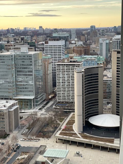 Experience luxury living in this stunning 1-bedroom, 1-bath suite in the heart of toronto's financial district. Enjoy breathtaking city views through floor-to-ceiling windows and 9 ceilings that flood the space with natural light. The open-concept layout features laminate flooring, a modern kitchen with quartz countertops, built-in appliances, and a wine cooler. The spacious bedroom also offers floor-to-ceiling windows and ample closet space. Step out onto the open balcony for a peaceful retreat above the city. Residents enjoy premium amenities, including 24-hour concierge and security, a fully equipped gym, and an outdoor terrace with bbqs. With direct access to the underground path and just steps to public transit, this location combines comfort, convenience, and sophistication.