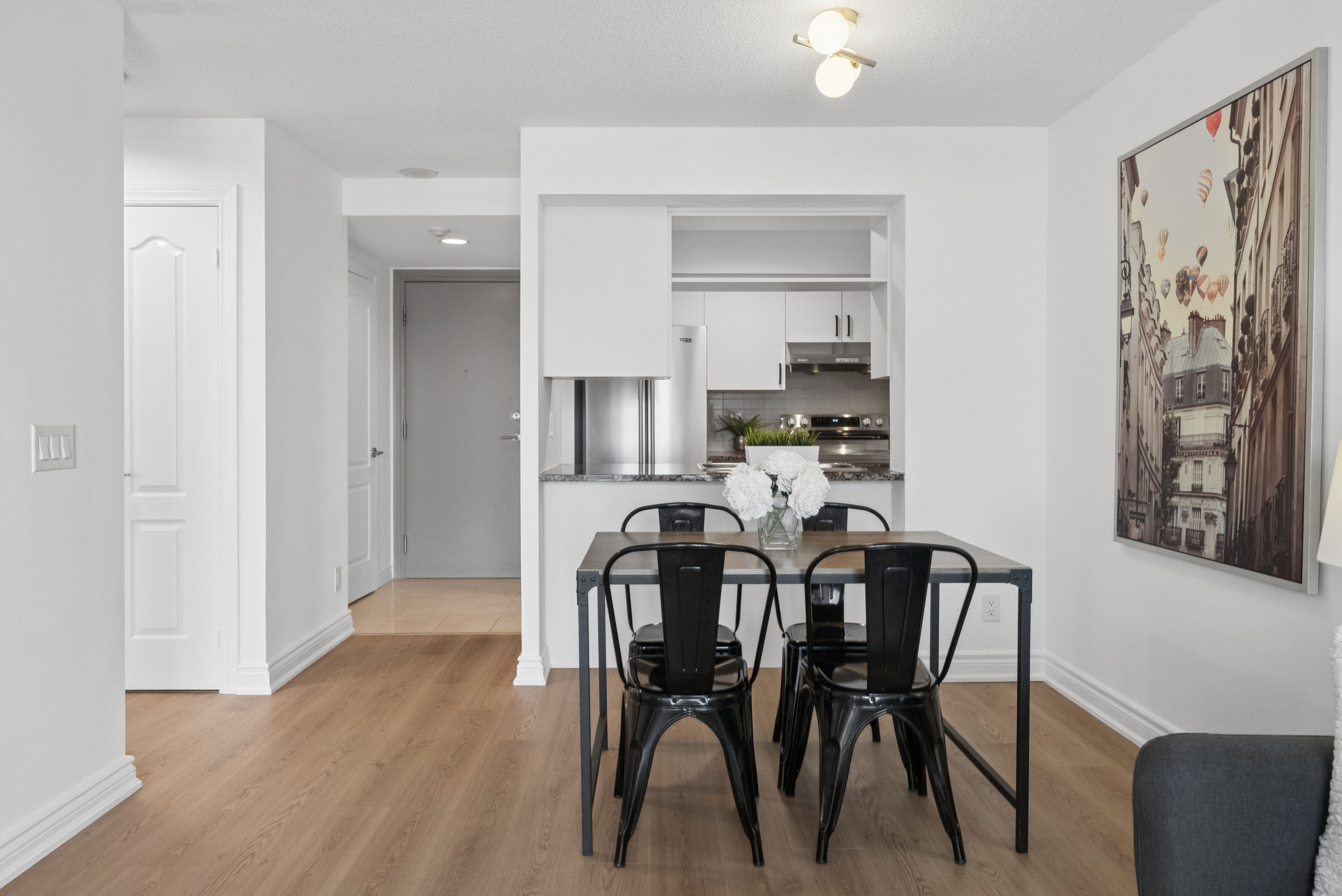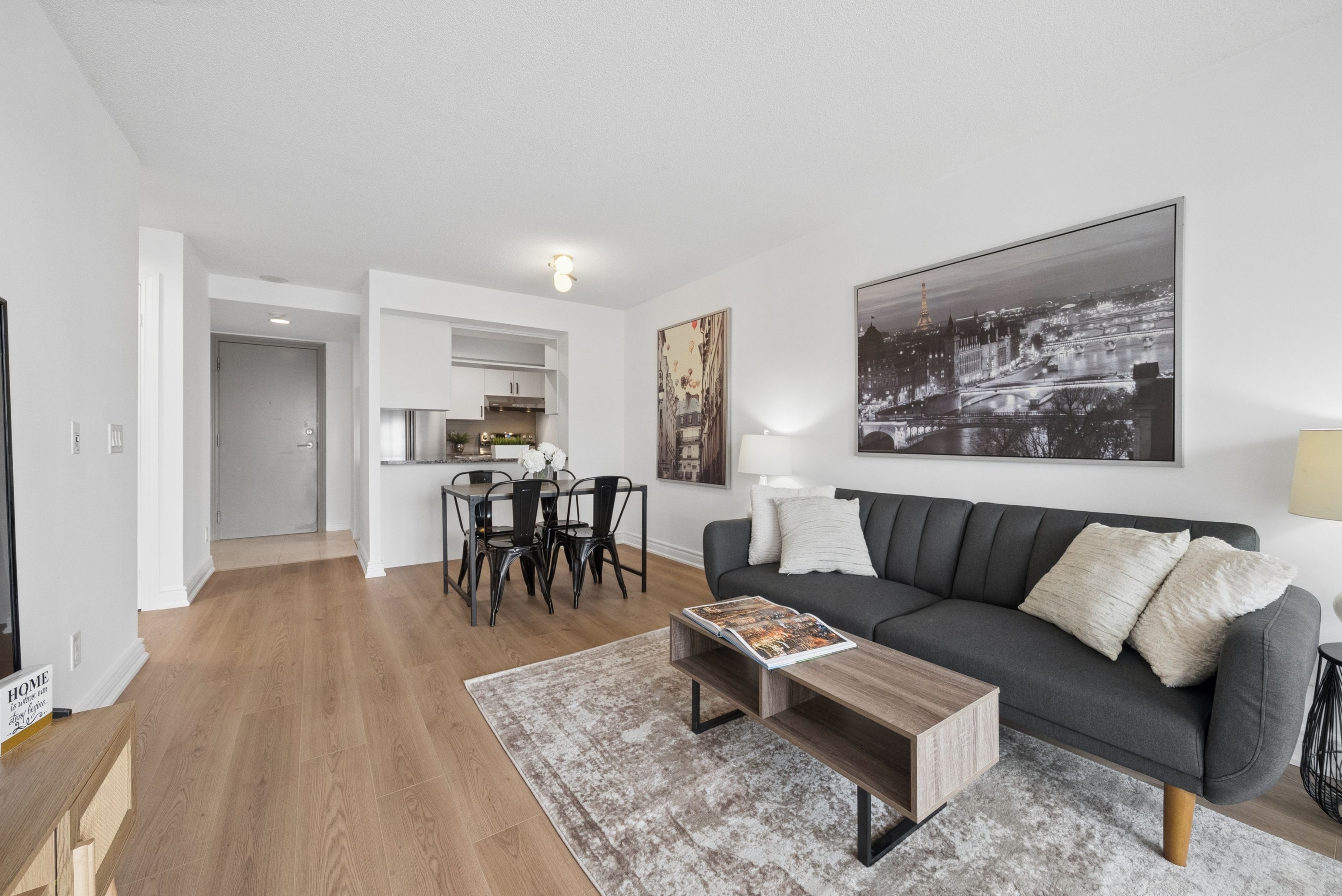 Welcome to eq1 condos, built by monarch group, a division of mattamy homes. This 650 sq ft 1 bedroom + den unit + a balcony is upgraded and move-in ready. Including laminate flooring, fresh paint, kitchen with granite countertops and stainless steel appliances, upgraded bathroom vanity and electric light fixtures. It's a functional layout with large principal rooms, great natural light and plenty of storage. The open concept living and dining room is ideal for day-to-day life and for entertaining. The solarium is a separate room that can make for a great home office or a guest room. You'll love living in a well-managed building with top-tier amenities including: 24-hour concierge and security, gym, exercise room, theatre, guest suites, and underground visitor parking. The location is exceptional for three key reasons: one: unrivalled connectivity: a 2 minute drive to the 401, a 2 minute walk to the ttc, a 10 minute drive to the go station. Two: ultimate convenience & entertainment: a variety of stores on the main floor of the building, a playground and an off leash dog area, a 4 minute walk to scarborough town center with an endless assortment of shops, restaurants, coffee shops, big box retailers and a movie theatre. Three: nature at your doorstep: experience the rare balance of urban living and tranquil greenery. You'll be just 2 minutes from the frank faubert woodlot and the hand of god dog park. For those who love the outdoors, the birkdale ravine is steps away, offering kilometres of scenic walking, biking, and cycling trails complete with covered picnic areas