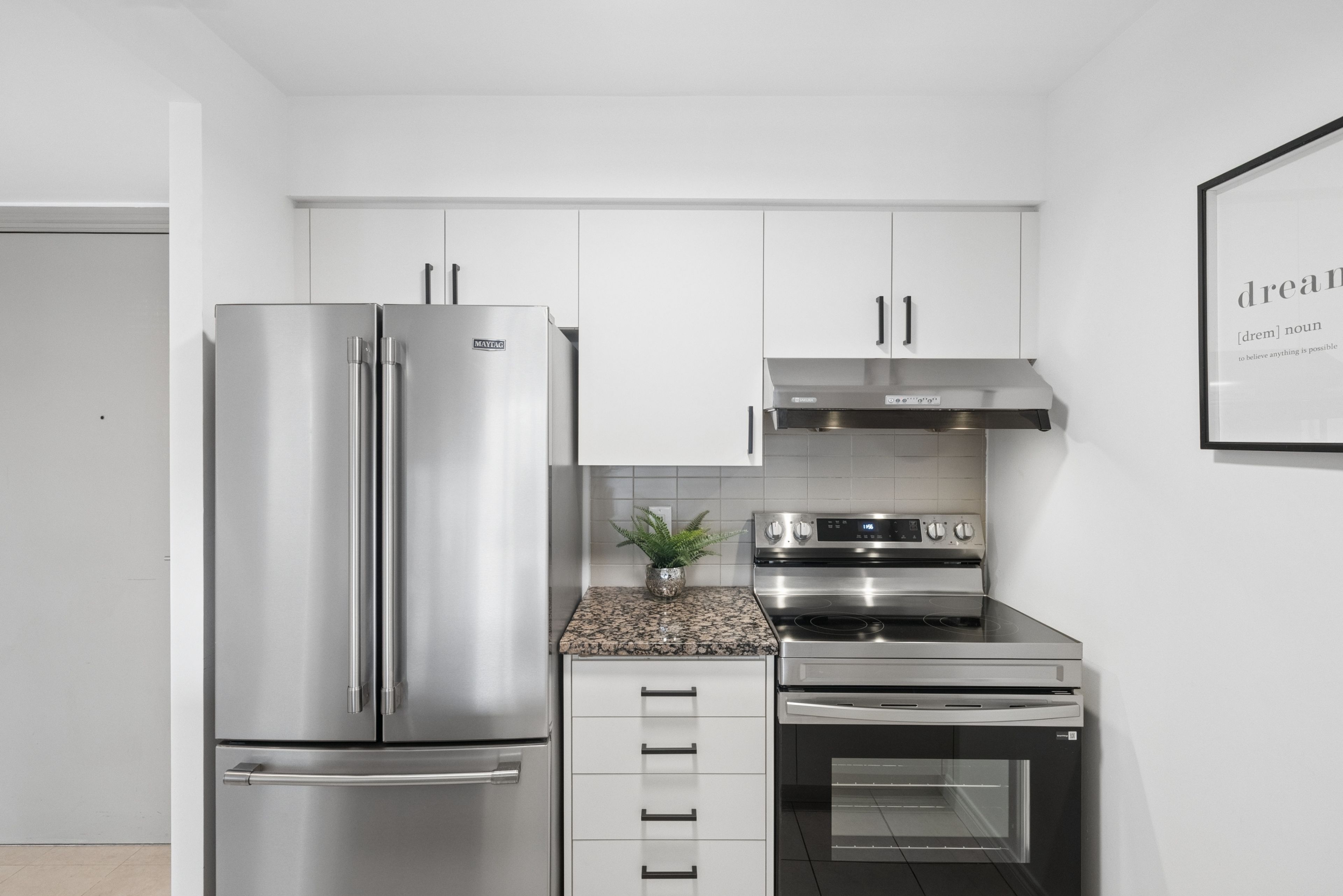 • Upgraded 1 bedroom + den unit with modern finishes and a balcony.