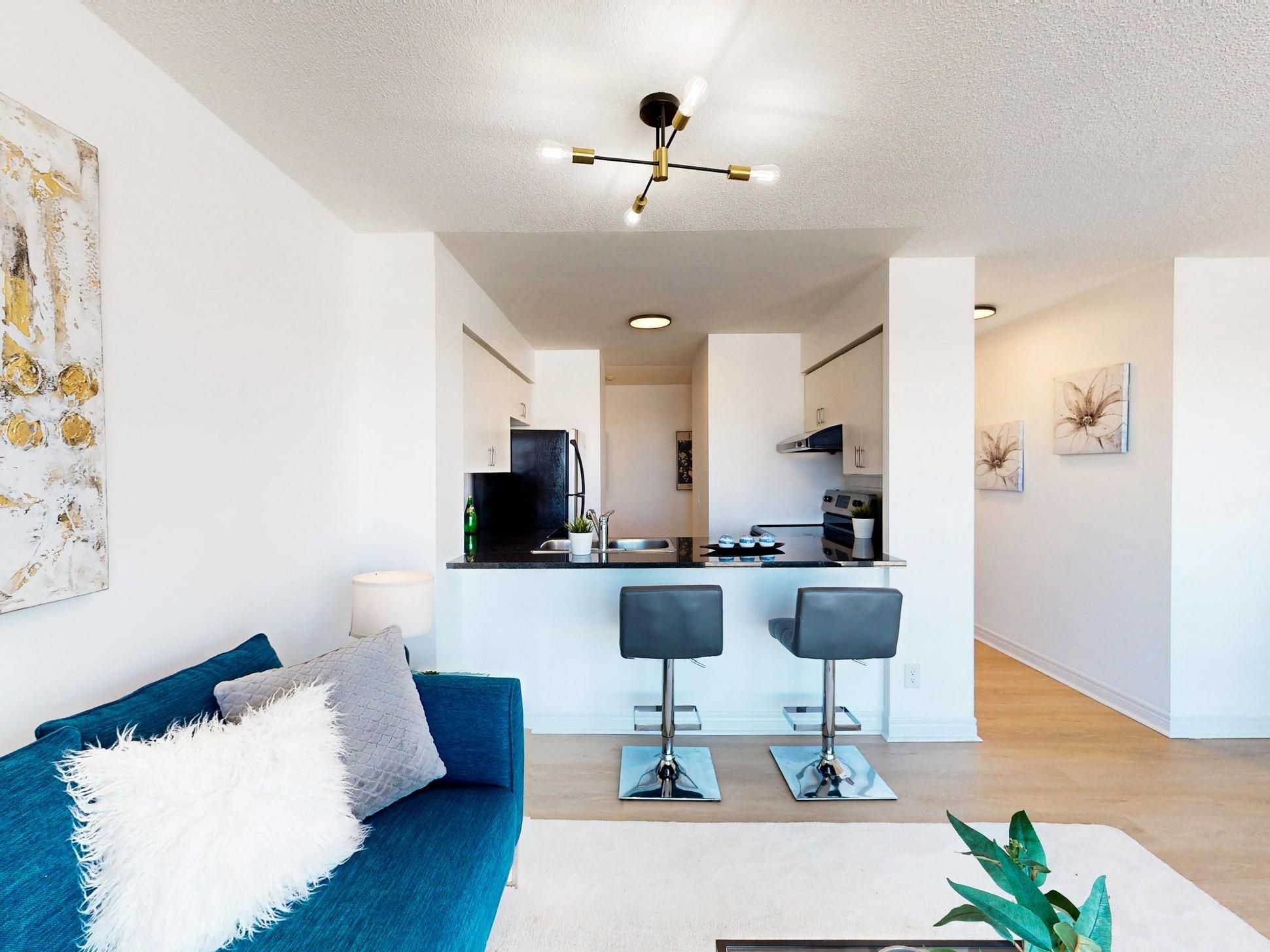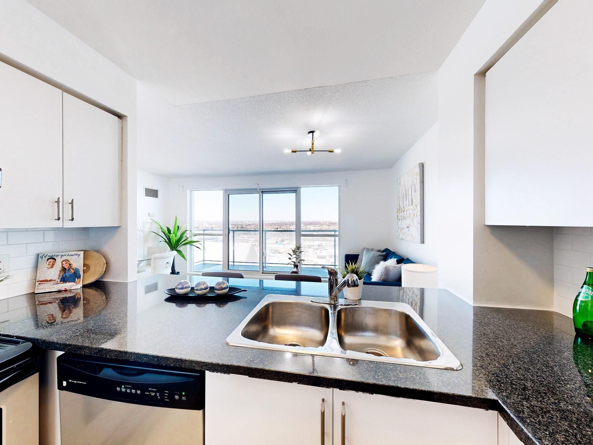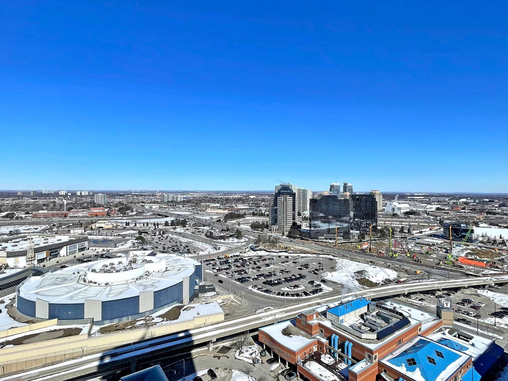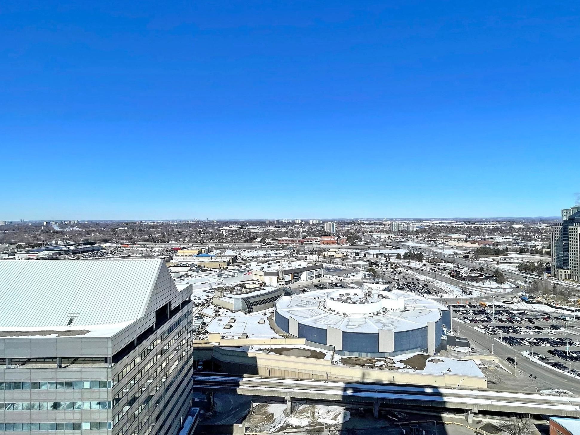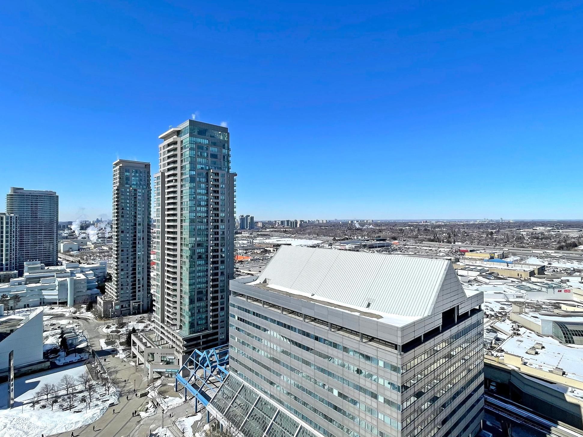 Welcome to suite 2501 at 70 town centre court! Bright and functional 1 bedroom + den in the heart of scarborough city centre. Perched on a high floor with expansive, unobstructed views, this sun-filled suite offers floor-to-ceiling windows and a large open balcony. The open-concept living and dining area features new flooring and a seamless walk-out to the balcony. The kitchen overlooks the living space and is complete with granite countertops, breakfast bar seating, stainless steel appliances and ample cabinet storage. The spacious primary bedroom showcases large windows and a double closet. The enclosed den is a true separate space, ideal for a home office or guest space. Convenient location just steps to scarborough town centre, ttc, civic centre, ymca, parks and restaurants with quick access to highway 401. Includes 1 parking space and 1 locker.