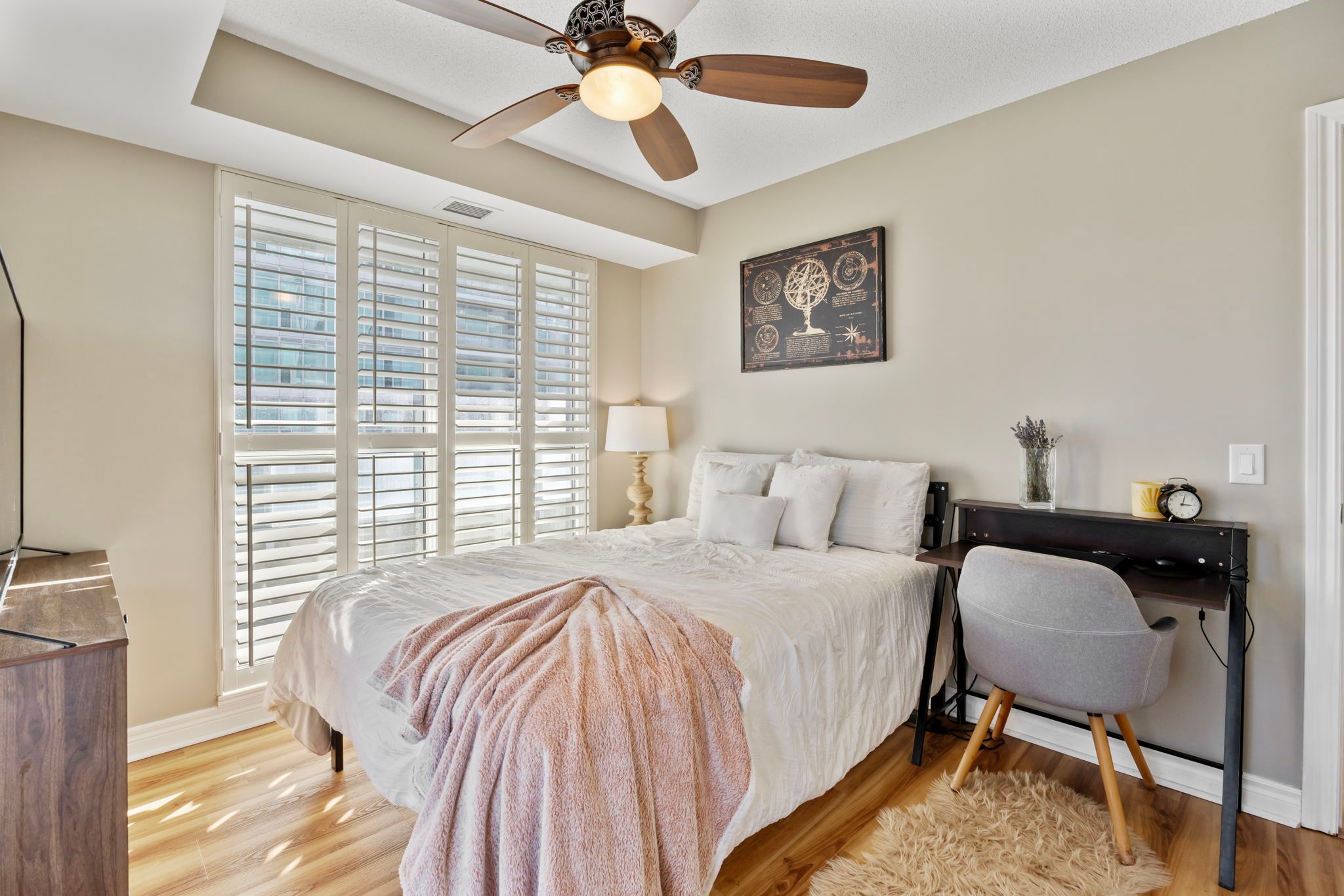 Welcome to this stunning 1-bedroom plus den corner condo in the heart of scarborough town centre. This bright and spacious unit is filled with natural light and features a rare wrap-around balcony with panoramic east and south views. The open-concept living and dining area is perfect for entertaining, enhanced by floor-to-ceiling windows and modern finishes throughout. The sleek kitchen offers white appliances, granite countertops, and ample cabinet storage. The generously sized bedroom includes a closet and beautiful unobstructed views, while the enclosed den provides a versatile space ideal for a home office or guest room. Custom california shutters and designer window coverings add both elegance and privacy throughout the unit. Residents enjoy top-tier amenities in a well-managed building. Located just steps from scarborough centre subway station, scarborough town centre, and the ymca, you'll also be surrounded by dining and entertainment options. With easy access to highway 401 and close proximity to the university of toronto scarborough, this is an exceptional opportunity to own in one of scarborough's most convenient and vibrant communities. One parking space and one locker are included for added convenience-everything you need to call this beautiful condo home.