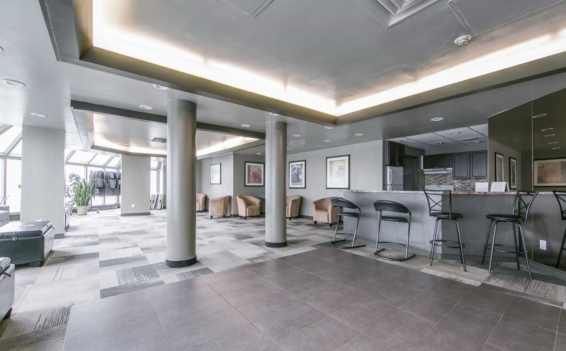 Welcome to this beautiful sun-filled 1400+ sq ft condo with 180 degree views boasting 2+1 bedrooms and 2 bathrooms! This meticulously kept condo features a designer kitchen that highlights granite counter tops with granite full height backsplash, a water filtration system, and a custom designed coffee bar & wine fridge with room for a breakfast area! The dinning room has an amazing view of the west and overlooks the living room. The expansive living room is highlighted with a feature wall made of stone, built in electric fireplace and a tv mount. Zebra blinds featured in kitchen, living, dinning, and primary allow for versatile control over natural light and privacy! The spacious primary bedroom has a walk in closet and a 3 piece ensuite with granite slab shower and an extra custom made cabinet for more storage. The large 2nd bedroom features a double closet and south/east views while the +1 bedroom features west and south views with custom insulated blinds! This condo also has 2 lockers & 2 parking spaces + a rented space (available to transfer). Constellation place offers lots of amenities including, tennis/pickleball court, indoor pool, fitness room, sauna, party room and more! This condo features upgrades galore, a unique 3rd bedroom, plenty of space and is close to all major shopping and transit for all your conveniences!