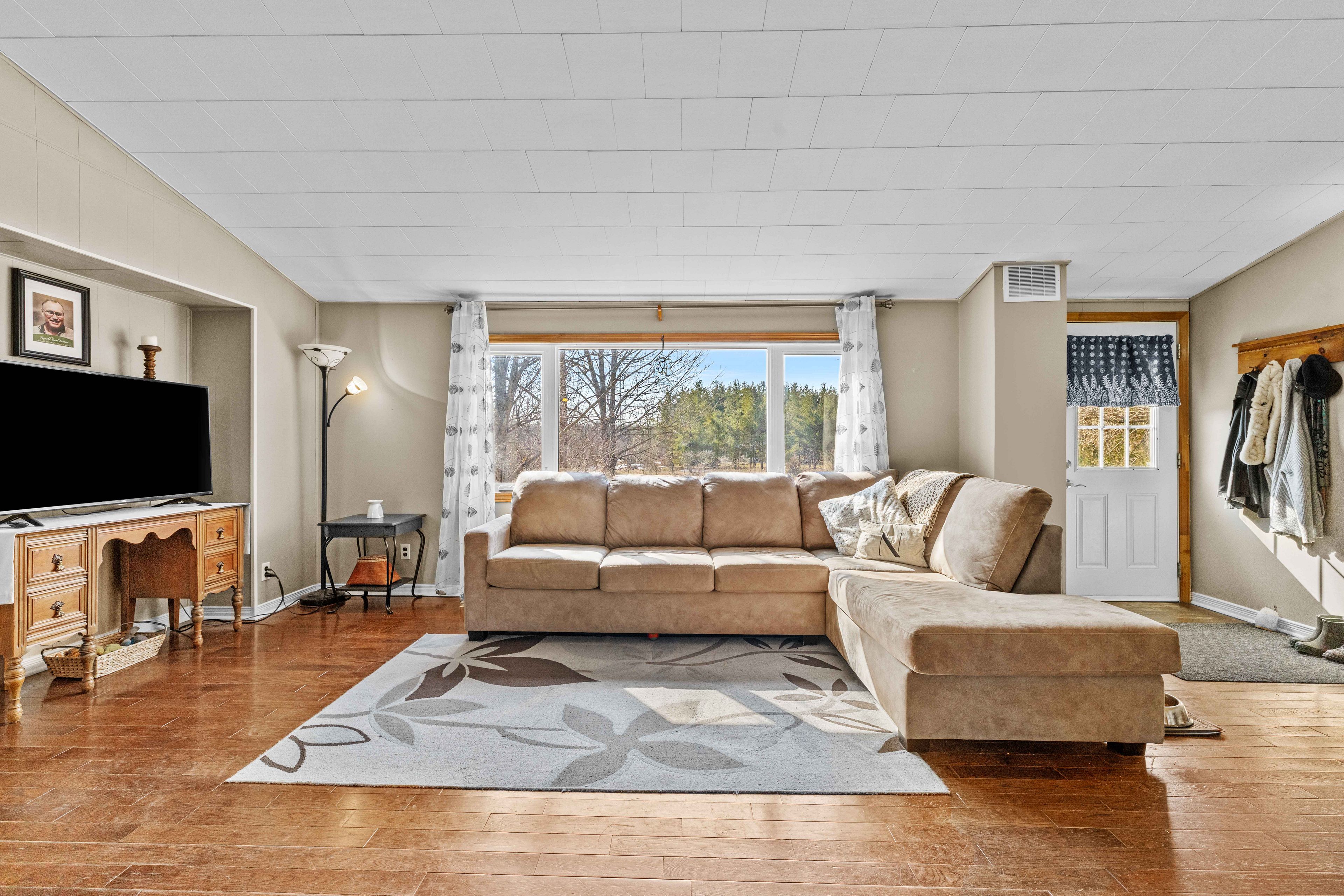 Nestled on a private 1. 23-acre level and cleared lot, this charming country home offers the perfect blend of comfort, space, and rural tranquility. Featuring a detached double garage and a distinctive circular driveway set on exposed limestone bedrock, the property makes a striking first impression. The home offers a versatile 1+2 bedroom, 2-bath layout with an inviting open-concept main floor. The spacious living area flows seamlessly to a walkout deck, ideal for enjoying the peaceful surroundings. A generous primary bedroom includes a walk-in closet, providing both comfort and convenience. A standout feature is the attached sunroom, finished with warm tongue-and-groove pine and complete with a cozy freestanding woodstove-perfect for year-round enjoyment. For those seeking additional space or future potential, an adjacent 1. 29-acre treed lot is also available for purchase. Offering excellent privacy, this separately deeded parcel presents a unique opportunity, though buyers should note that an entrance permit and servicing will be required.