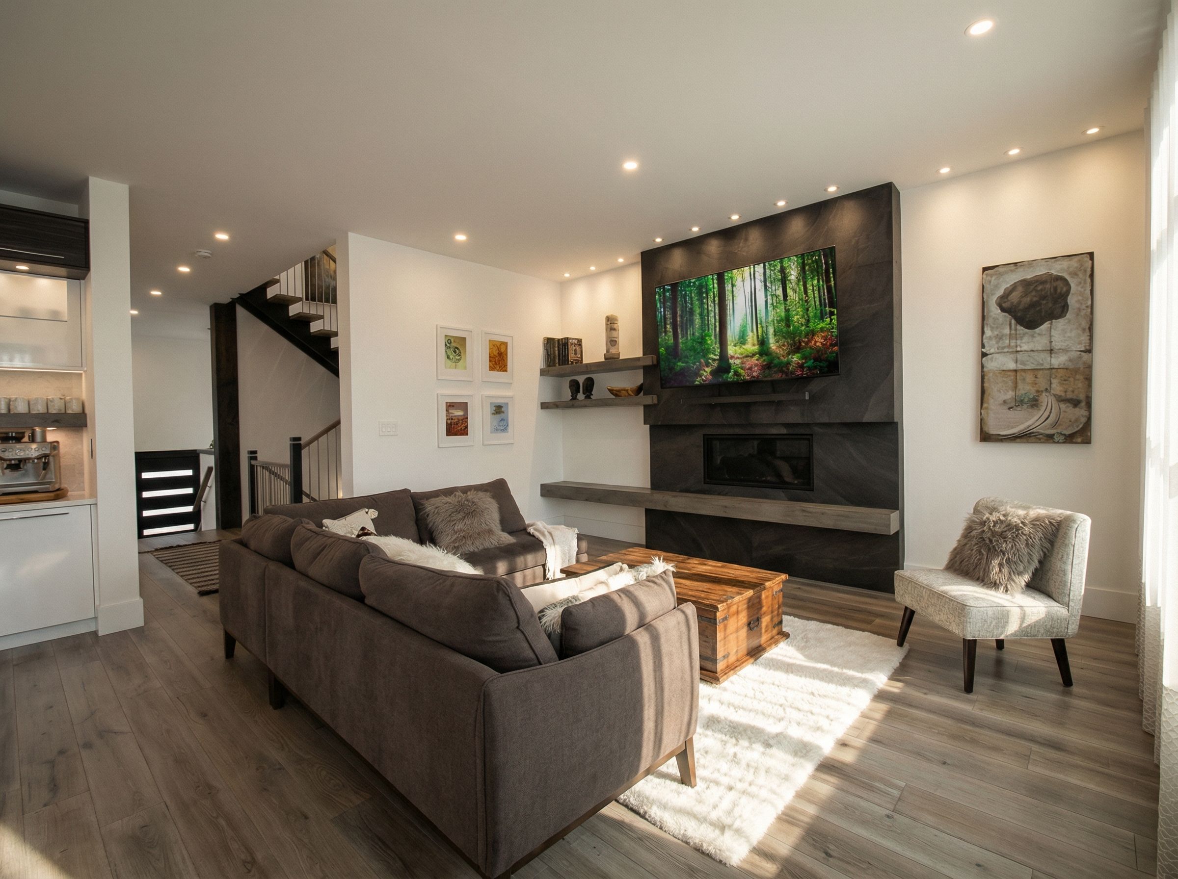 This is not just another "nice" house. It is a thoughtfully designed architectural project, executed with precision, where proportions, materials, and layout were carefully considered from day one. The home was featured on **"the best on the block" (home & garden tv)"**, reflecting its design quality and execution. Offering over 4,400 sq. Ft. Of well-planned living space, the layout is both interesting and highly functional. Open without feeling exposed. Spacious without feeling overwhelming. Every area flows naturally into the next. From the moment you step inside, the scale and craftsmanship are evident. 10-foot ceilings on the main level, unique black-framed windows, and abundant natural light create an immediate sense of volume. Wide-plank hardwood floors, precise millwork, and a custom fireplace surround anchor the space. Finishes are clean, intentional, and executed to a high standard. The kitchen is designed as a true working and gathering space - premium appliances, stone countertops, an oversized island, servery, and walk-in pantry. Everything is logical and built with quality materials. Upstairs features 9-foot ceilings and a private primary retreat with a bar area, generous walk-in closet, and spa-inspired ensuite. Additional bedrooms are bright and well-sized with custom organizers. Second-floor laundry adds everyday practicality. The finished lower level features a gas fireplace and a full bath, making it ideal for recreation, a gym, a media room, or a guest suite. Private backyard with a large patio and a gas line for bbq. West shore location - steps to the lake, waterfront trails, parks, top schools, and easy access to highway 401. A home defined by design integrity, precise construction, high ceilings, and premium materials.