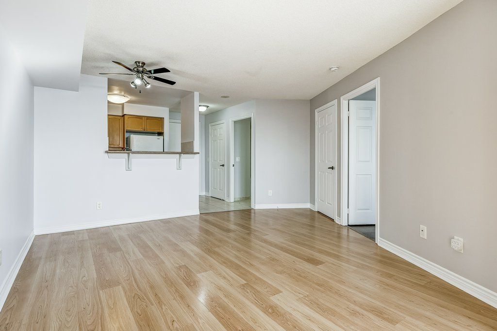 Welcome to unit 1622 at 700 humberwood blvd, a bright and functional 1 bedroom condo offering approximately 630 sqft of comfortable living space. This well maintained unit features a smart open-concept layout that maximizes space and natural light, making it ideal for first-time buyers or downsizers. The living and dining area flows seamlessly to a large west facing balcony, perfect for enjoying afternoon sun and evening sunsets. The kitchen overlooks the main living space, providing a practical and efficient design for everyday living. The unit includes a spacious bedroom and a 4 piece bathroom. Laminate flooring throughout creates a clean, modern look, and the unit is carpet free for easy maintenance. Recently freshly painted, this condo is move in ready and comes with 1 underground parking spot on the 3rd level right next to the elevator entrance and a storage locker. Conveniently located close to transit, major highways, shopping, parks, and everyday amenities, this building offers excellent accessibility while being situated in a well-established community.