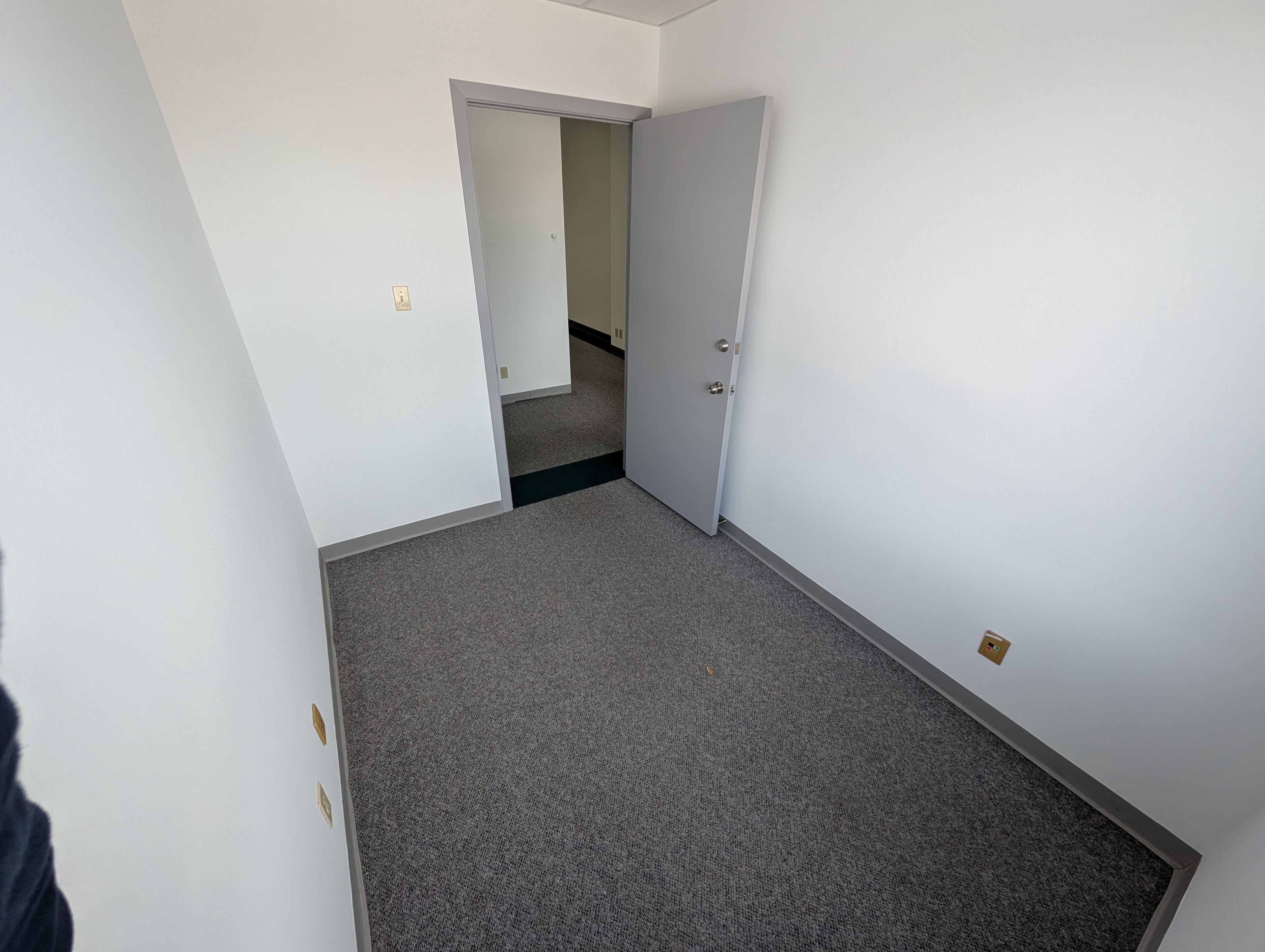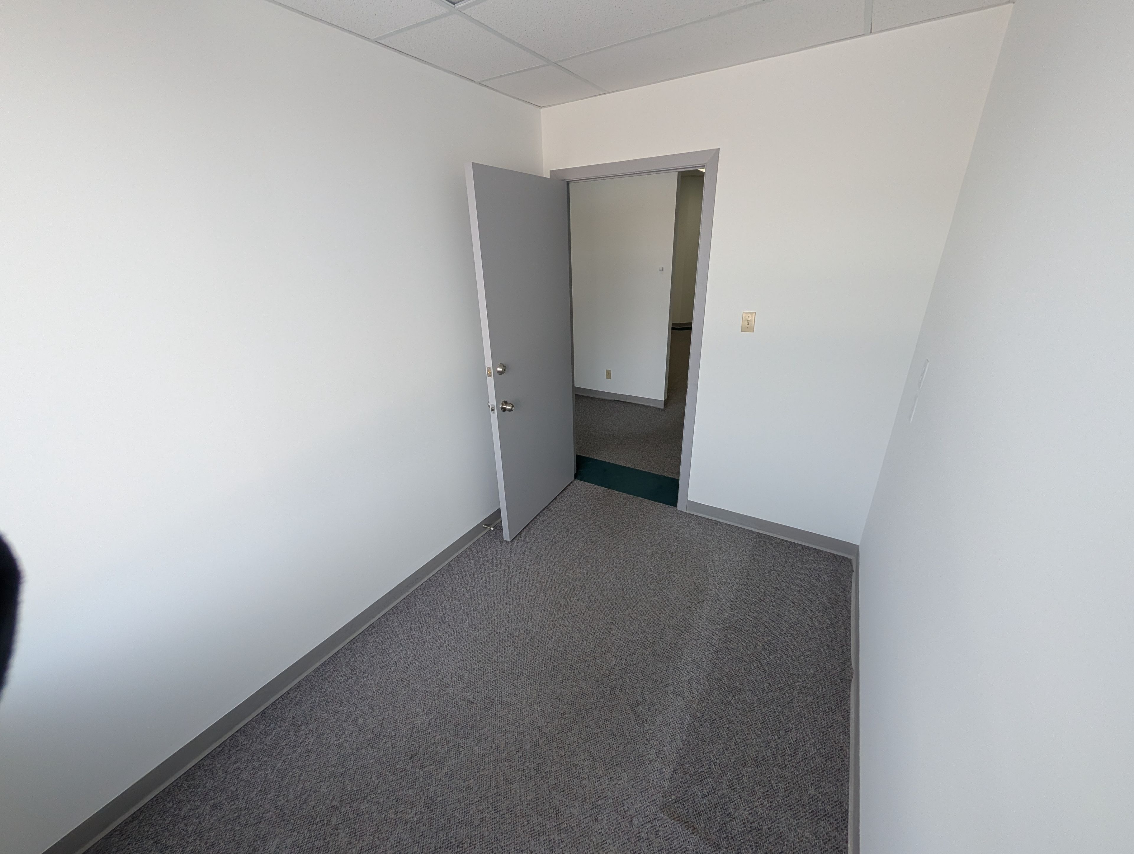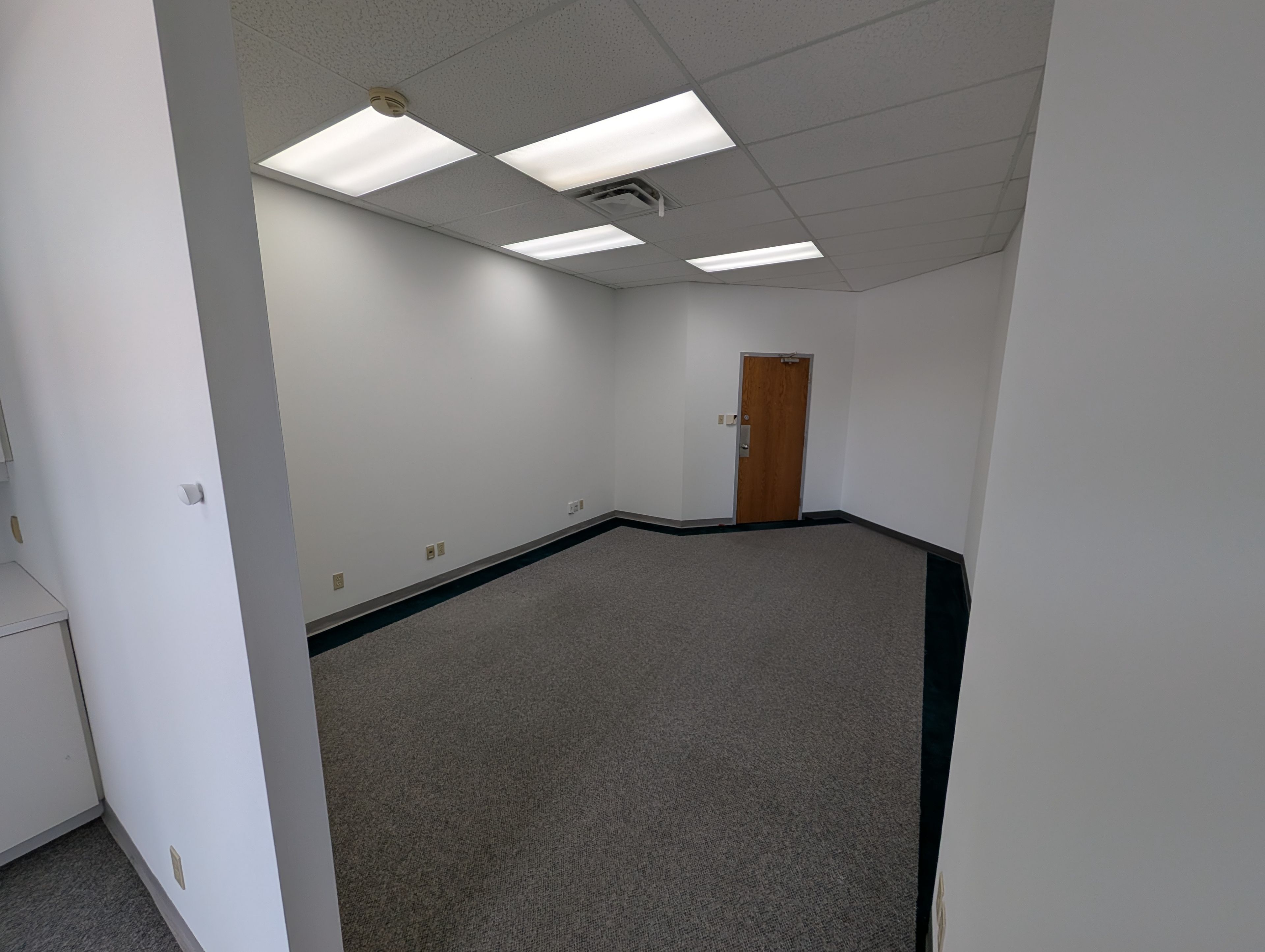 • Second-floor suite with two enclosed offices and rear-facing windows.