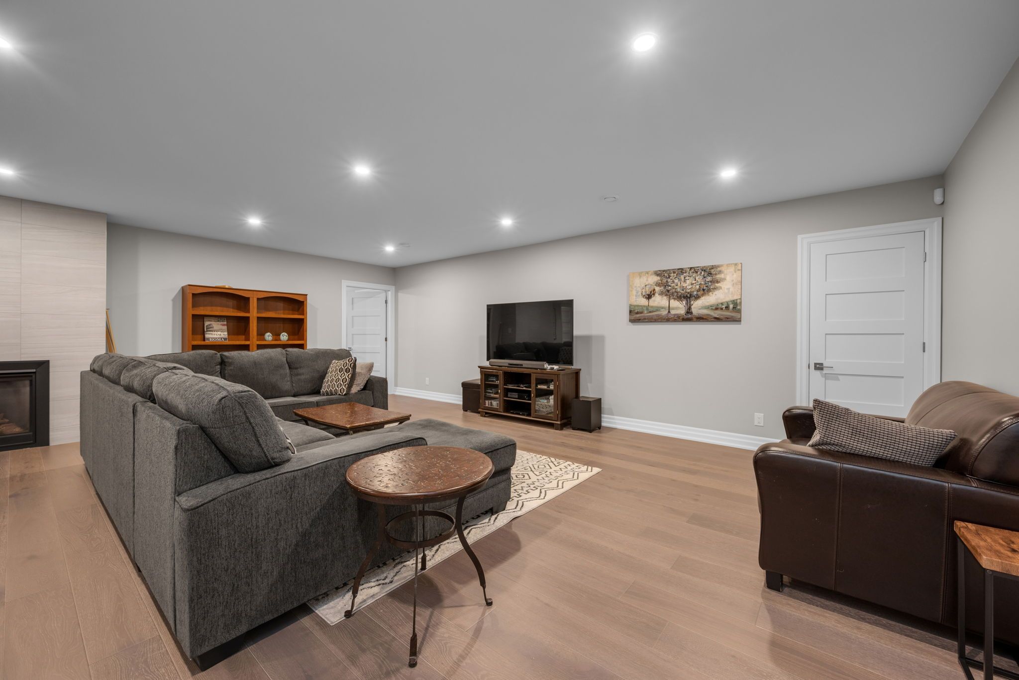 Step into this stunning custom john gerard bungalow, featuring an expansive 3400 sqft of main-floor living space, enhanced by over 2000 sqft of beautifully finished basement. Exuding luxury and sophistication, this full brick residence is adorned with high-end finishes throughout. The main floor showcases, timeless trim work, elegant hardwood floors, tile, and soaring ceilings ranging from 9 to 12 feet, contributing to the home's grand ambiance. A fully functional main floor laundry room and pantry room offer convenience, while four spacious bedrooms (one currently used as an office) on the main level, along with a fifth bedroom and full washroom in the basement, accommodate families of all sizes. The gourmet kitchen is a culinary delight, equipped with top-tier thermador appliances, soft-close drawers, and cupboards, and adorned with sleek quartz countertops in the kitchen and all washrooms. The basement is an entertainer's paradise, boasting a large recreation room, wet bar, billiards area, full gym (easily convertible to a sixth bedroom), and ample storage space with direct access to the triple-car garage. The property is situated on an oversized 1. 1 acre lot, larger than neighboring properties, and includes a wooded area that ensures privacy and seclusion. This exceptional property perfectly combines style, comfort, and functionality, making it an ideal place to call home.