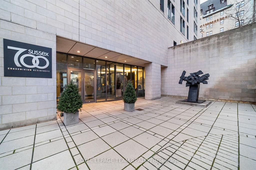Welcome home to 700 sussex drive! One of the most exclusive addresses in ottawa. Unit g103 is a highly-coveted garden level unit, offering approximately 1,525 sq. Ft of luxurious living space. This stunning condo features a spacious entry, chef's inspired kitchen, open den, solarium, large primary bedroom w/5pc ensuite bath & walk-in closet, good sized 2nd bedroom, open concept living/dining room w/gas fireplace, + full main bath. Hardwood & tile flooring, granite countertops, in-unit laundry, central air conditioning, 1 underground parking space + storage locker. Unobstructed views of the historic byward market that can't be beat! The garden level offers direct access to the roof top terrace/garden from your floor. Amenities include: first-class 24/7 concierge, gym, billiards room, party & business room. This is condo living as its finest! Proof of income/employment, photo id, credit report & rental application are required. No pets and no smoking please. Some photos digitally staged.
