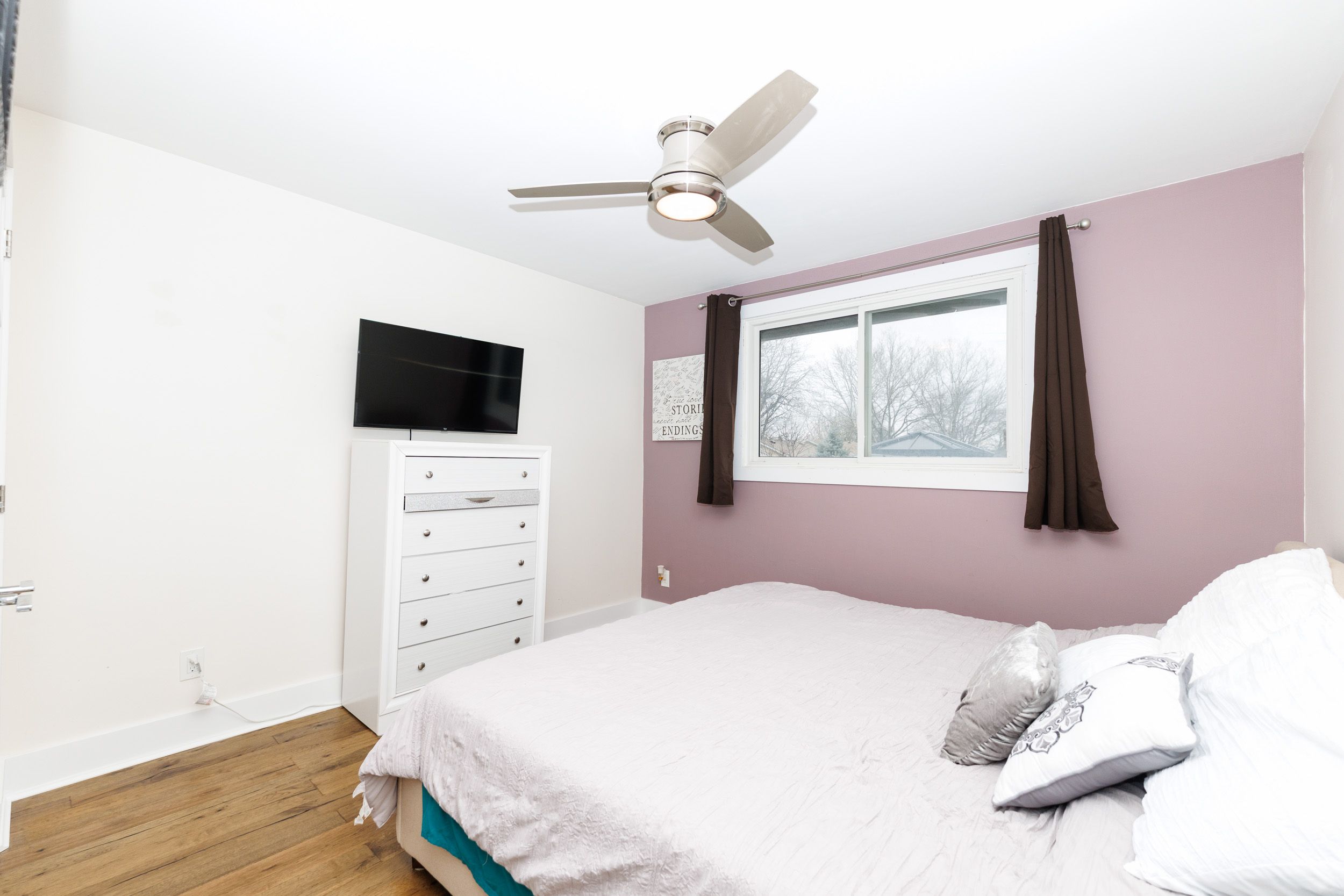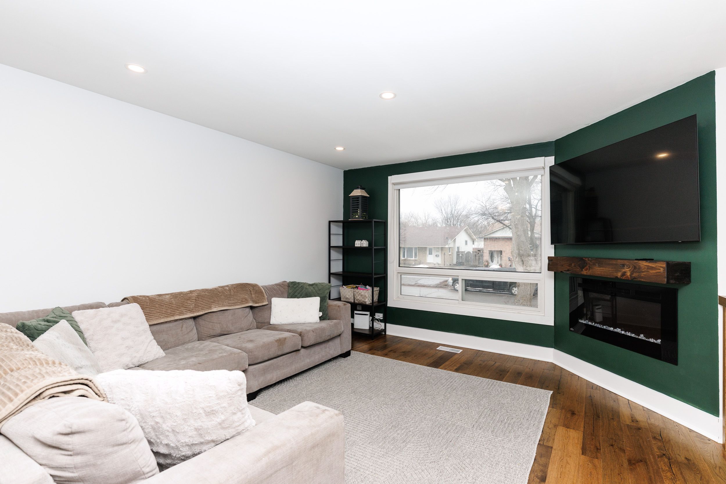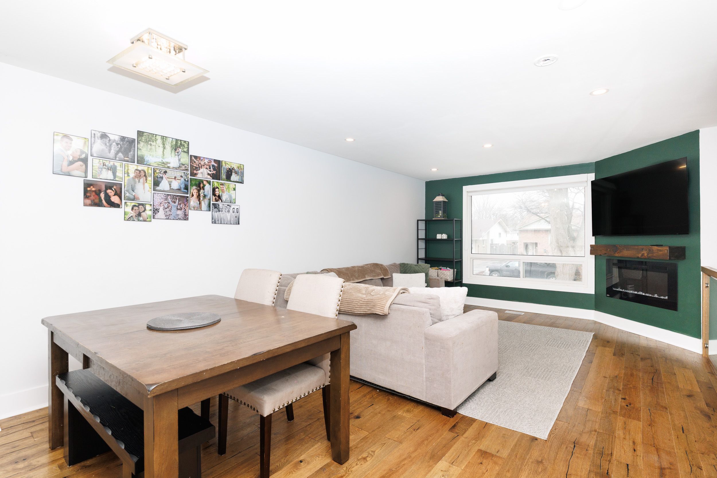 • Bright main floor with a living room and electric fireplace for cozy evenings.
