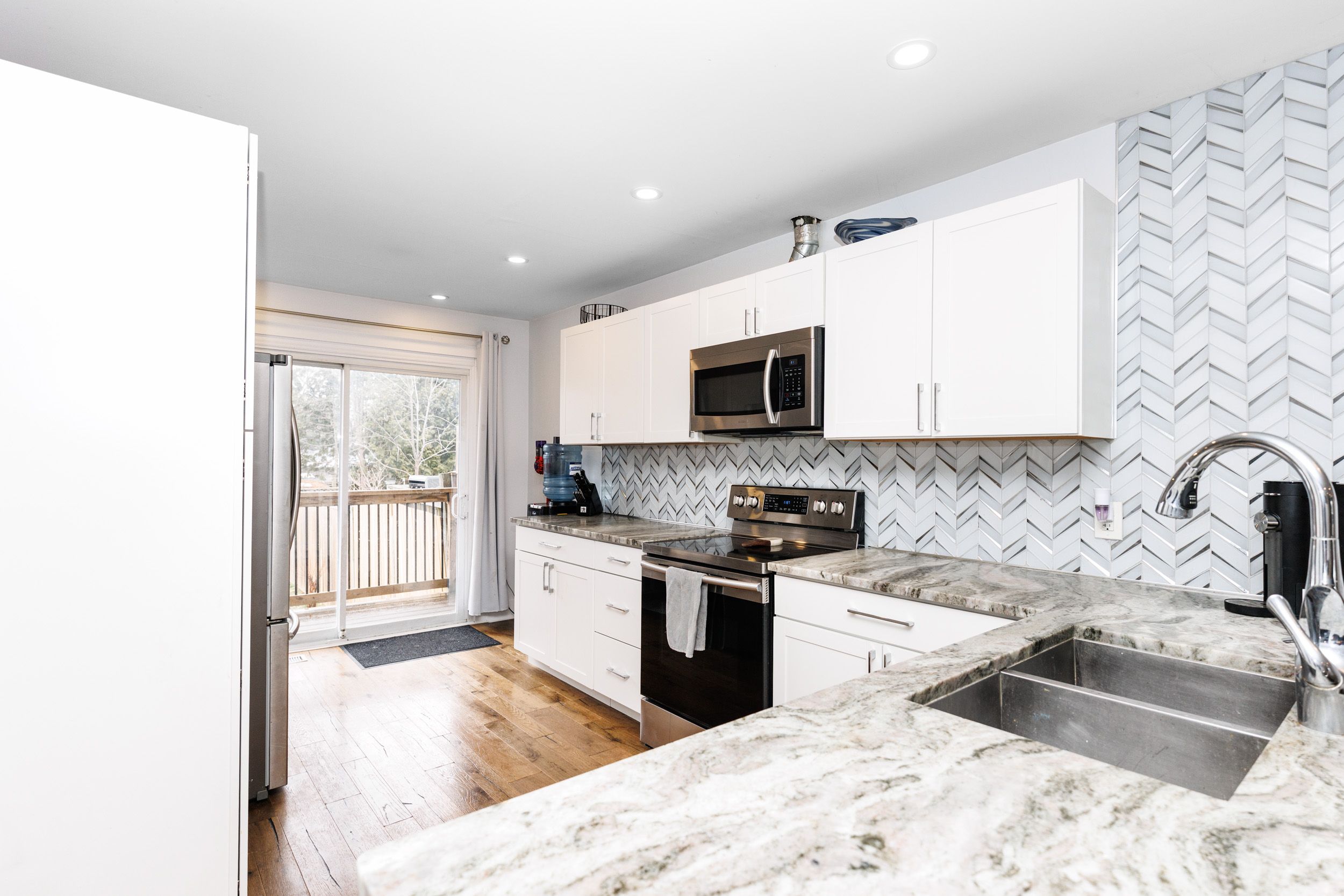 • Stunning kitchen featuring stainless steel appliances and granite countertops.