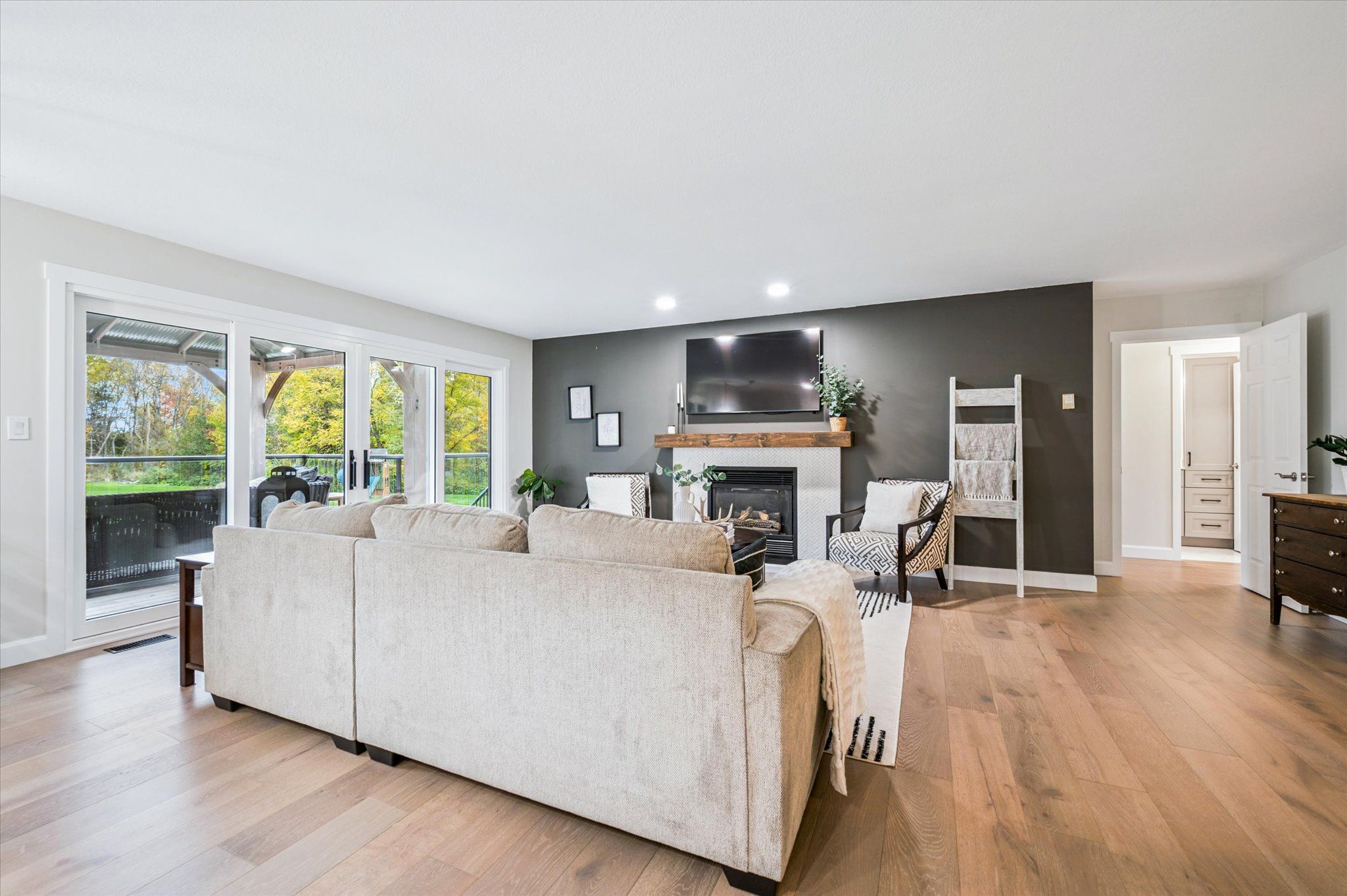 Tucked among mature trees, trails, and a spring-fed pond, this beautifully renovated bungalow on 3. 35 acres offers rare privacy and exceptional living just minutes from fergus and elora. Thoughtfully updated throughout-with a custom mennonite kitchen (2021), wide-plank flooring (2021), newer windows and doors (2022), and refreshed bathrooms (2024). The 2200 sq ft main level is bright, inviting, and designed for effortless everyday living. Four bedrooms and 3. 5 baths provide generous space, while the walk-out lower level adds a cozy woodstove, games area, custom bar, and a separate living space with its own entrance-ideal for guests, extended family, or multi-generational needs. Outside, enjoy a multi-level deck, flagstone firepit (2023), and private dock overlooking the spring-fed pond. The oversized 3+ car garage with workshop and direct basement access is a standout for hobbyists or those needing extra storage. With fibre optic internet, major mechanical updates already completed, and an accessory apartment offering flexibility and value, this property delivers a rare blend of nature, space, and modern comfort. A truly exceptional offering on sought-after beatty line.