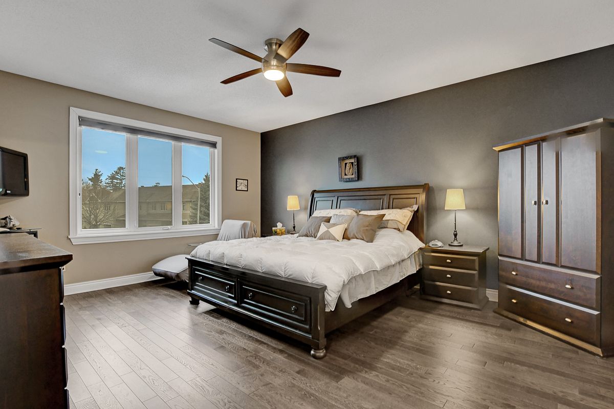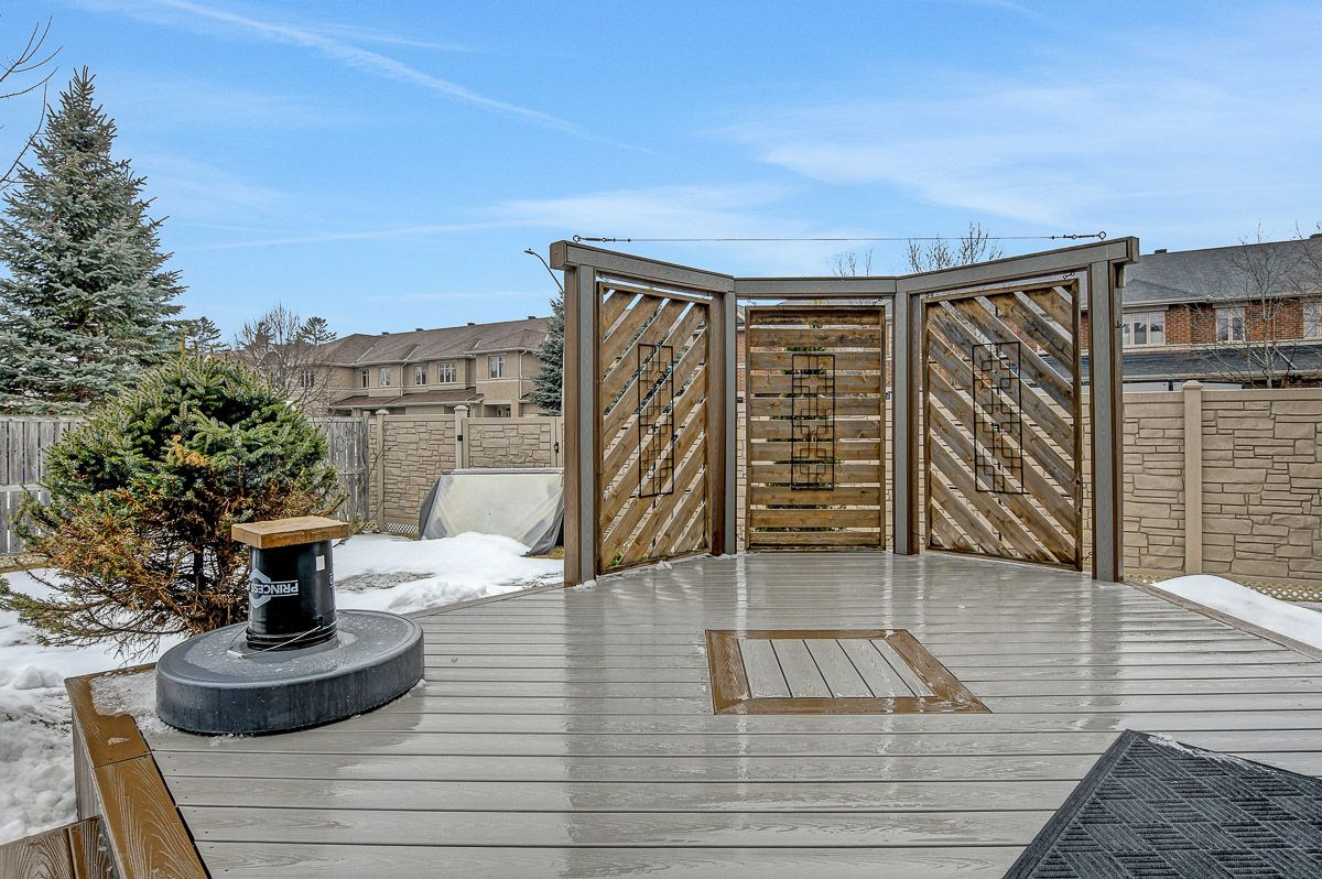 Welcome to this stunning 2 storey home set on a premium oversized corner lot in one of ottawa's most desirable family-friendly communities. This beautifully maintained residence offers exceptional curb appeal, a rare triple car garage, and over-the-top upgrades that truly set it apart. Step inside to a bright and elegant main floor featuring upgraded hardwood flooring, a thoughtfully designed layout, and a high-end kitchen complete with custom cabinetry, granite countertops, stainless steel appliances, and a sleek hood vent. The attention to detail continues throughout the home, with quality finishes, upgraded fixtures, and large windows dressed with premium hunter douglas blinds, filling the space with natural light. Upstairs, you'll find 4 spacious bedrooms with newly upgraded hardwood flooring throughout. The primary suite offers a luxurious retreat with a custom walk-in closet organization system and a private ensuite bath. The remaining bedrooms are exceptionally well served by two additional 3-piece bathrooms, providing comfort and convenience for family and guests alike. A second-floor laundry room adds everyday practicality, making daily routines seamless and efficient. The fully finished basement offers incredible additional living space, including a large recreation room, a full bathroom, and a generously sized bedroom-perfect for guests, extended family, or a private retreat. Outside is where this home truly shines. The backyard is a private oasis, fully fenced with composite fencing and professionally landscaped. Enjoy summer days on the multi-level composite deck with gazebo, unwind in the hot tub, or relax among mature trees and thoughtfully designed outdoor spaces. The front yard features extensive interlock landscaping, enhancing the home's already impressive curb appeal. This is a rare opportunity to own a meticulously upgraded, move-in-ready home that offers space, luxury, and lifestyle-all in one exceptional package.