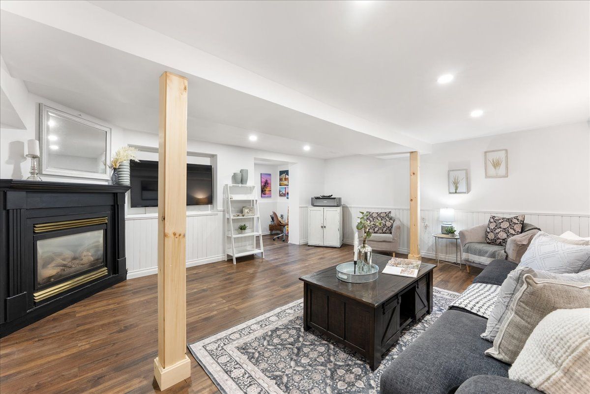 • Finished basement with a family room, gas fireplace, and separate entrance.