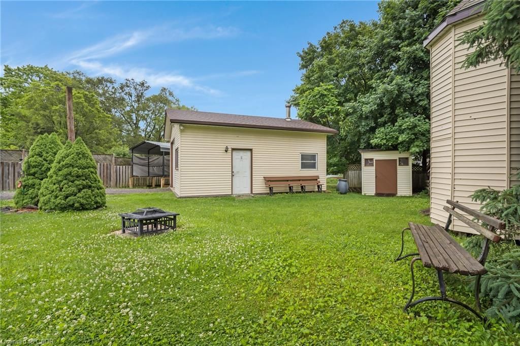 Welcome to 7011 wellington road 124, a beautifully updated bungalow that blends modern comfort with peaceful country living. Situated on a private 0. 256-acre lot, this home offers 1,234 sq ft of well designed living space above grade, plus a fully finished walkout basement, perfect for guests, a home office, or extended family. Inside, you're greeted by soaring ceilings and the warmth of a wood burning fireplace. Large windows fill the space with natural light, and a walkout leads to a private deck overlooking the spacious backyard, ideal for morning coffee or entertaining. The main level has been fully updated, including a stunning custom kitchen completed in 2022 with quartz countertops, built-in fridge, high end appliances, and a gas stove. Off the kitchen are two generously sized bedrooms and a beautifully updated 4-piece bathroom. The bright finished basement offers large windows, an additional bedroom, and a 2-piece bathroom with room to add a shower, great as a family room, guest suite, or hobby space. Outdoors, enjoy a 20x25 detached heated garage with hydro and a new roof (2024), plus two sheds (8x10 and 8x14), a 12x20 drive shed, and a garden area. The home's roof was replaced in 2023, and new basement windows installed. Mechanical upgrades include a forced air furnace and central air (2018), reverse osmosis system, a 120-ft well with new submersible pump and bladder (2023), and a 1,000-gallon brick septic tank (2007). Thoughtfully updated and just a short drive to amenities, this move-in ready home offers the best of rural living.
