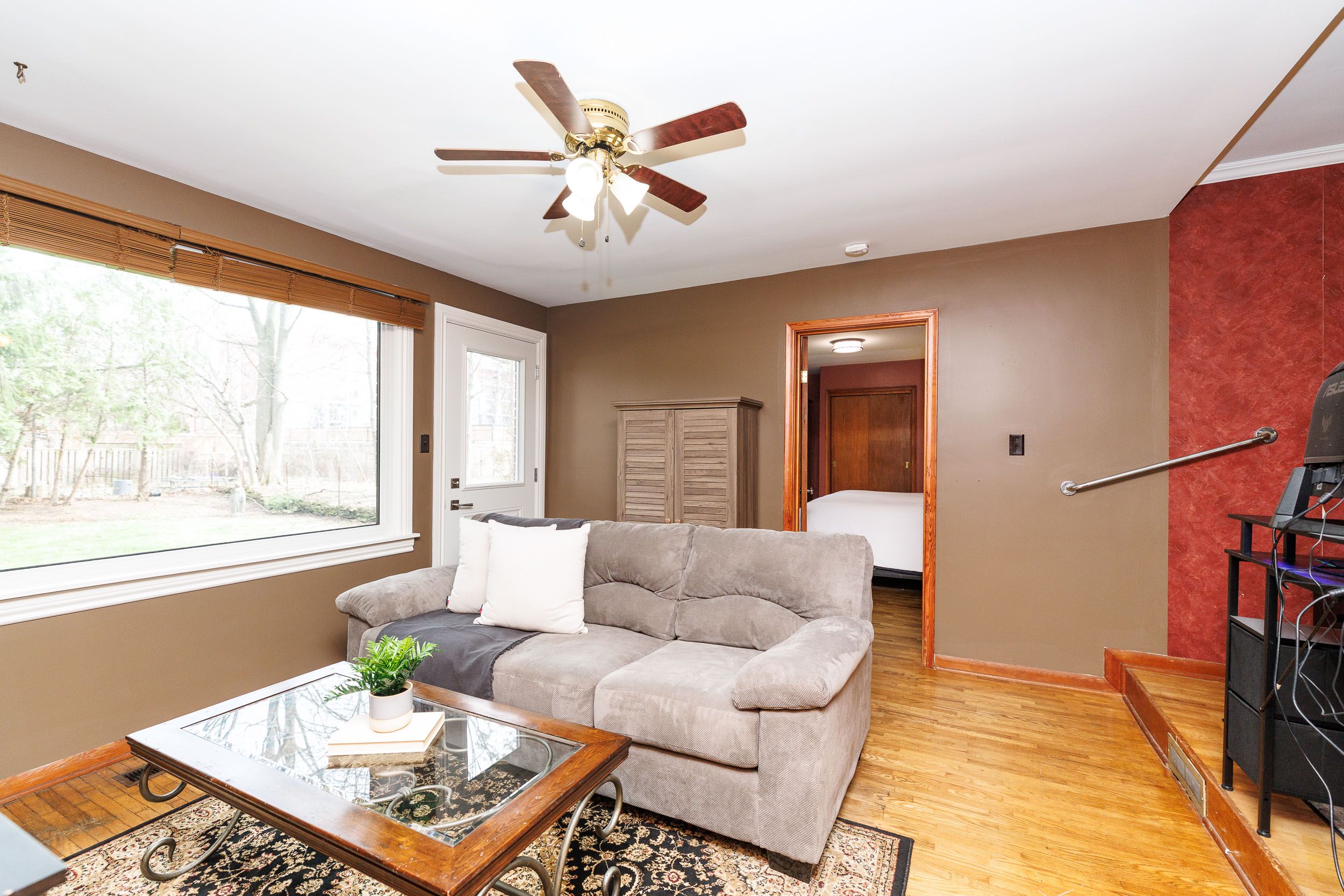 • Spacious main floor with three bright bedrooms and hardwood flooring.