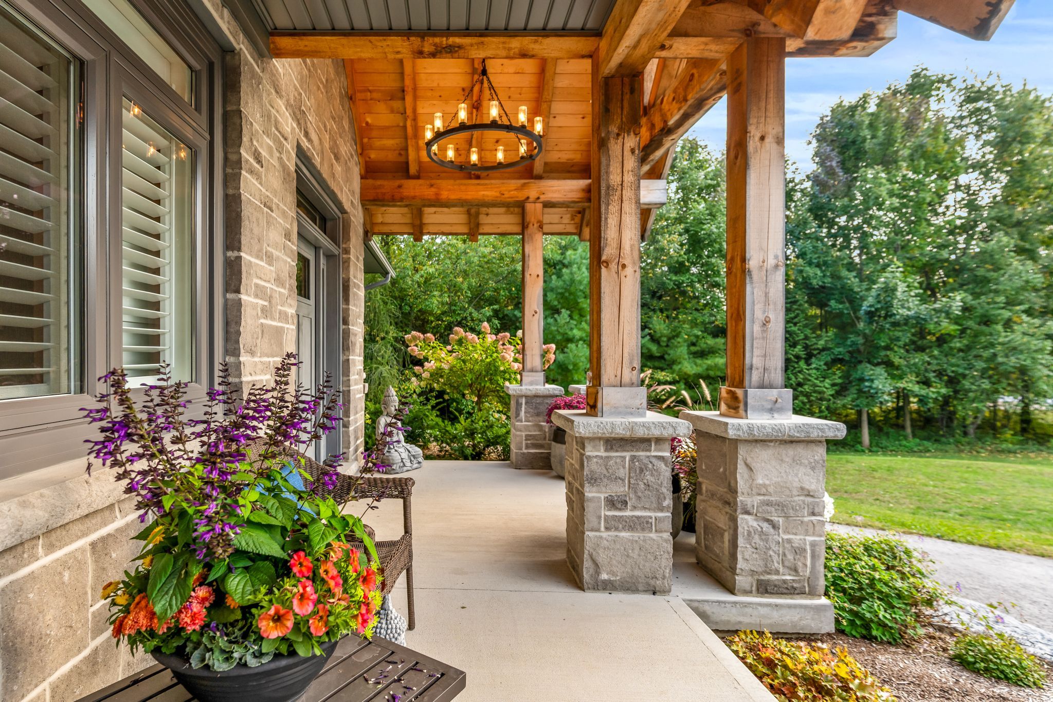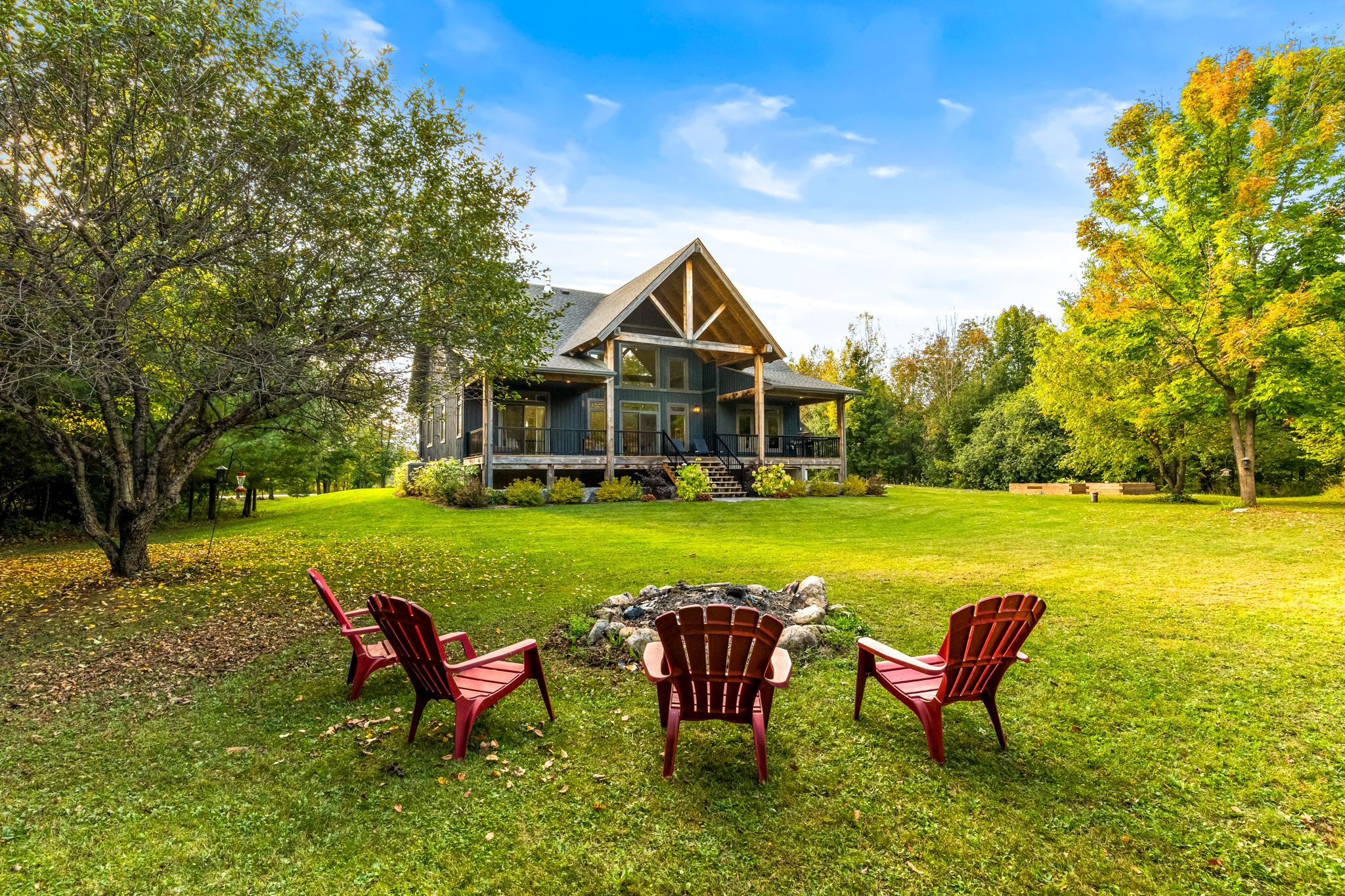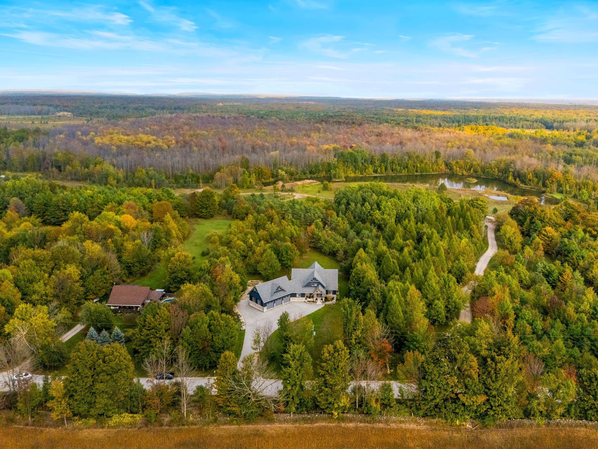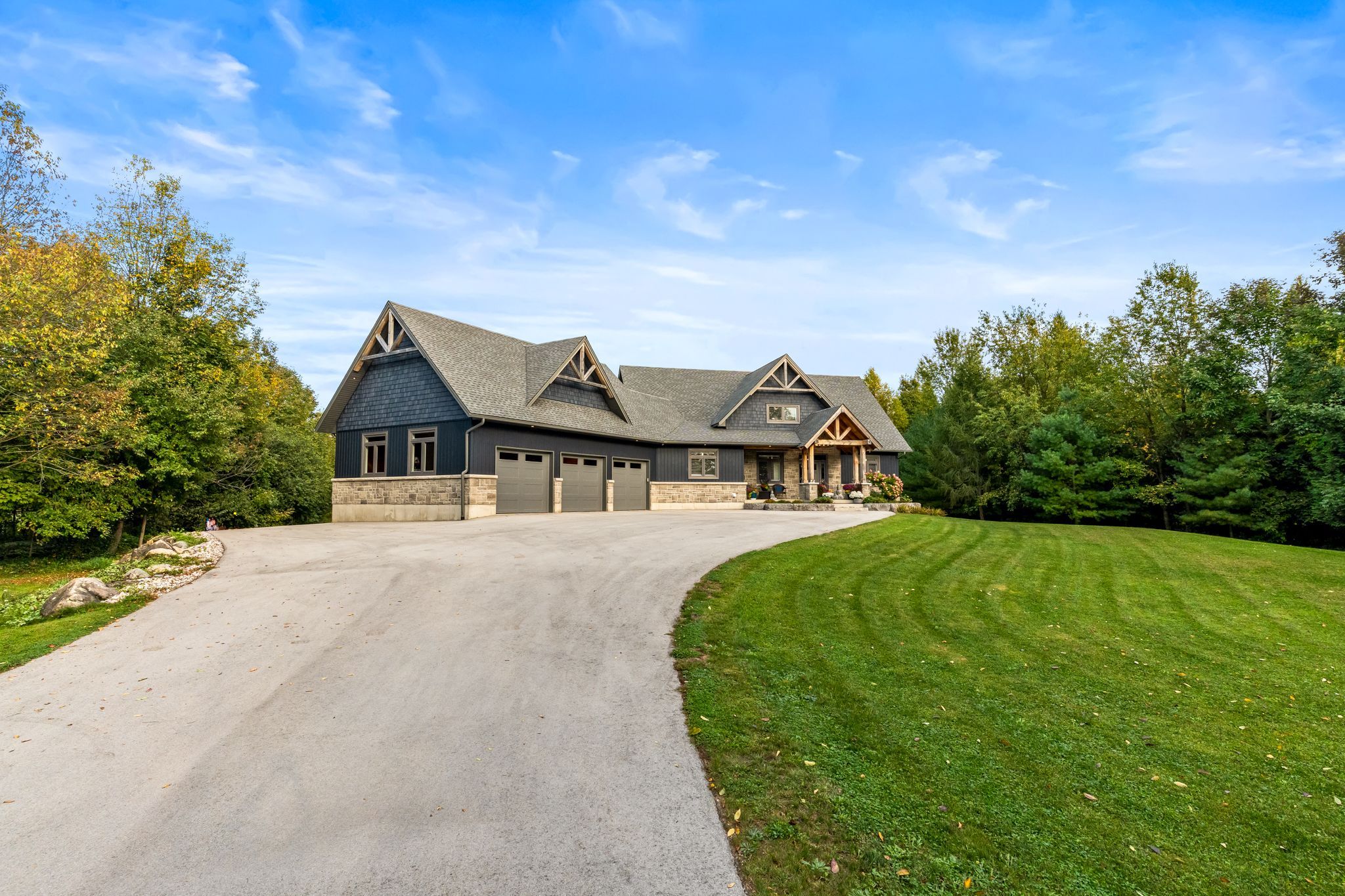 An extraordinary lifestyle opportunity awaits in a sought after neighbourhood in georgian bluffs. Refined design and natural beauty come together in perfect harmony. Crafted in 2020, this custom timber frame estate rests on nearly 3 acres of secluded, forested grounds and showcases over 4,600 sq. Ft. Of thoughtfully curated living space. A true sanctuary, this private residence offers an inspired blend of timeless elegance and modern luxury, perfect for those who cherish space, serenity, and a deep connection to nature. Step inside to find soaring 24 foot height cathedral ceilings, a grand stone fireplace, and expansive windows that invite the forest views indoors. The open concept layout flows into a chefs gourmet kitchen featuring a 9x5 quartz island, premium appliances, and a large walk in pantry, perfect for hosting, or enjoying calm mornings in a peaceful setting. The main floor offers a private primary suite with a spa like ensuite and walk in closet. Upstairs, two additional bedrooms, a full bath, and a quiet loft create space for family or guests. The finished lower level includes two more bedrooms, a large rec room with a bar, and a private access to the garage, ideal for extended family, a wellness studio, or private guest quarters. Over $135,000 in thoughtful upgrades bring confidence and ease, including a generac whole home generator, new asphalt driveway, professional landscaping with armour stone, and a full security system. The heated and insulated triple garage features high ceilings and oversized doors, perfect for your vehicles, storage needs, and space to keep your atvs, boats, and recreational toys organized and secure. If youre looking for a luxury home with privacy, space, and connection to nature, yet just minutes from town, this one stands apart. Call your realtor today to schedule a private showing!