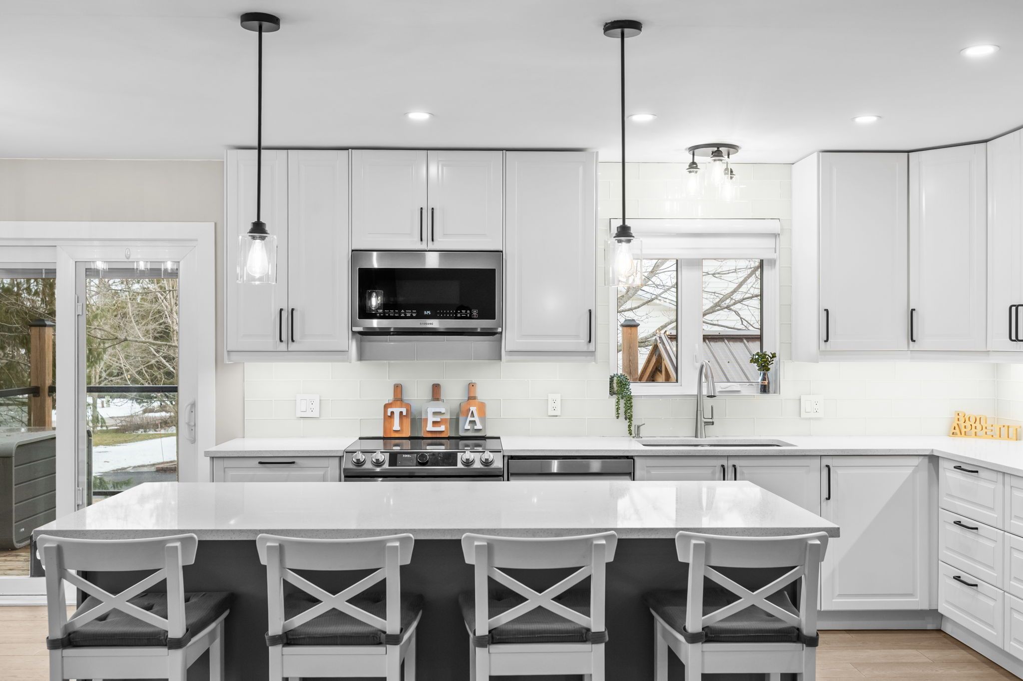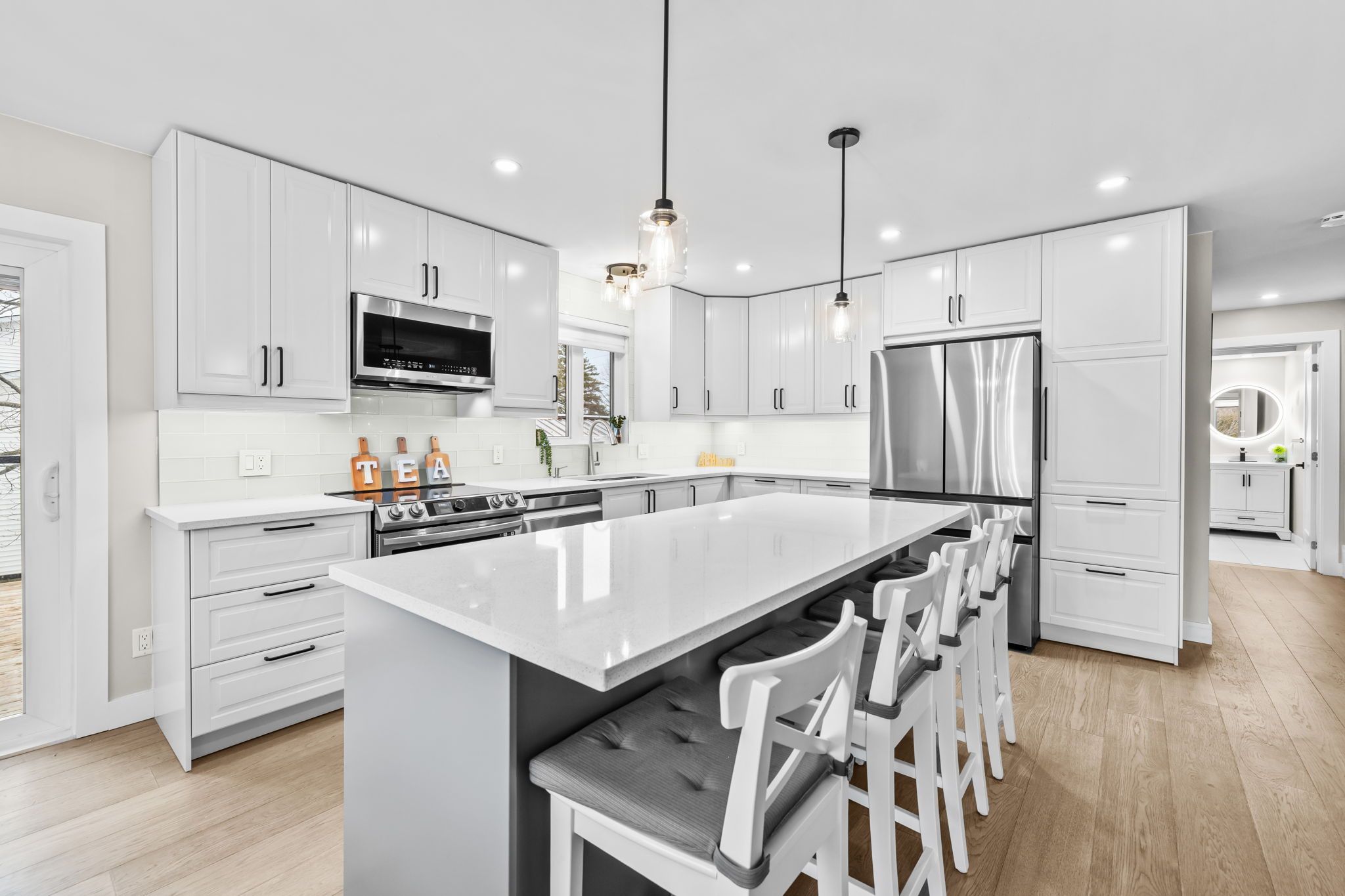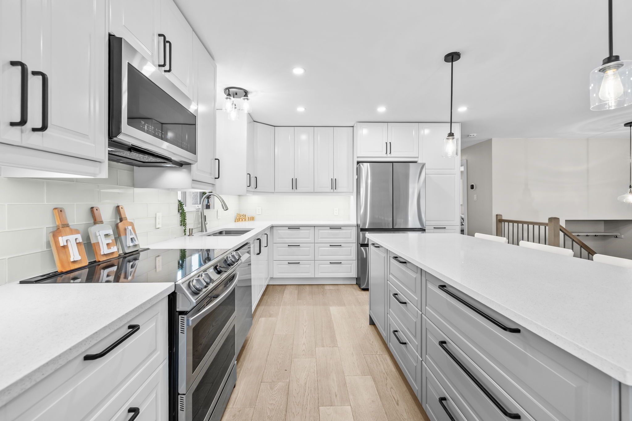 • Fully upgraded kitchen with quartz countertops and spacious island for entertaining.
