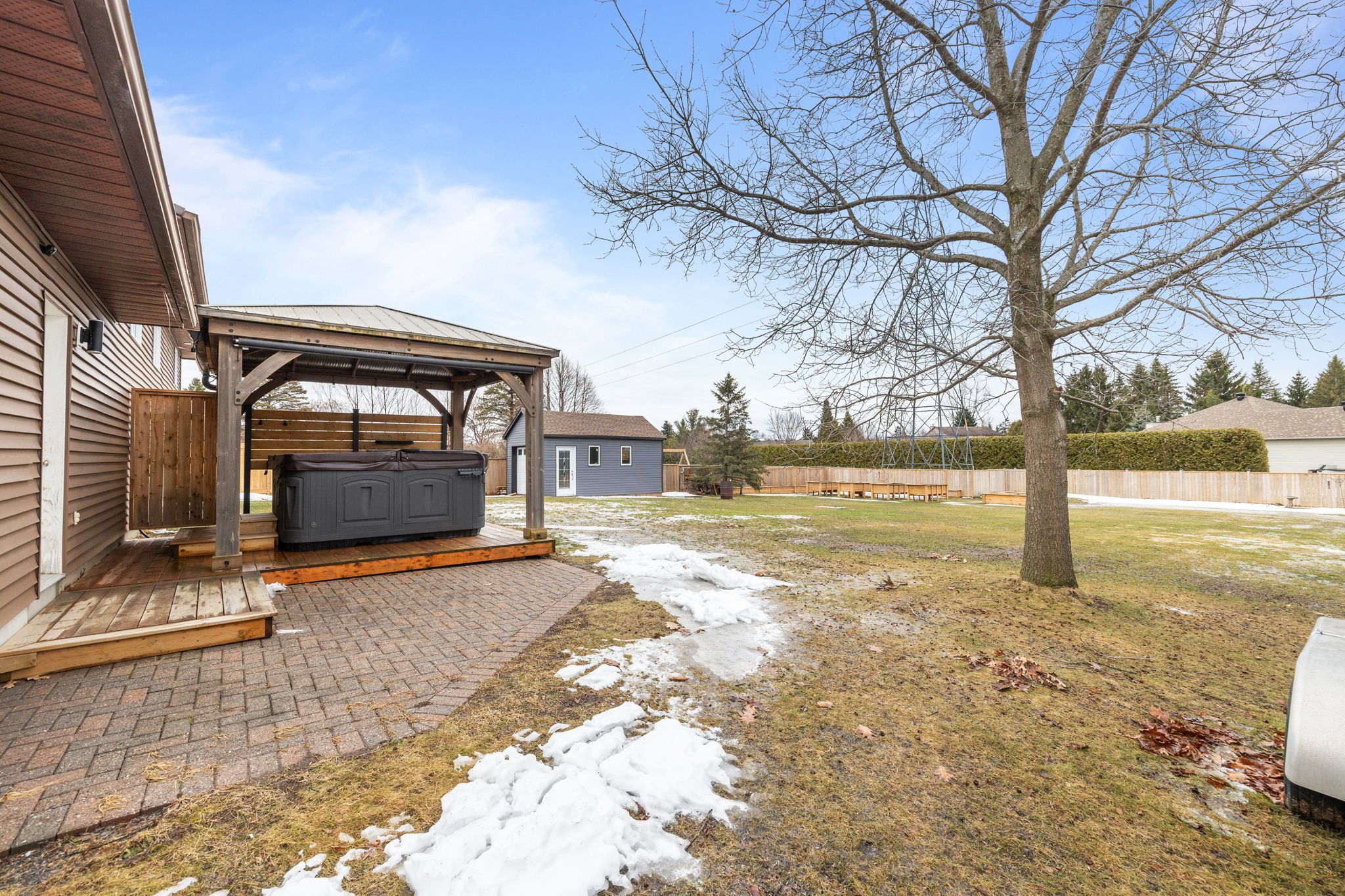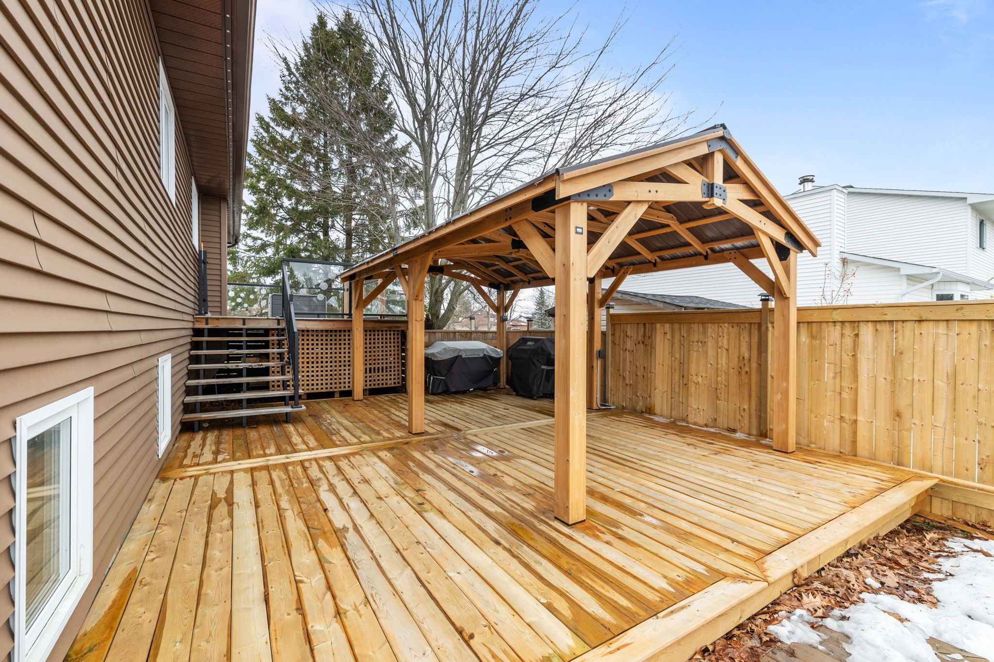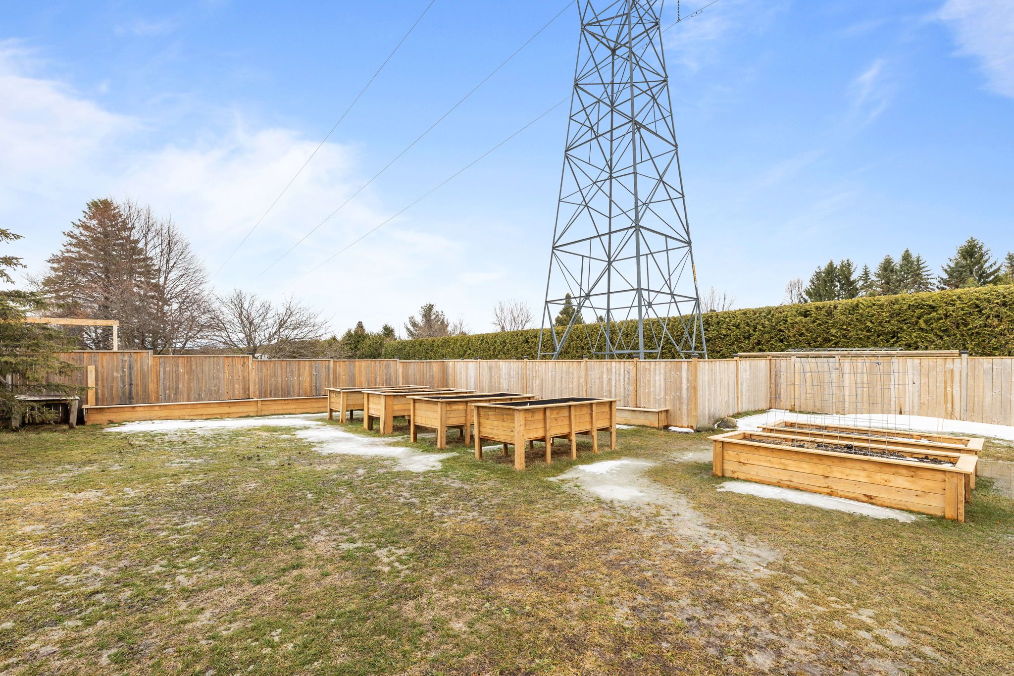 • Private fenced yard with new deck, garden beds, and convenient storage options.