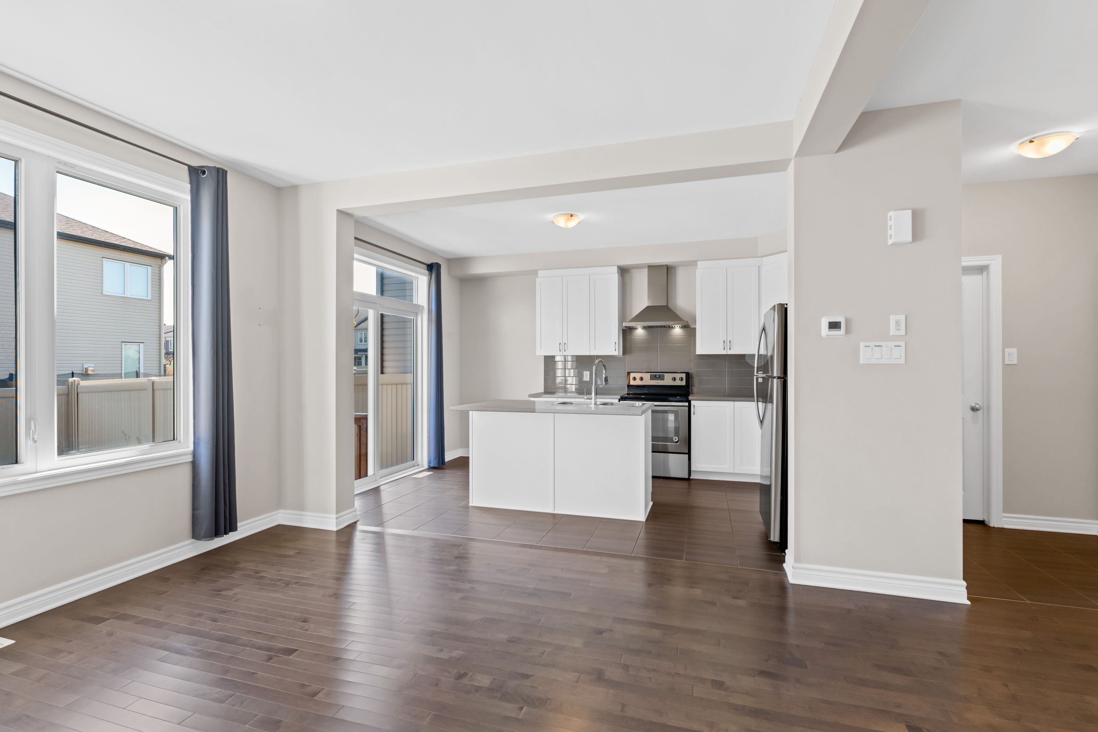 Welcome to 703 samantha eastop, a well-located home perfectly positioned between stittsville and kanata, offering quick access to the highway and an easy walk to shops, fantastic schools, and the tanger outlet mall. Convenience and community come together beautifully in this sought-after neighbourhood. A wide and welcoming front entrance leads into a bright main level featuring hardwood flooring throughout and an open concept kitchen/living room area. The seperate dining room makes it a perfect spot for family dinners. Upstairs, the second level hosts three spacious bedrooms, each offering comfortable proportions for families or guests. The primary bedroom includes a nicely sized walk-in closet, adding valuable storage and everyday ease along with a spacious neutral decor master ensuite bathroom. The fully fenced backyard provides privacy and a safe outdoor space for children or pets. The unfinished lower level features high ceilings and larger windows - an excellent opportunity for a future family room, home gym, or recreation area. With great bones, room to grow, and an unbeatable location, 703 samantha eastop is ready to welcome its next owners.