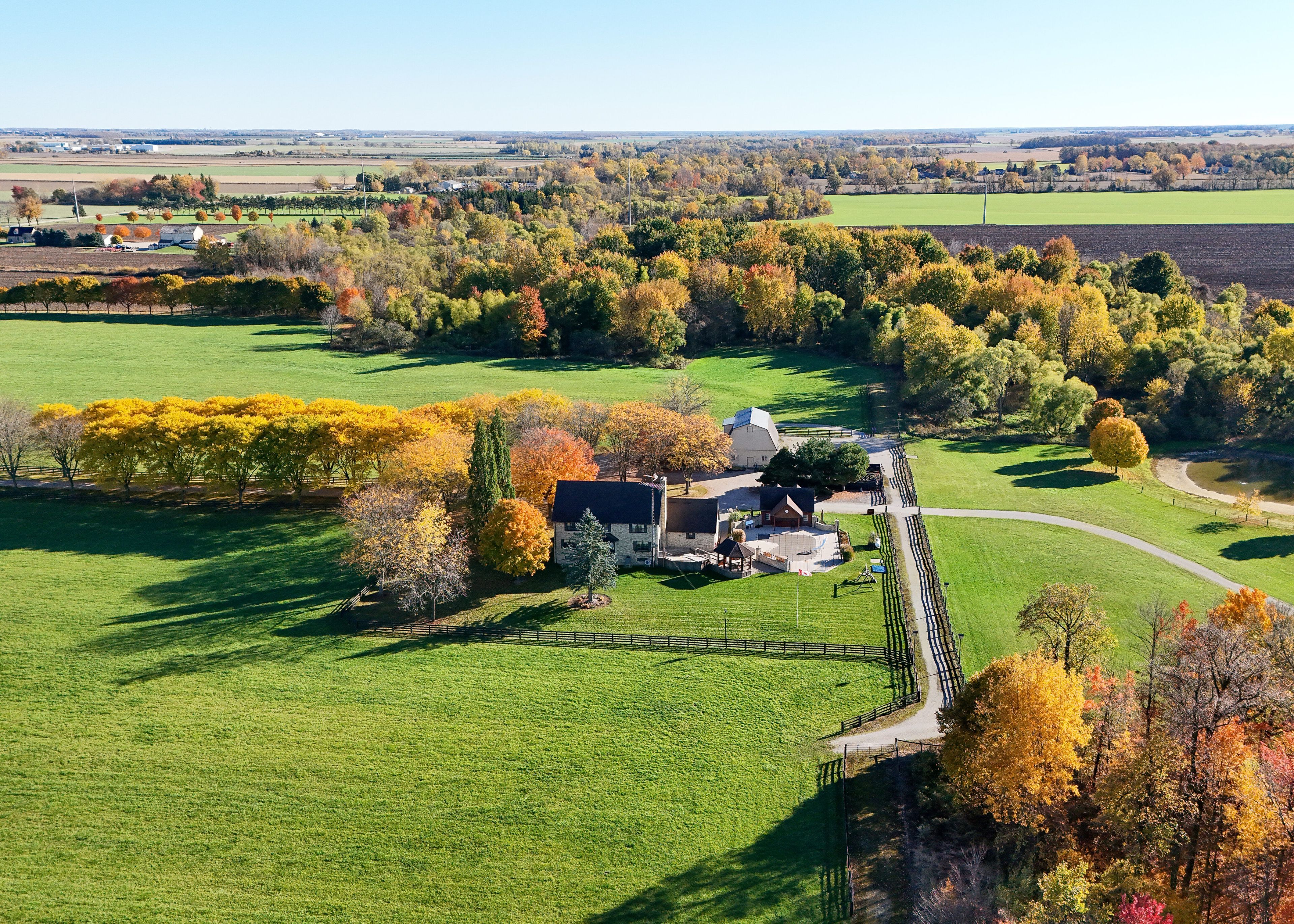 • 47.5 acres of workable land with a pond and buildings.