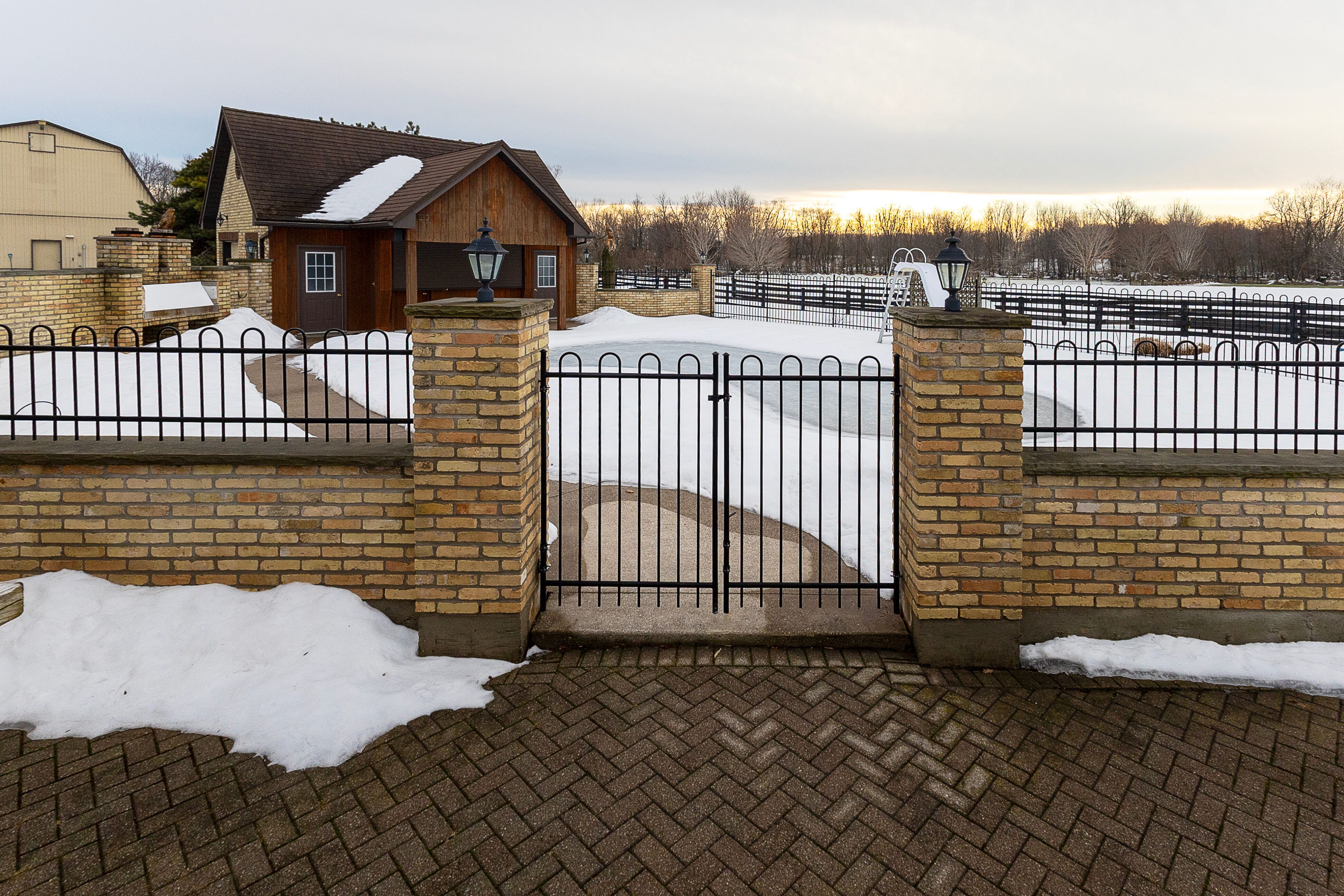 • Inviting pool with a pool house and bar for entertainment.