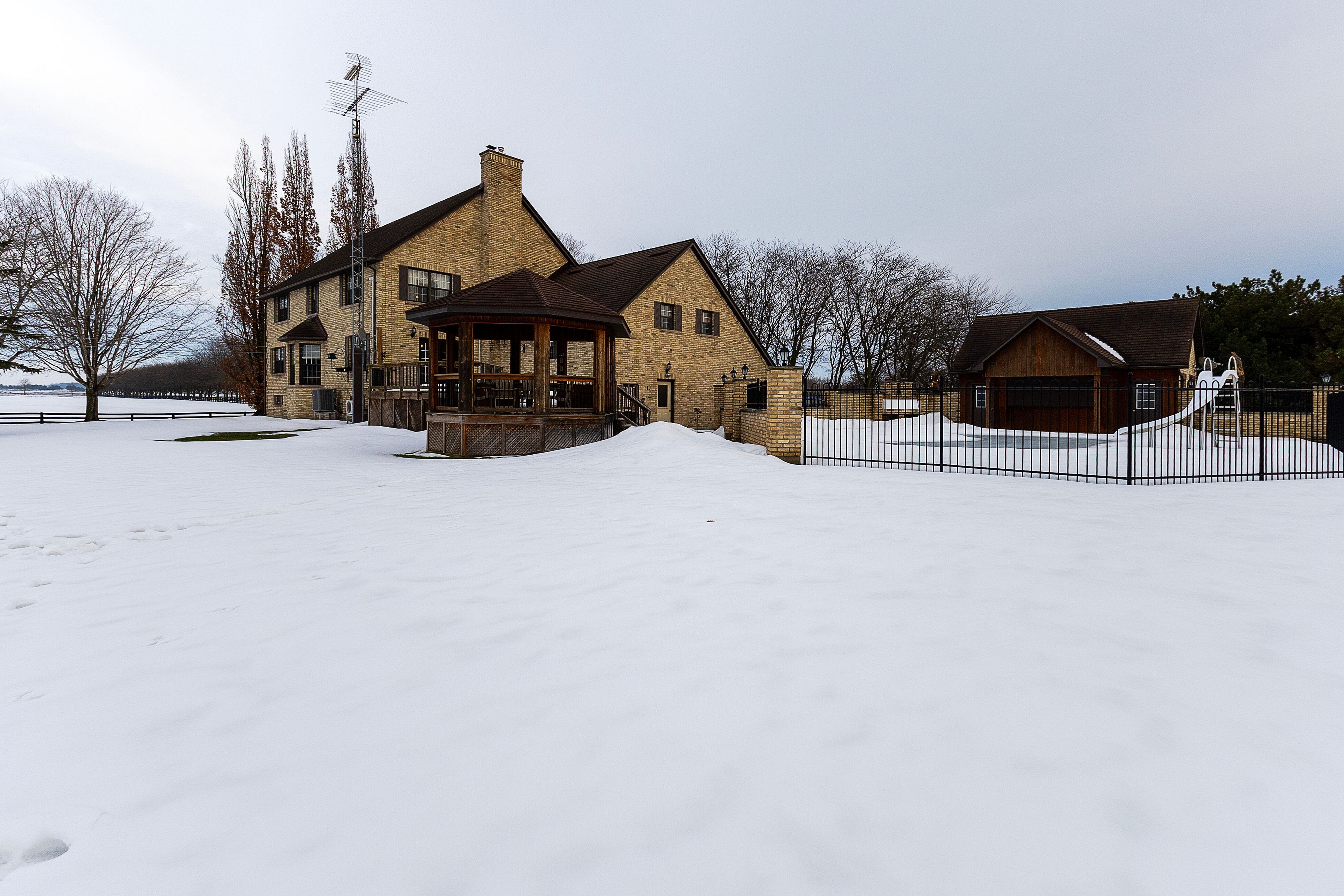 Farm for sale 69. 7 acres more or less. Immaculate property along the ausable river on ausable line. Two storey home with beautiful wood trim and granite counter tops in kitchen and master bath. Amazing pool with pool house and bar. Fully automatic 50kw generator for ultimate comfort. Perfect heated barn for livestock with barnyard or would make great workshop. Livestock waterer in middle of both fields for pasturing livestock if desired. Gps shows workable 47. 5 acres, river flats & pond 18. 5 acres, buildings, yards, & laneway 3. 7 acres.