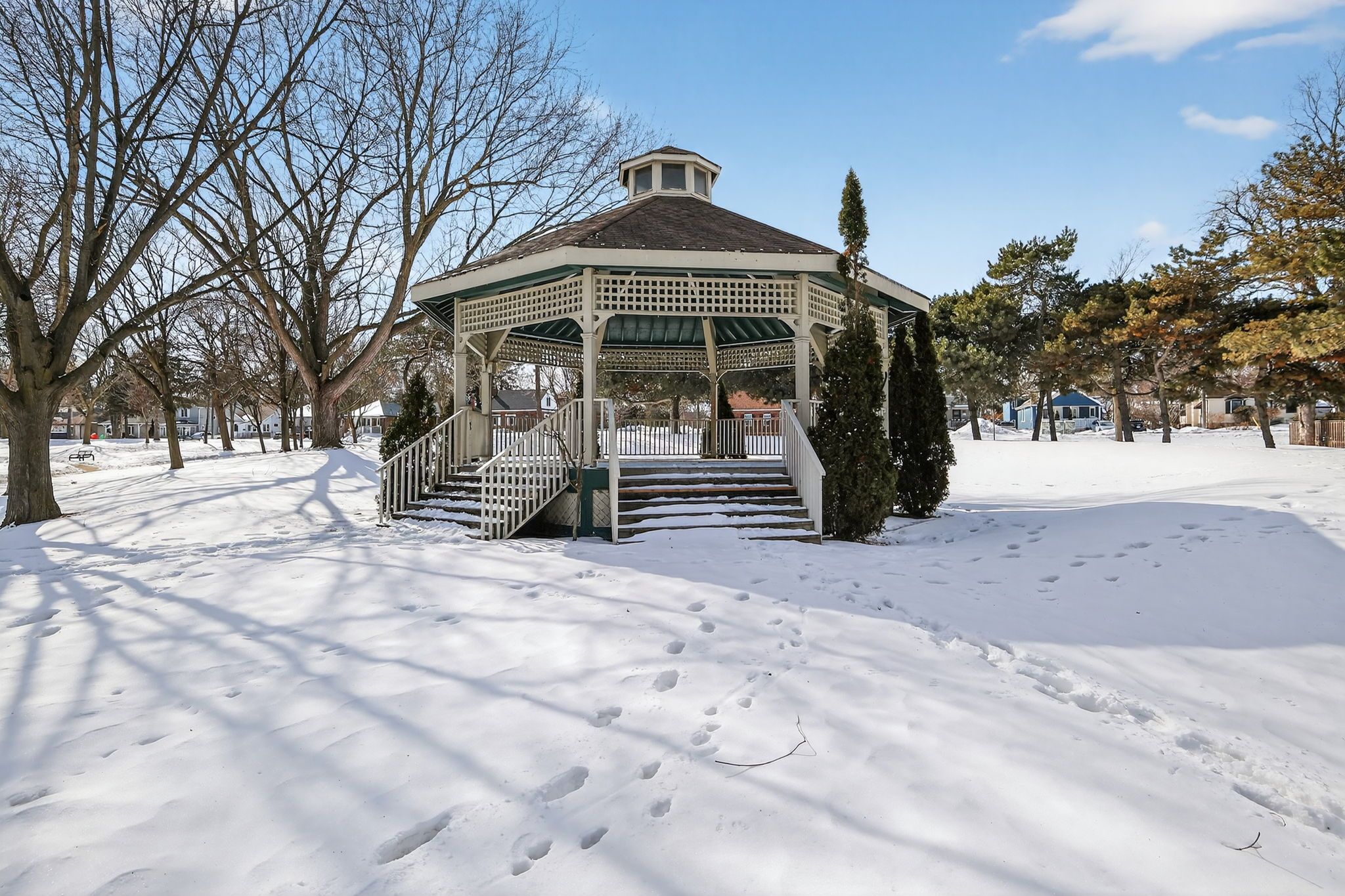 • Upper unit features a deck with views of the park and summer concerts.