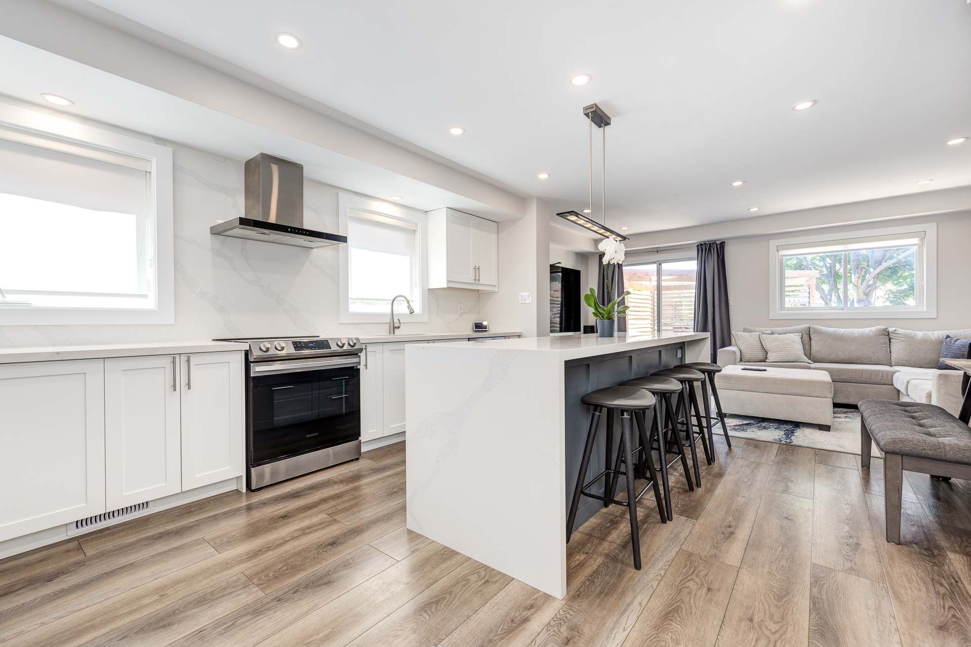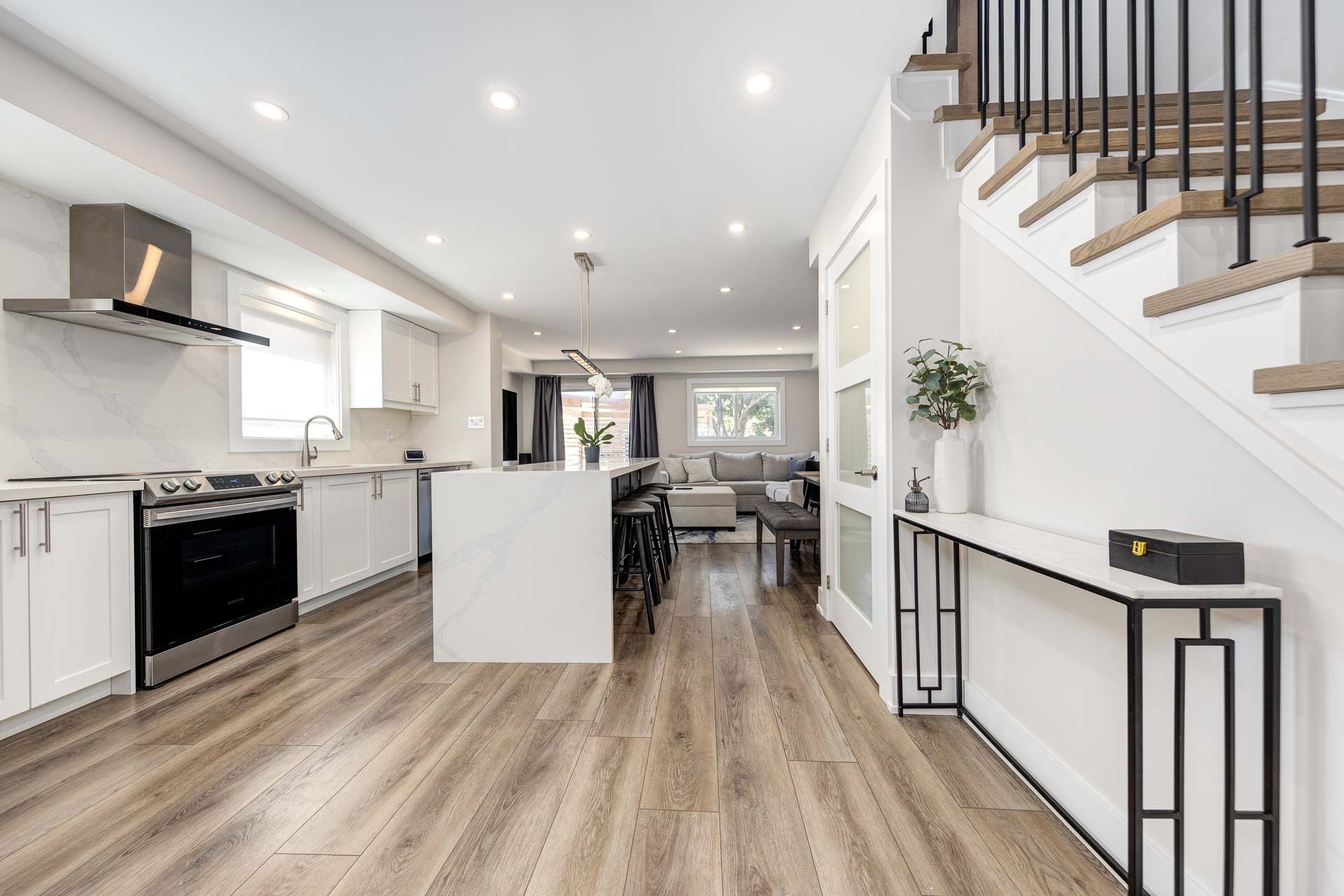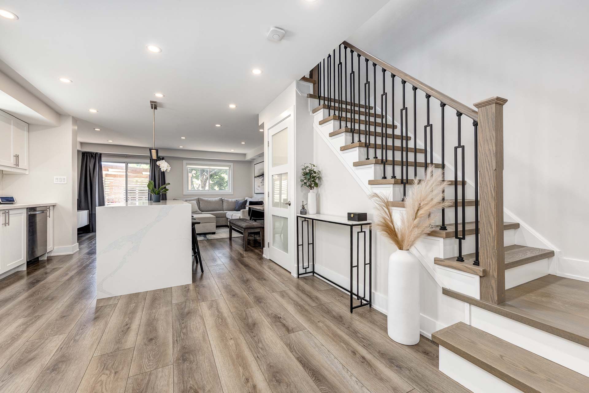 • Open-concept main floor with natural light and custom pot lights.
