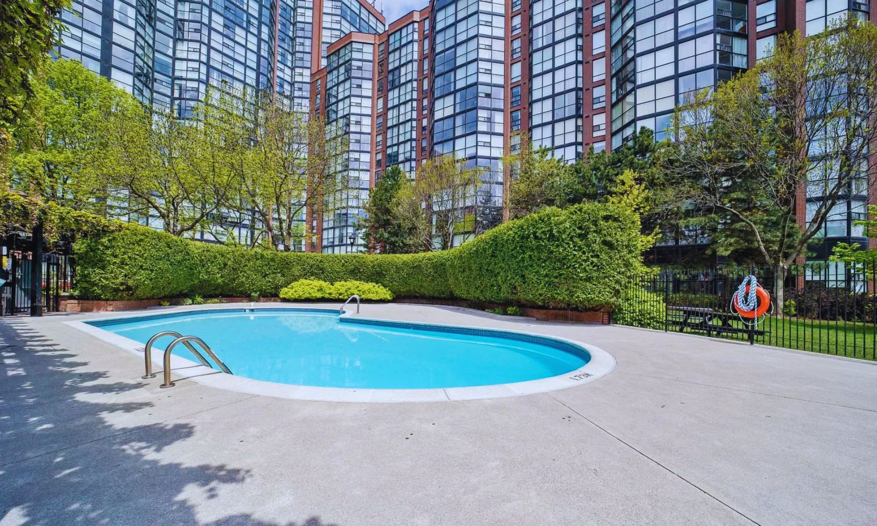 • Overlooks a private residents-only green space for tranquility.