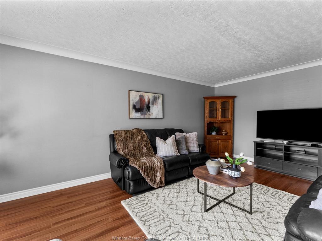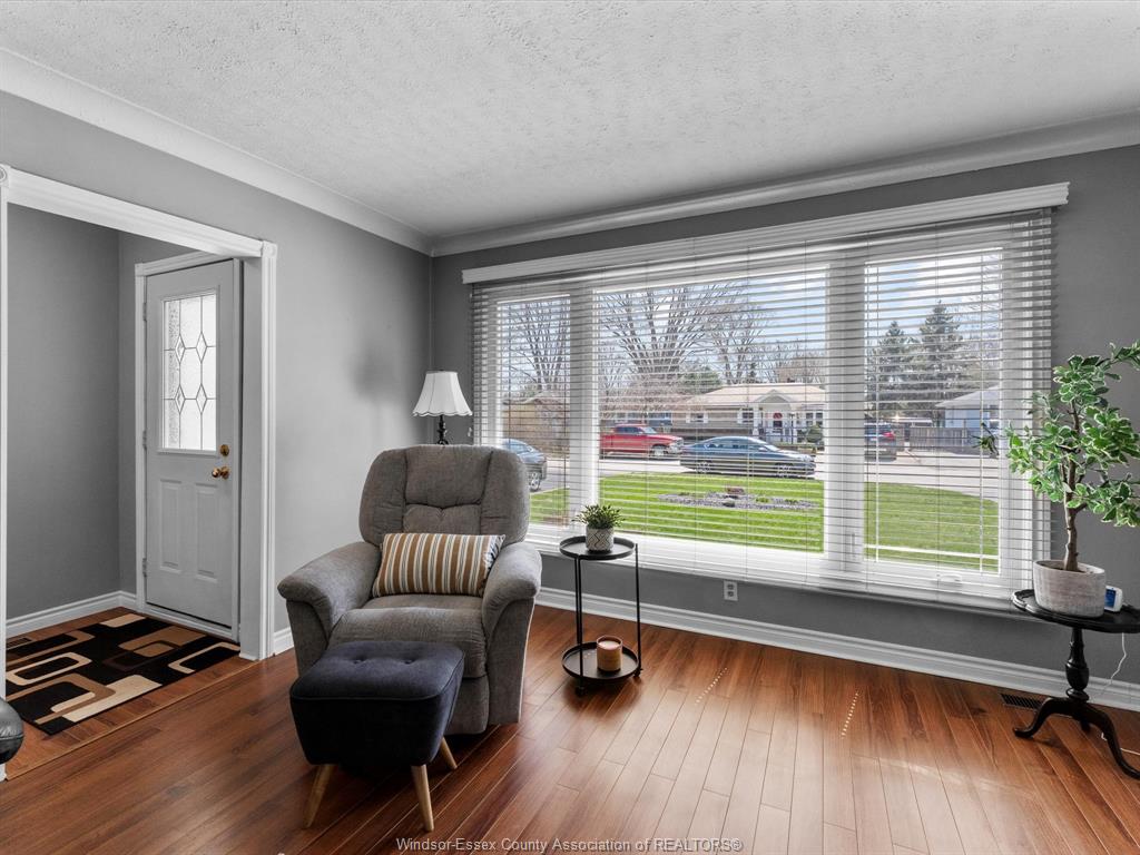 • Bright living area with large windows and updated flooring throughout.