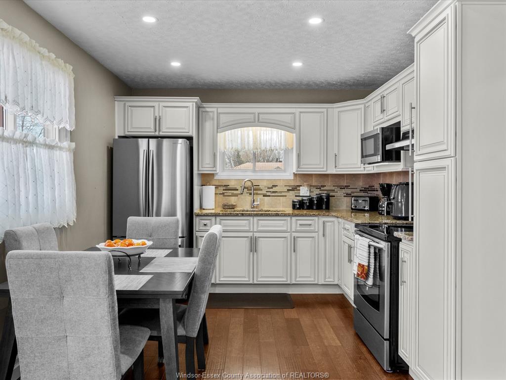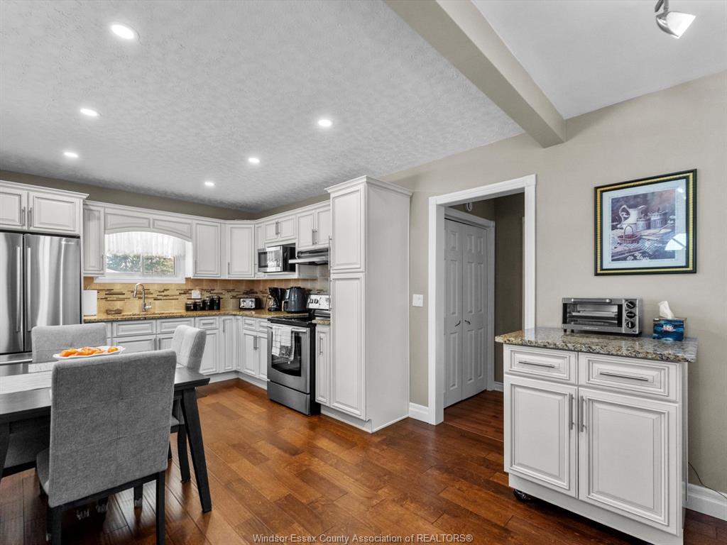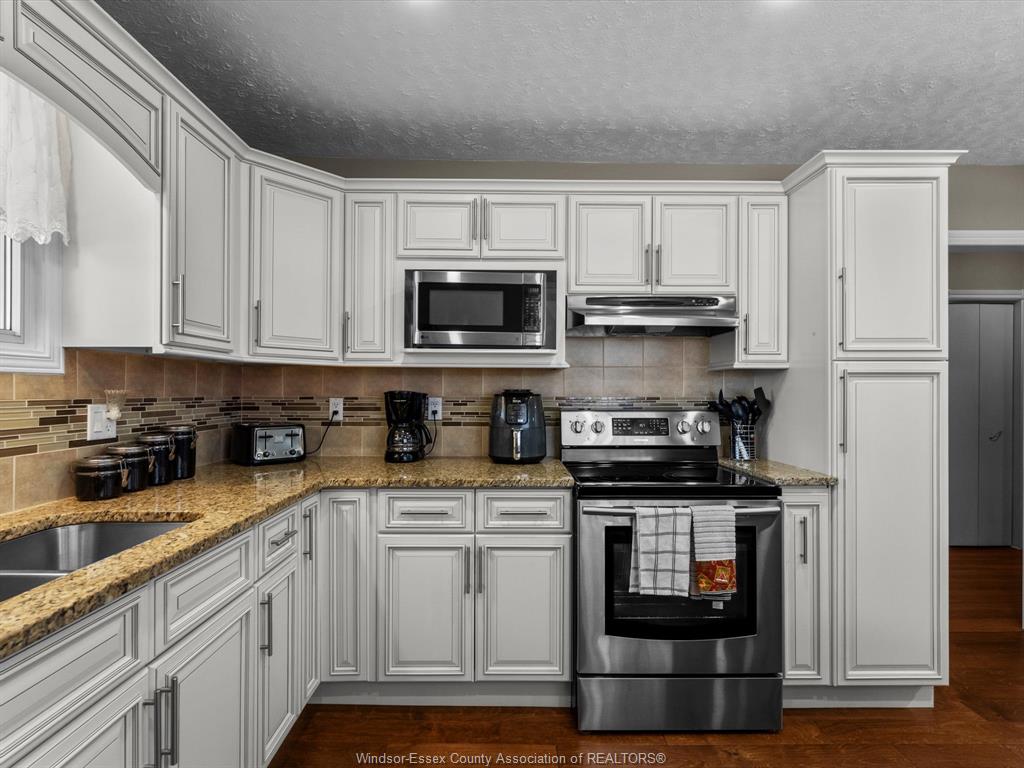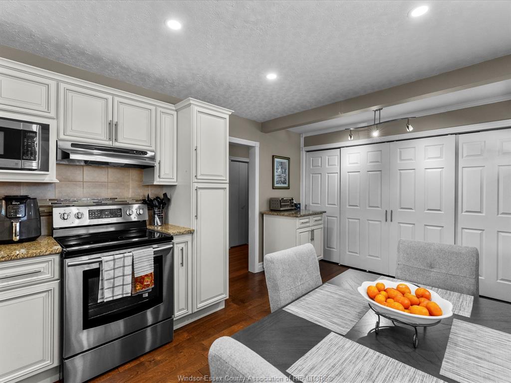 • Tastefully updated kitchen with modern cabinetry and stainless steel appliances.
