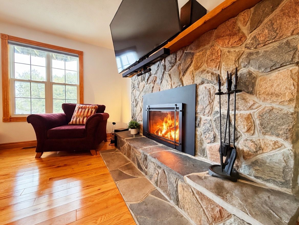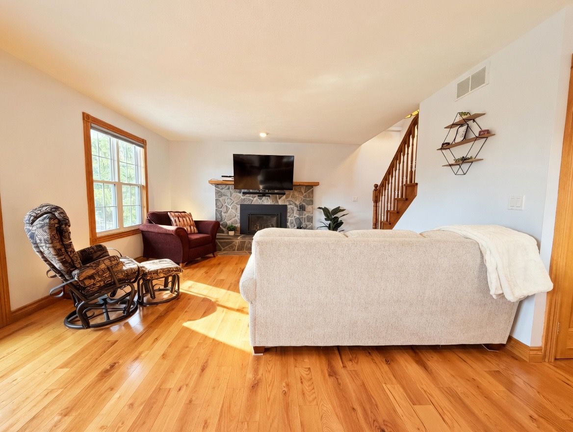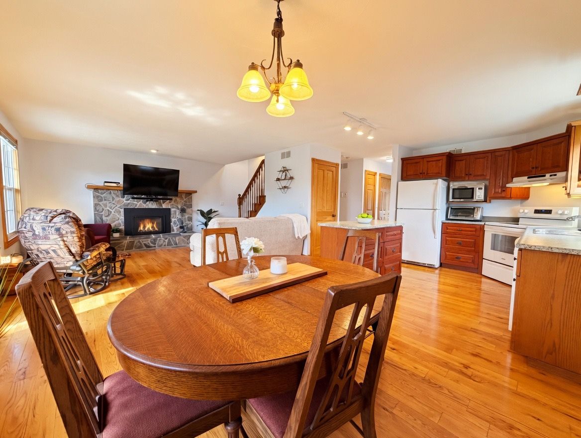 • Cozy living room with a gas fireplace and access to a large deck.