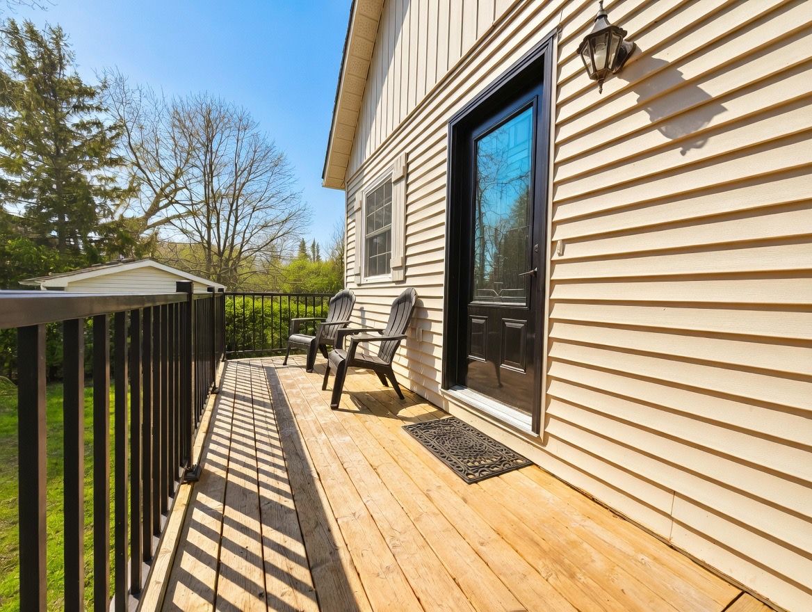 Welcome to 705 victoria road, point clark. This charming home is nestled on a private lot and is just a short walk to the shores of lake huron. It beautifully blends the relaxed feel of cottage living with the comfort and durability of a full-time home. The main level features a bedroom currently used as an office, main-level laundry, a spacious eat-in kitchen that flows naturally into a cozy living room with a gas fireplace. Patio doors open to a large rear deck, offering a perfect spot for relaxation, evening campfires, or entertaining guests. Upstairs you'll find two generous bedrooms, one with its own patio doors leading to a private balcony, along with a full bathroom. The lower level has a large rec room, an additional bedroom, a three-piece bathroom, and plenty of storage space. With a separate walk-up entrance, this level presents an excellent opportunity for rental income. The quaint front porch is ideal for sipping coffee or enjoying a good book. A nicely updated storage shed complements the property perfectly. This is a special opportunity that is truly best experienced in person.