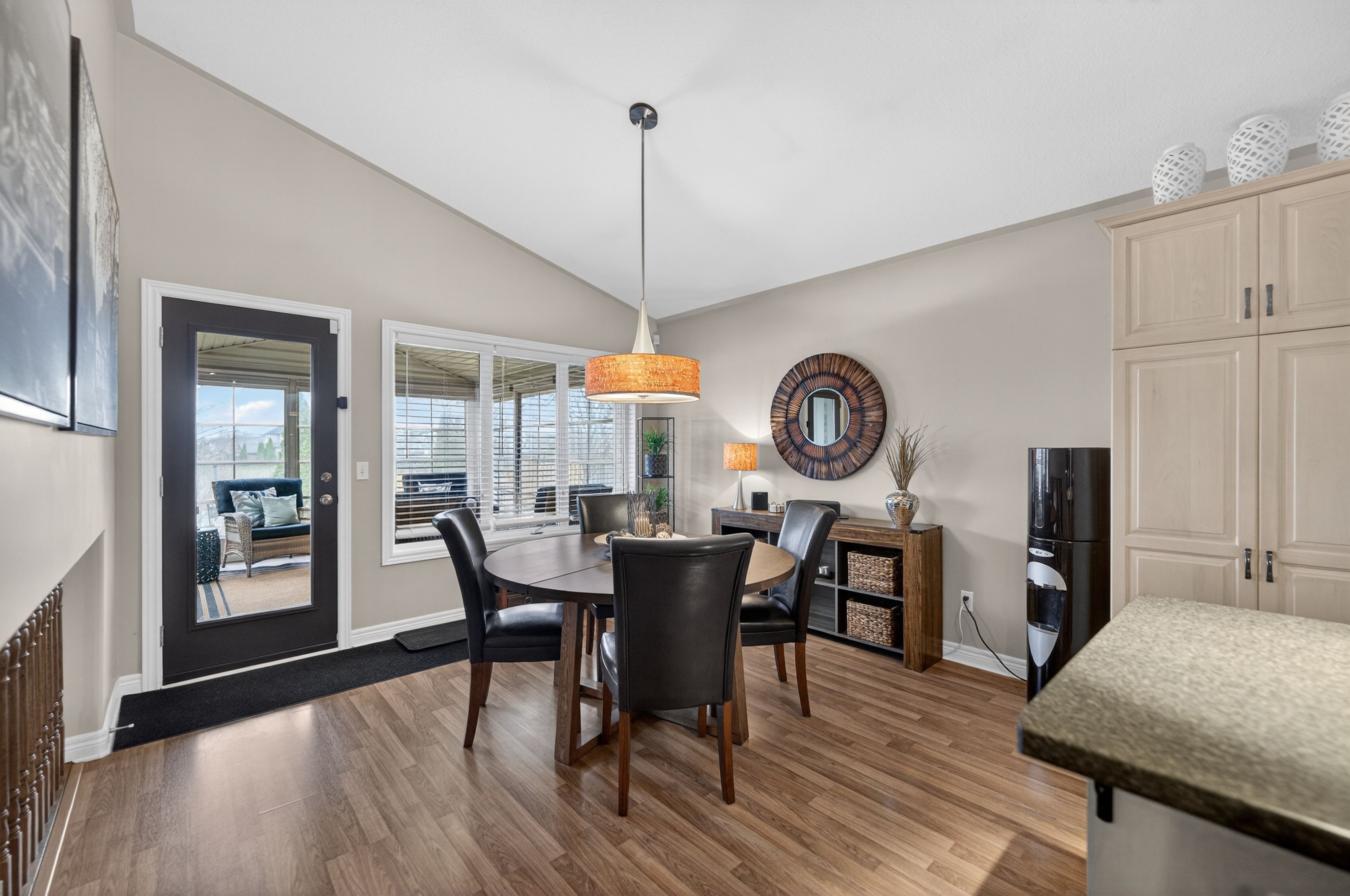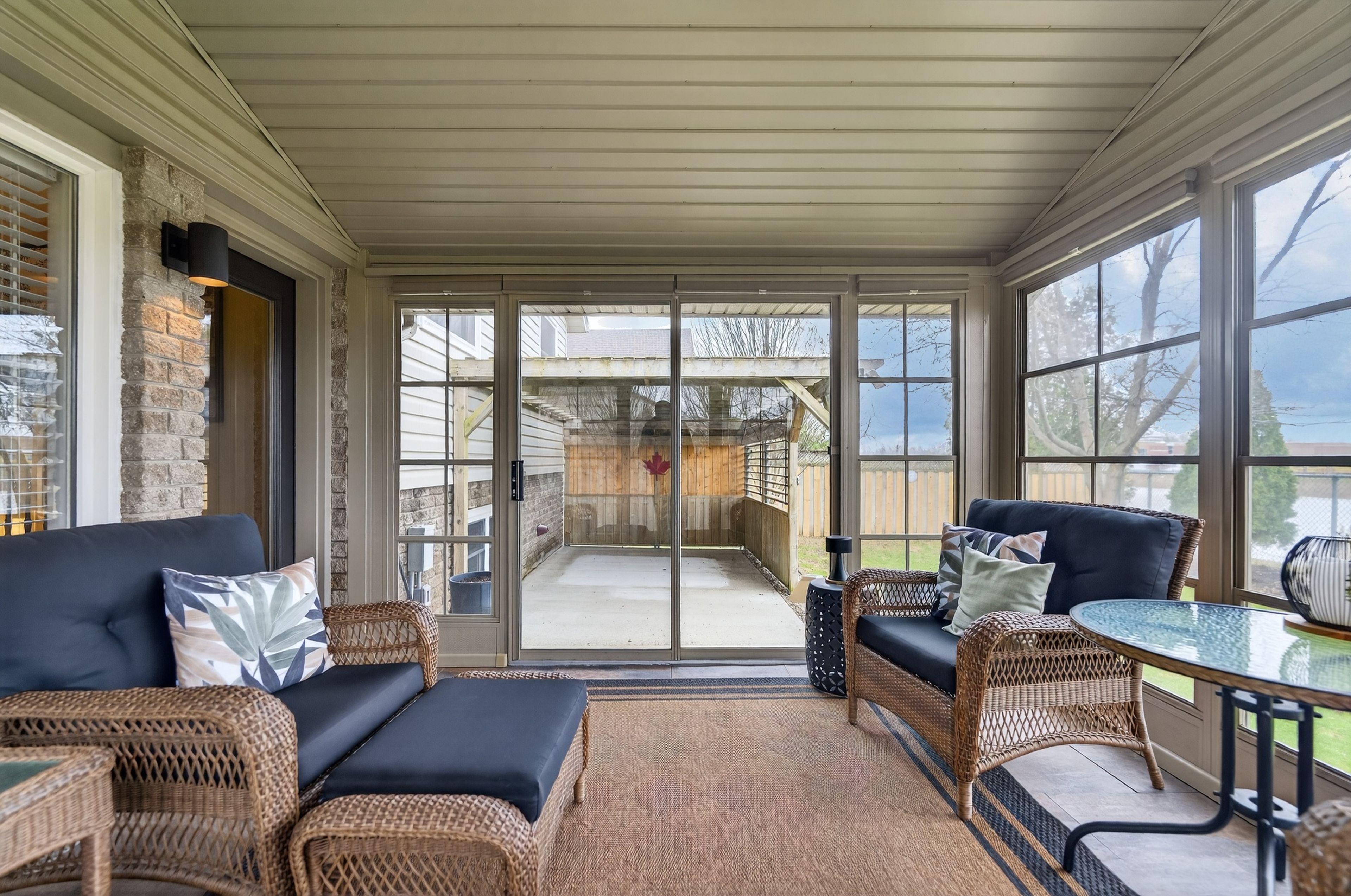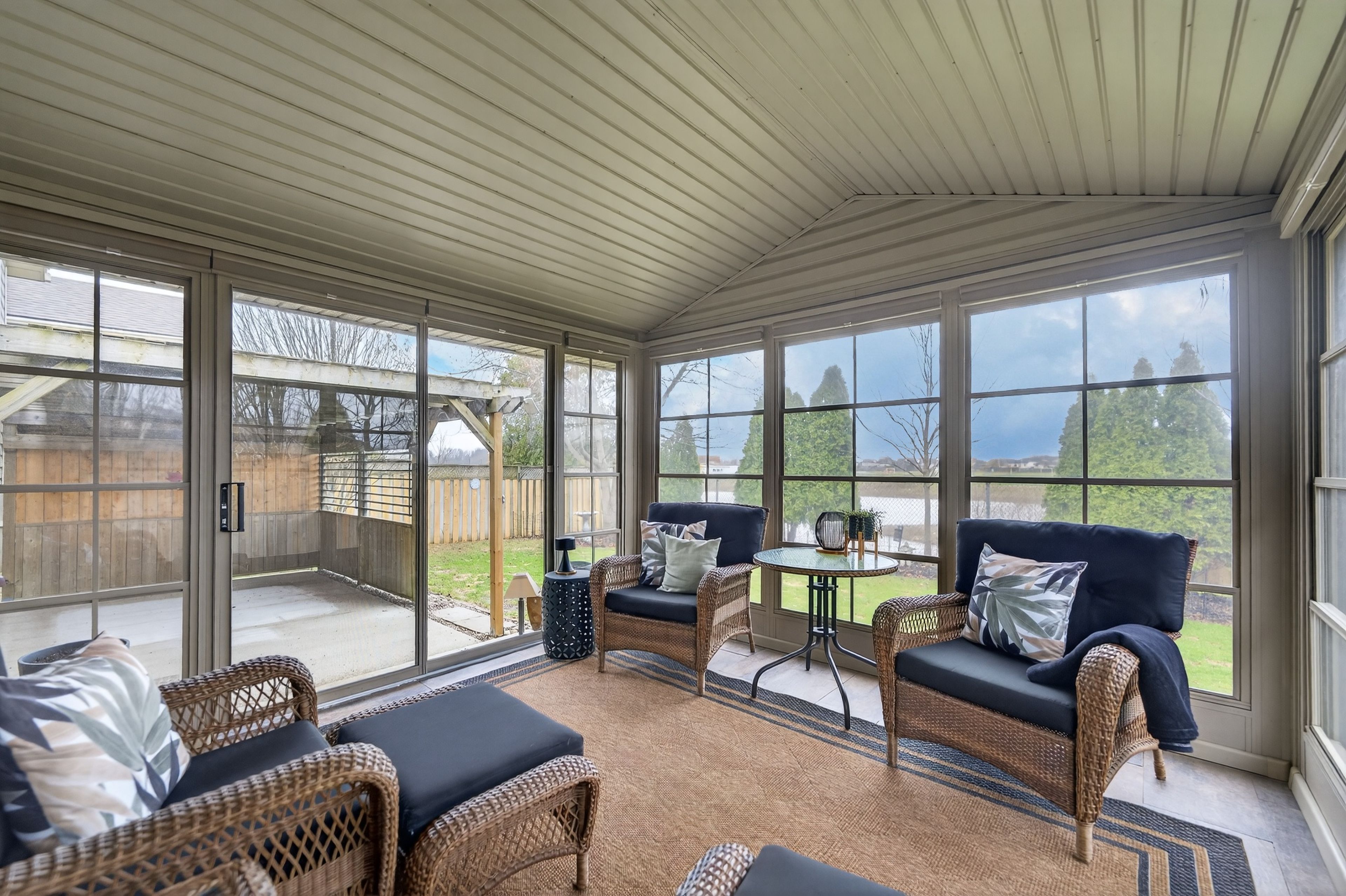 • Three-season sunroom offers a relaxing space to enjoy outdoor views.