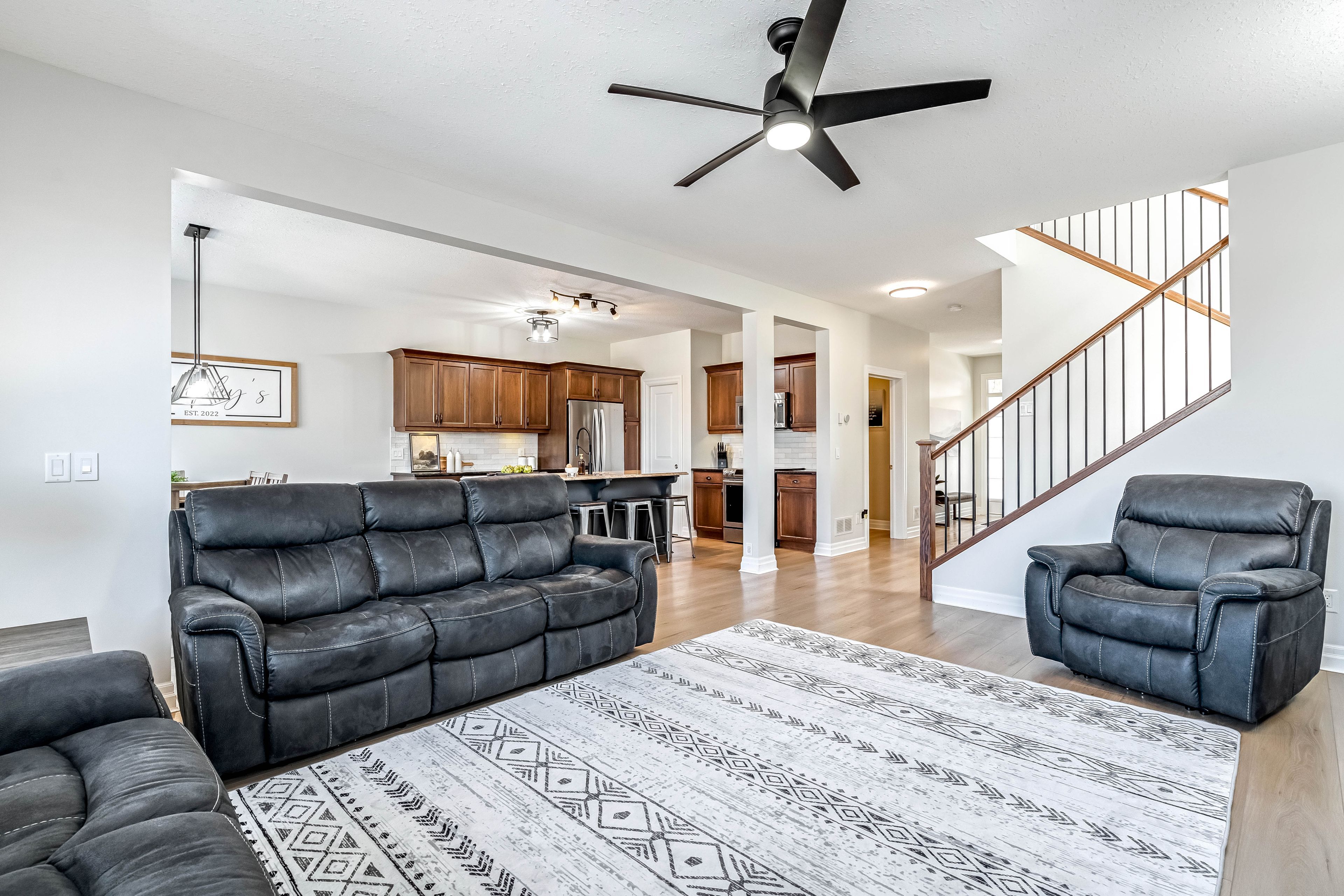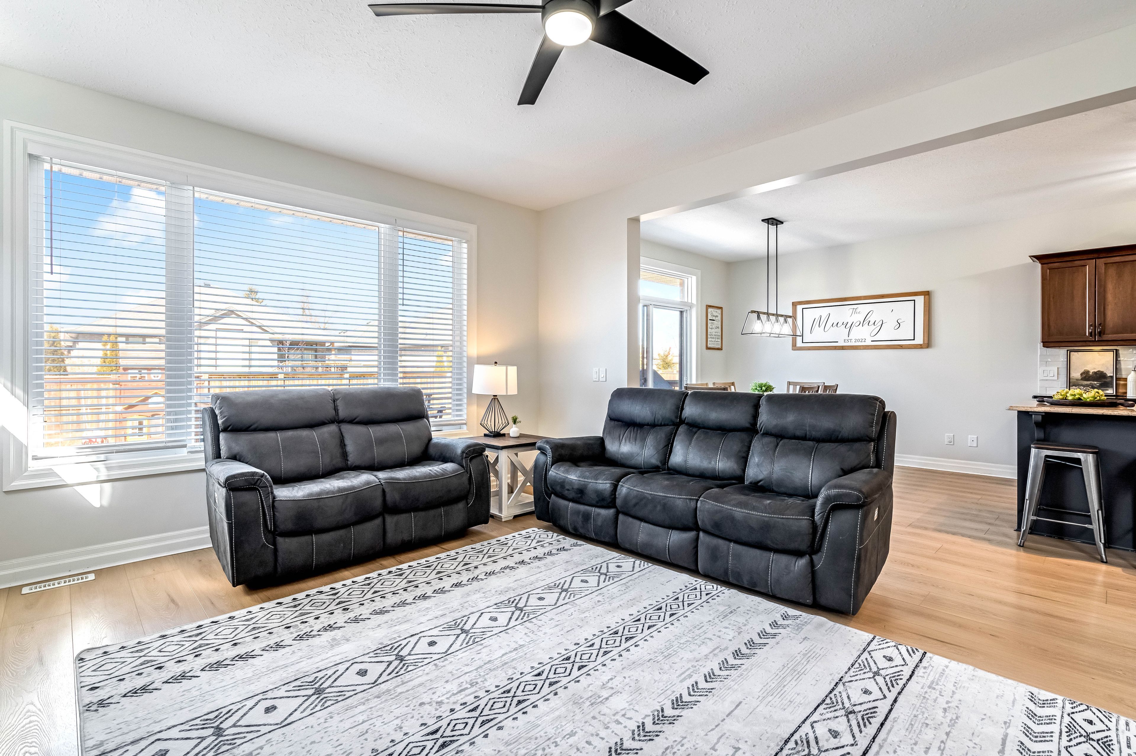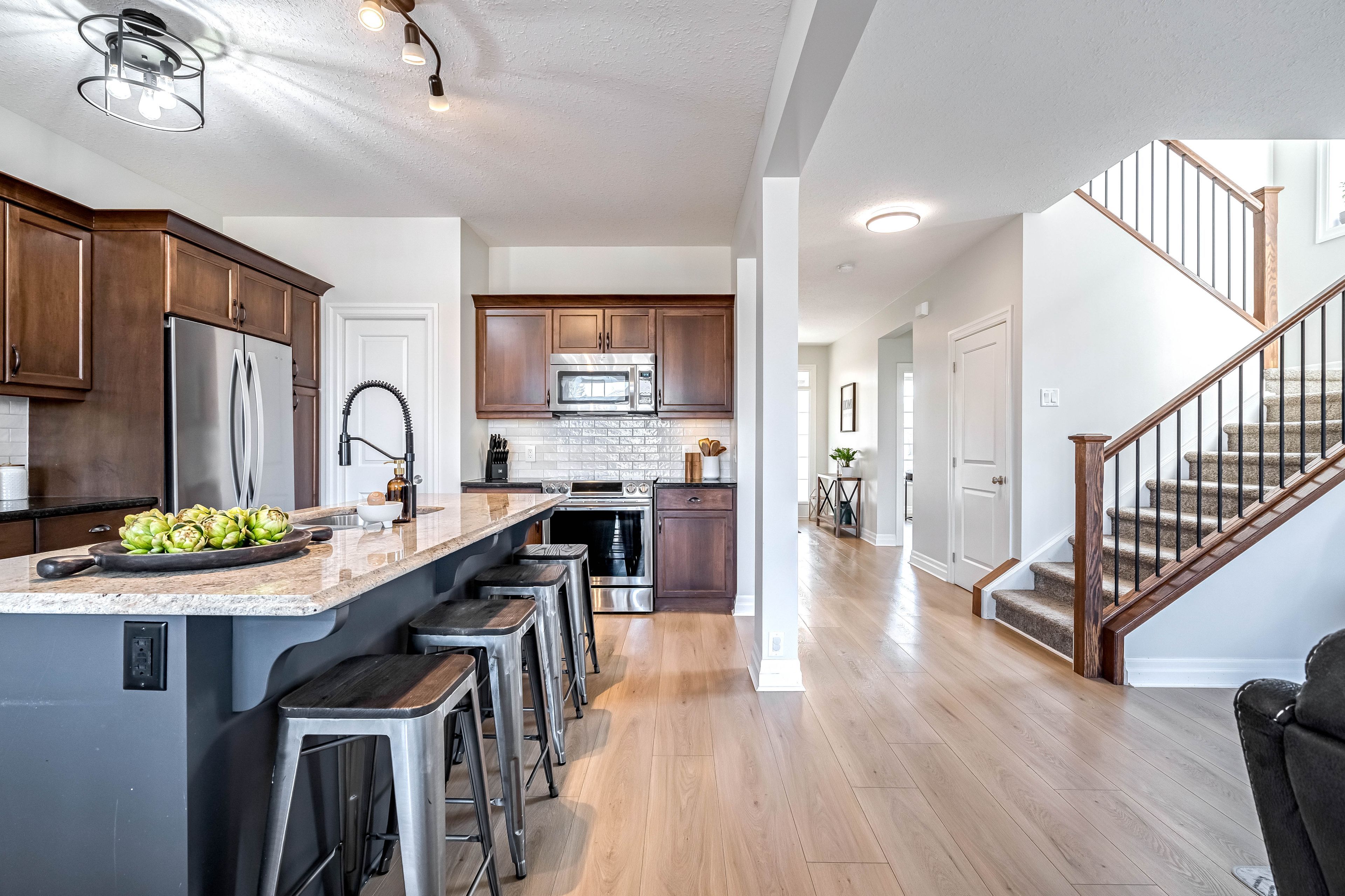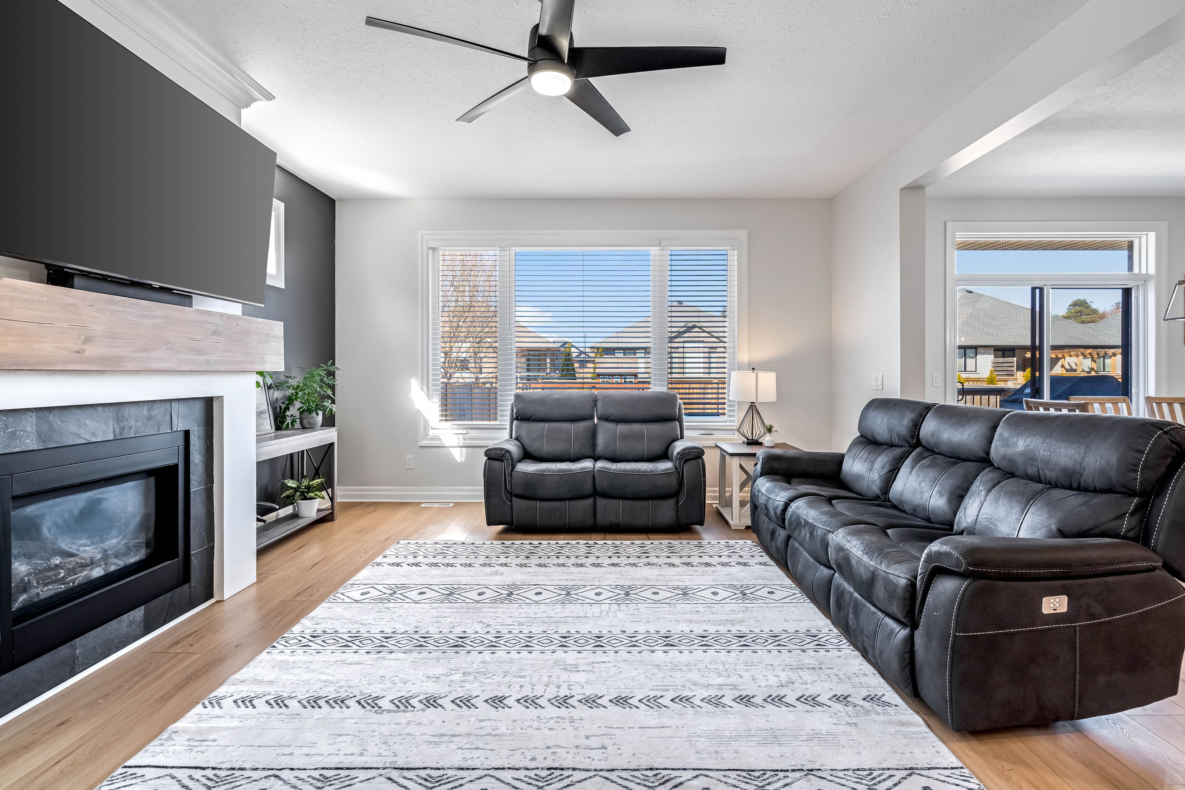 • Open-concept main floor features a gas fireplace and modern appliances.