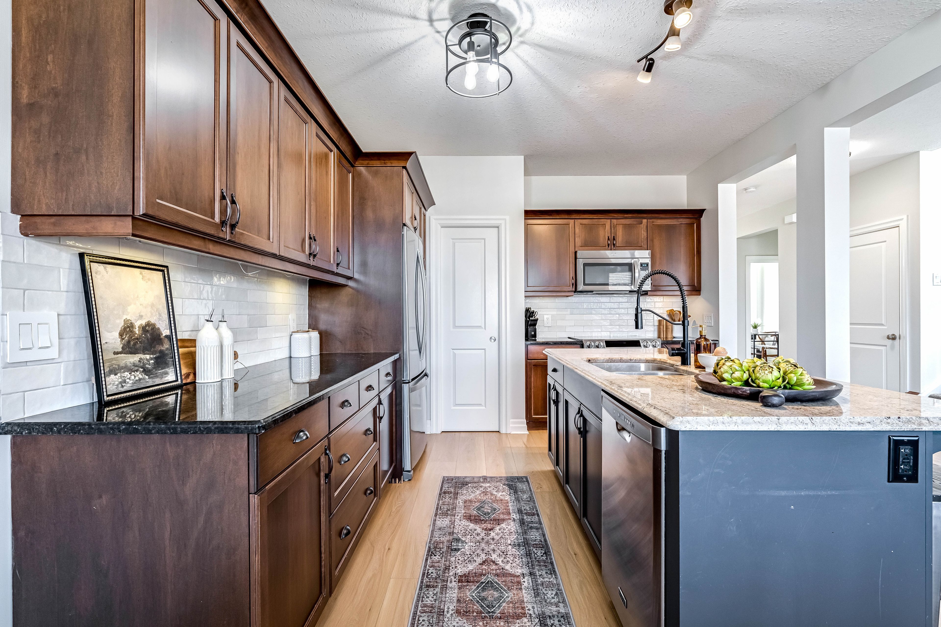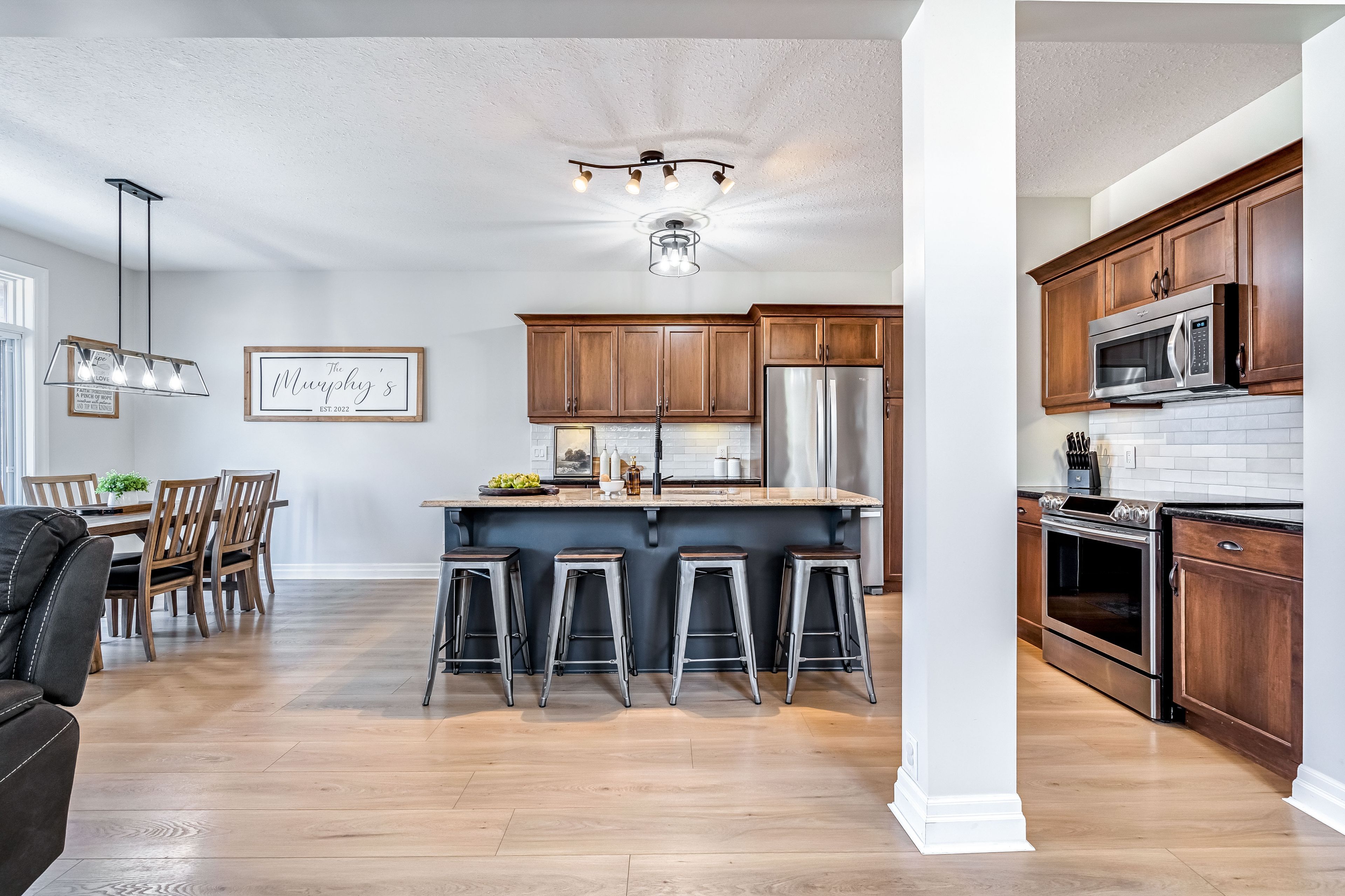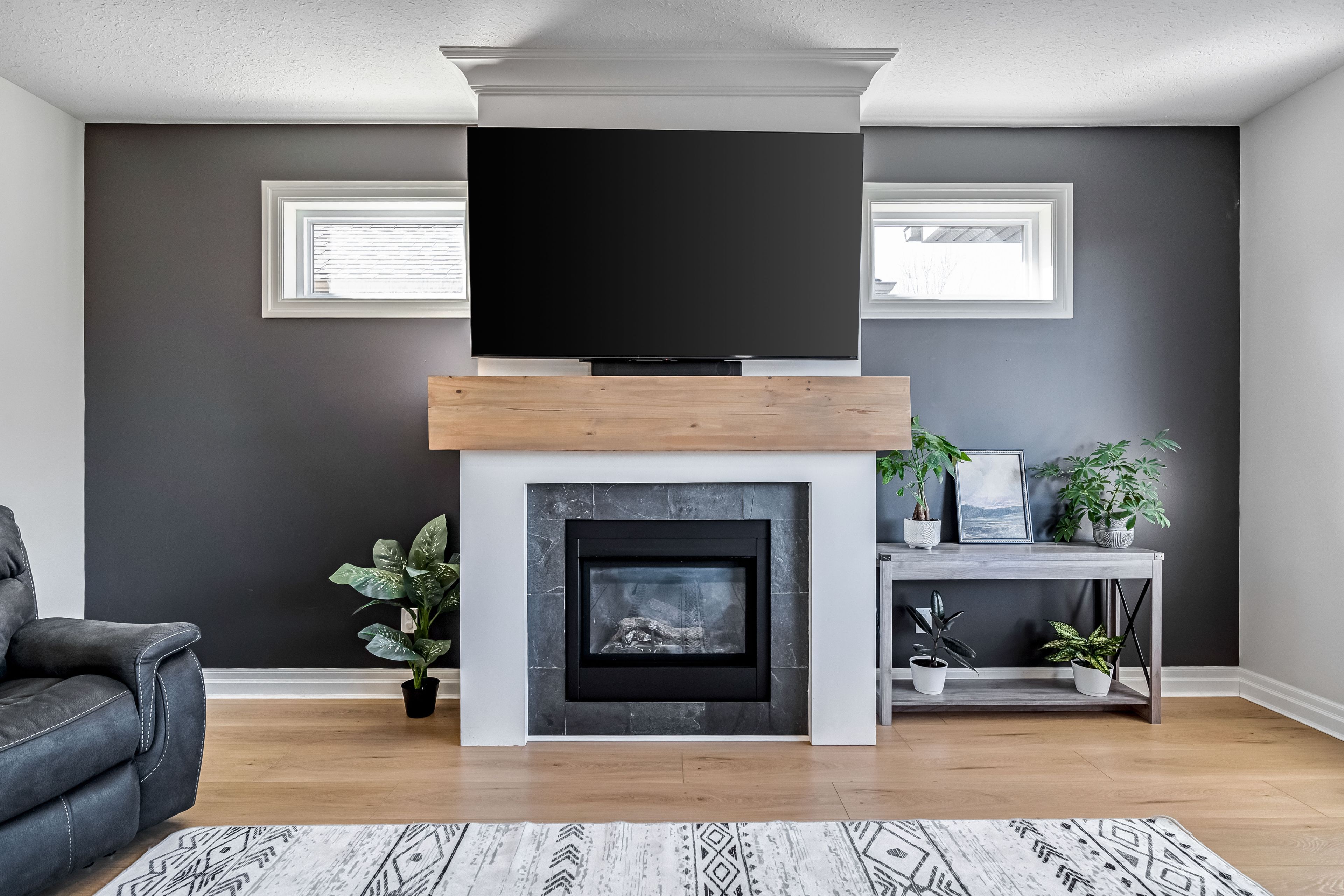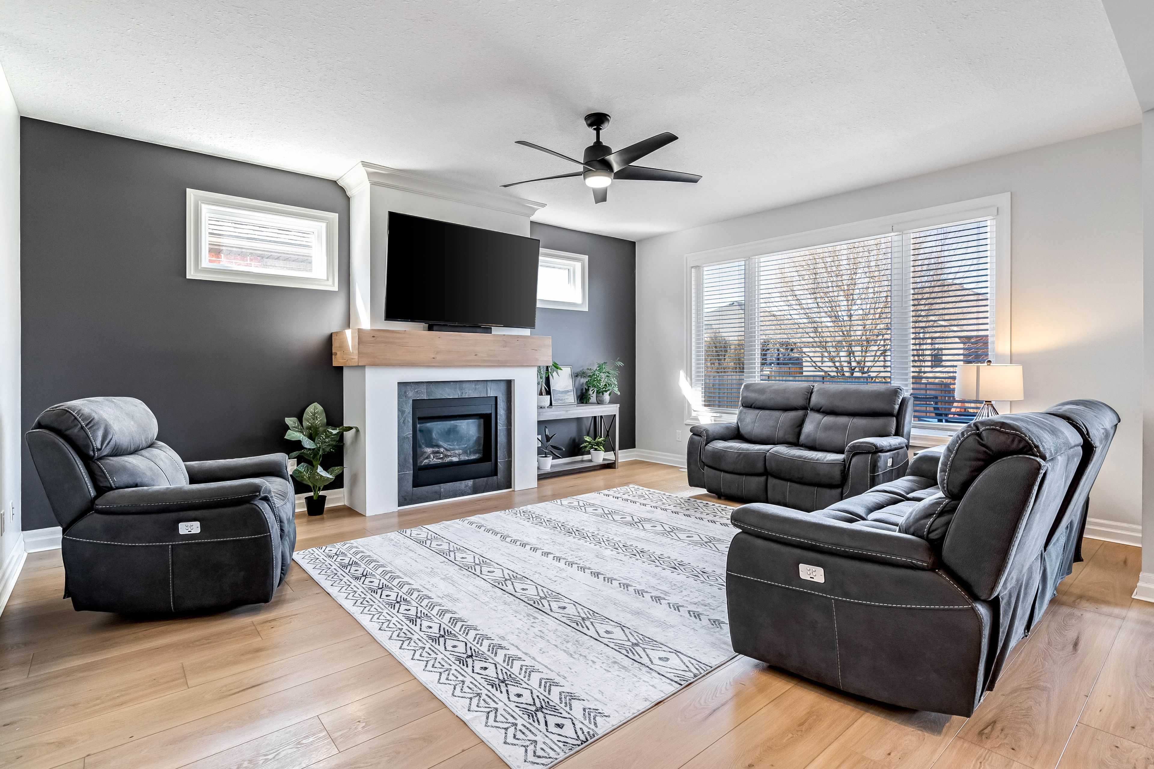 • Open-concept main floor features a gas fireplace and modern appliances.