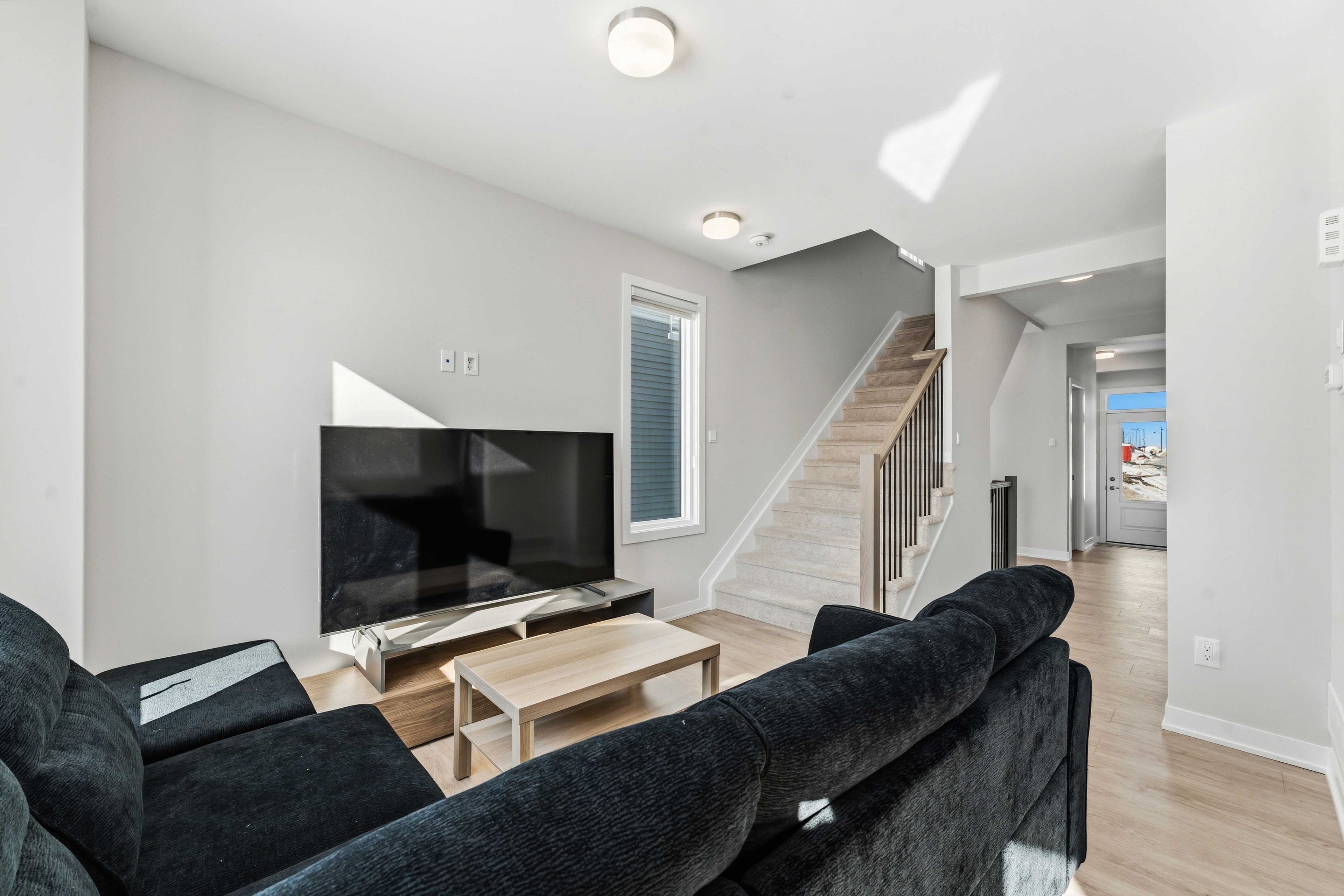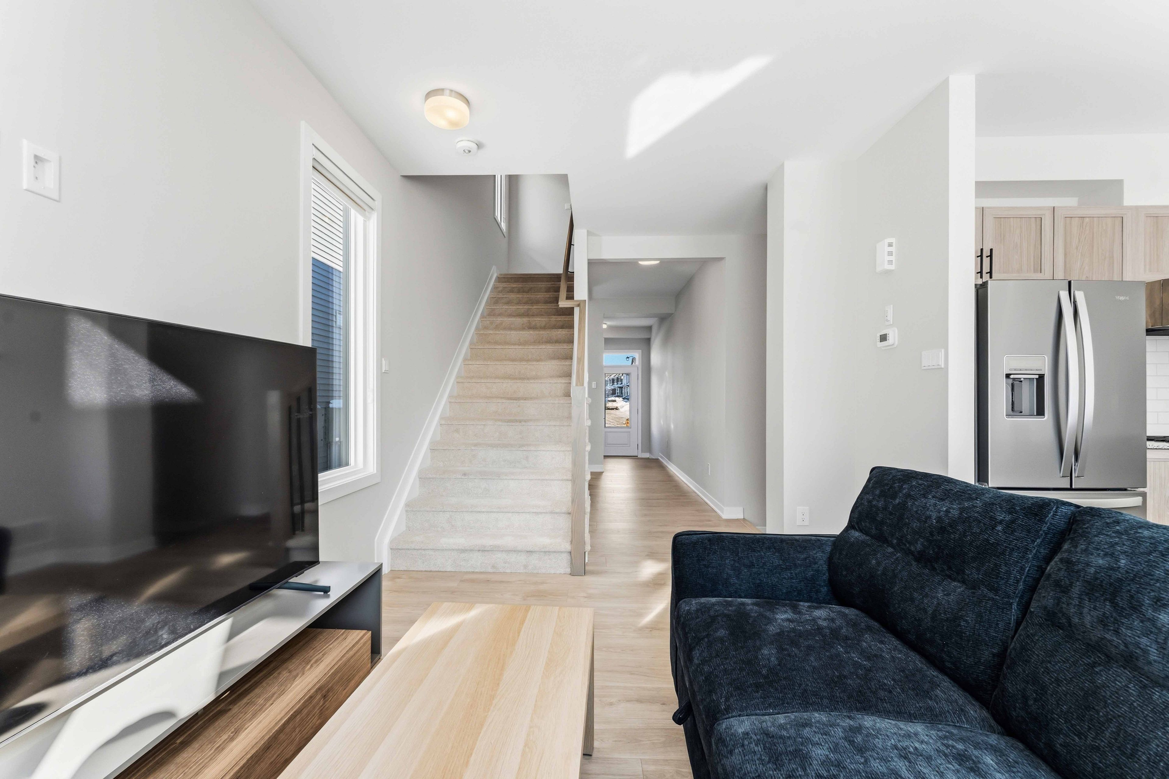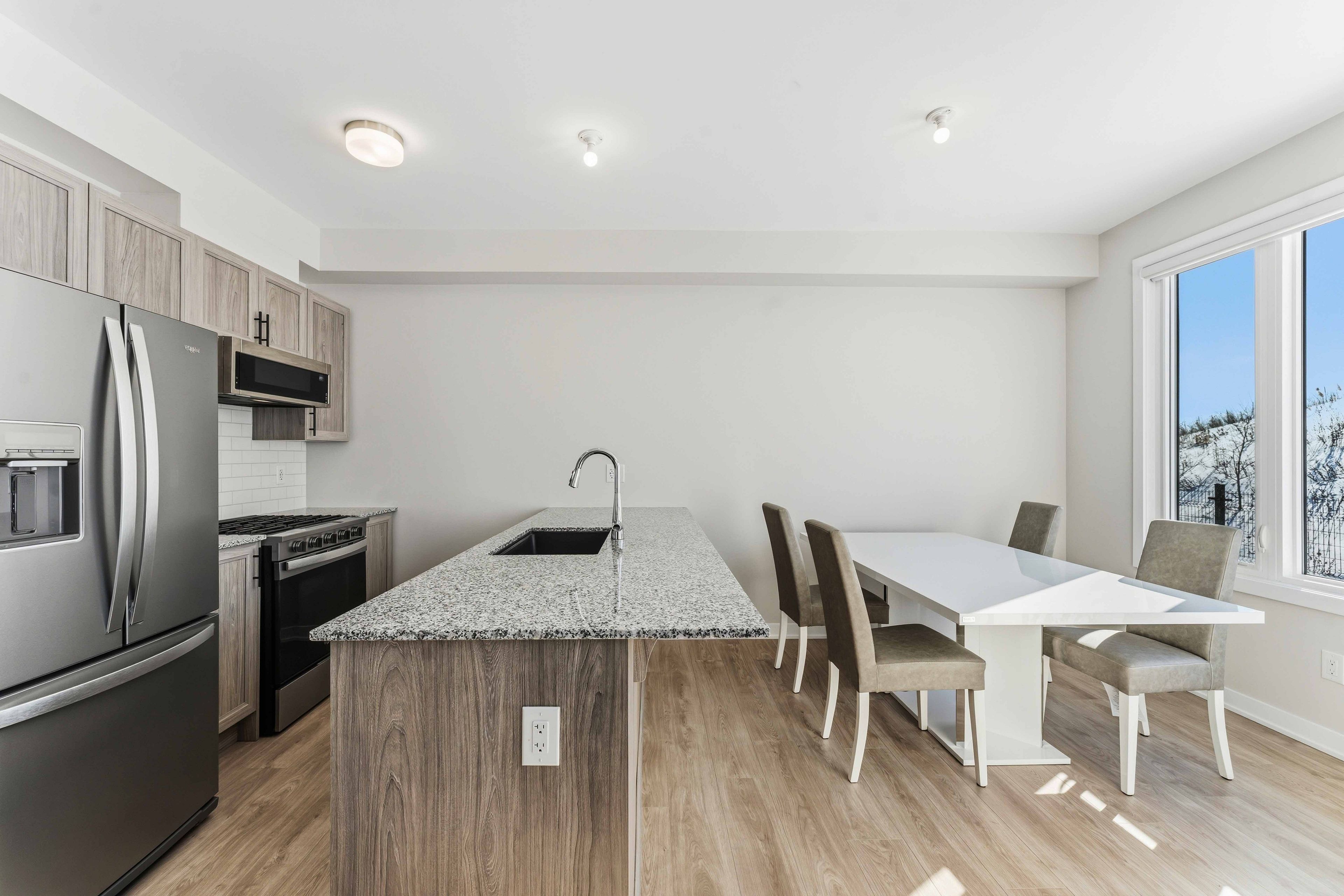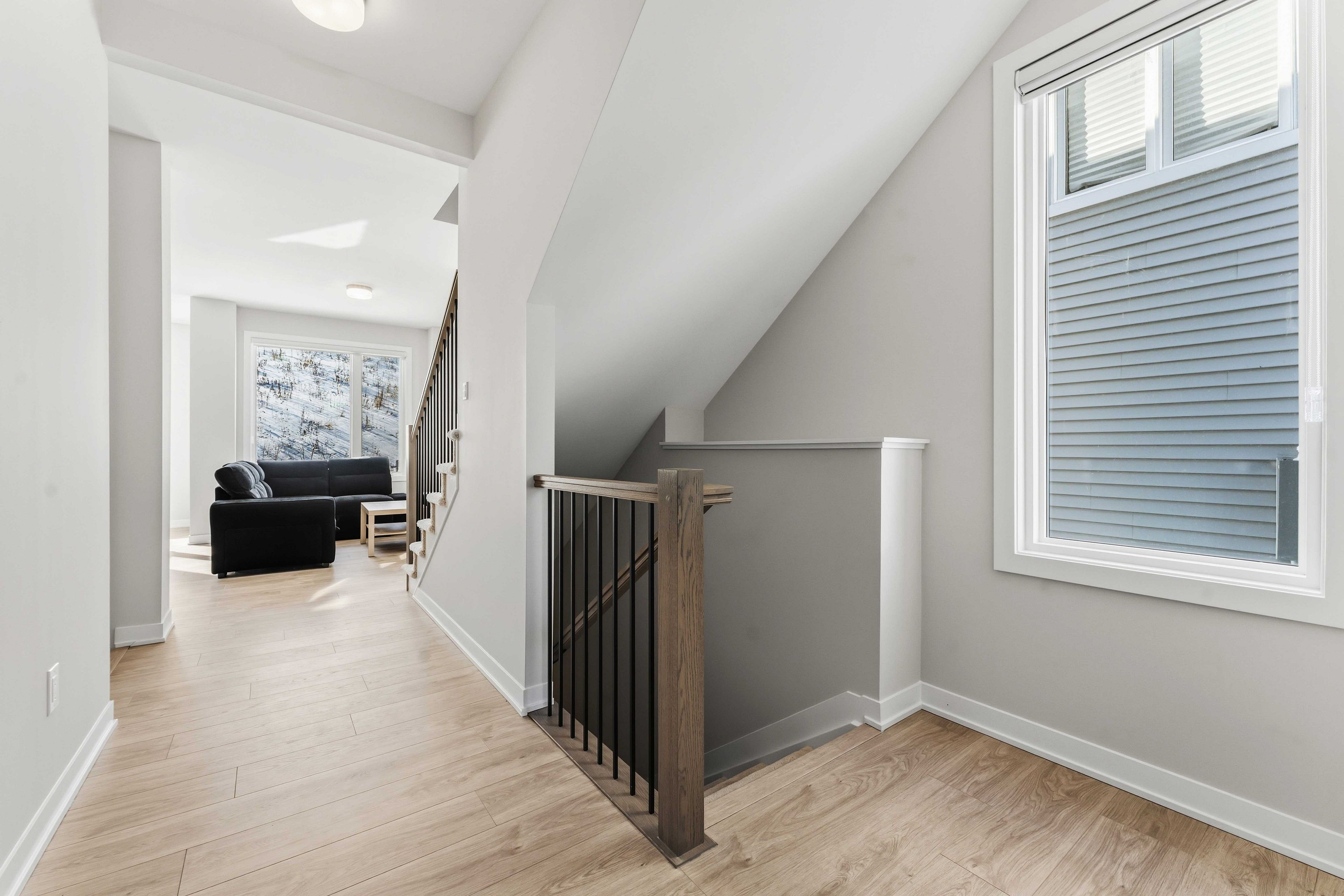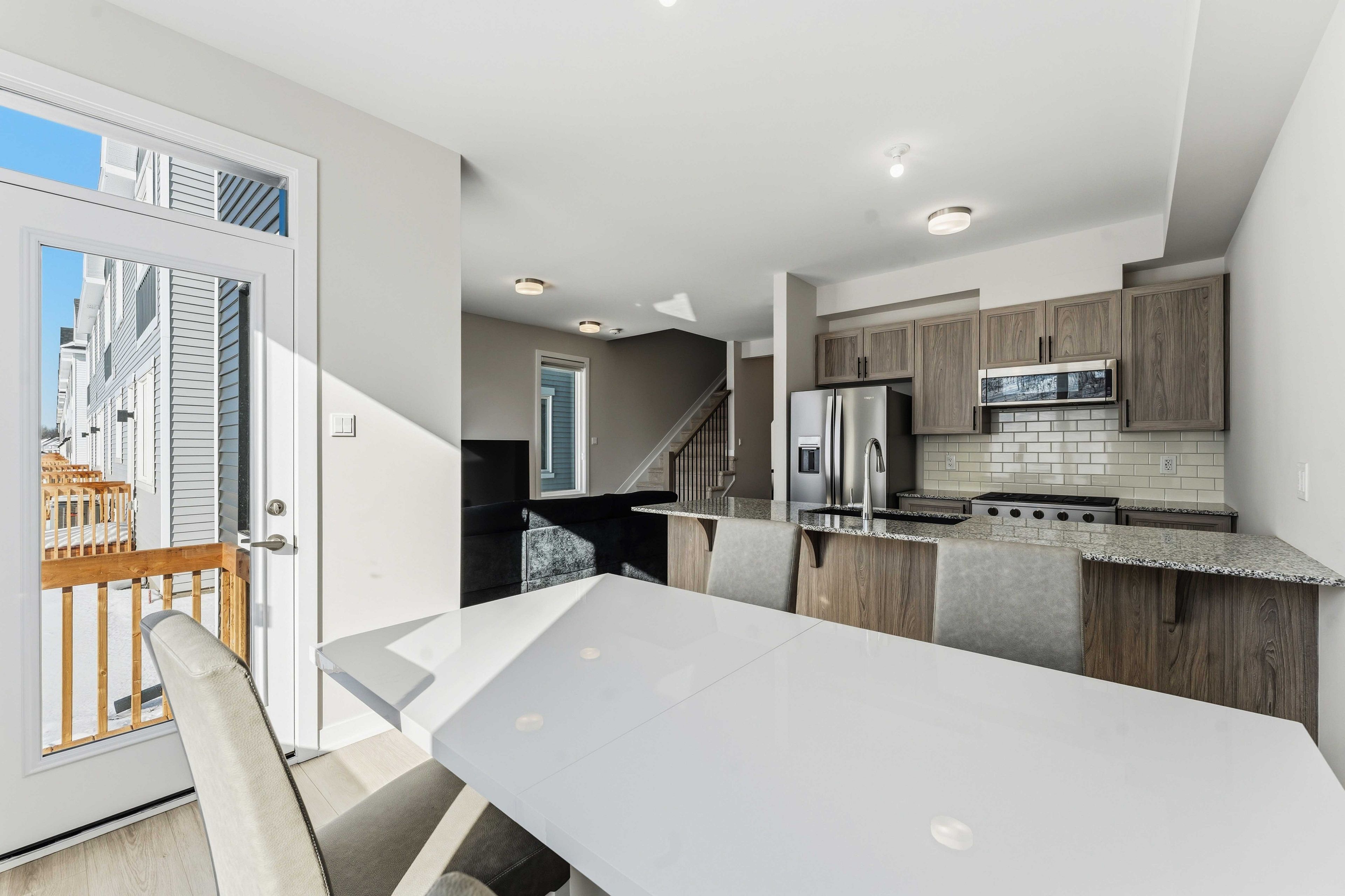 Stunning new 3+1 bedroom end-unit townhome located in barrhaven with no rear neighbours, backing onto a natural hill for added privacy. This beautifully upgraded home offers 3. 5 bathrooms and a bright, functional layout ideal for families and professionals alike. The main floor features 9-foot ceilings and smooth ceilings throughout, enhancing the open-concept design and allowing for abundant natural light, especially as an end unit. The modern kitchen is finished with upgraded granite stone countertops and is fully equipped with new stainless steel whirlpool appliances, including a gas stove with air-fry oven, french-door refrigerator with bottom freezer and water and ice dispenser, and a powerful 400 cfm slim over-the-range microwave hood fan, making it a true chef inspired space. The upper level offers three generously sized bedrooms, including a spacious primary suite with an upgraded ensuite featuring a walk-in shower. The fully finished lower level provides a versatile +1 bedroom, ideal for a home office, guest room, or additional living space. A total of 3. 5 bathrooms ensures comfort and convenience for the entire household. This home is truly move-in ready with custom zebra blinds installed throughout. The private backyard setting offers peaceful views of the hill behind with no rear neighbours, a rare and highly desirable feature in townhome living. Ideally situated close to top-rated schools, including barrhaven public school, longfields-davidson heights secondary school, and mother teresa high school. Enjoy easy access to costco, walmart, loblaws, cineplex, restaurants, cafes, parks, trails, public transit, the barrhaven station, and highway 416 for effortless commuting.