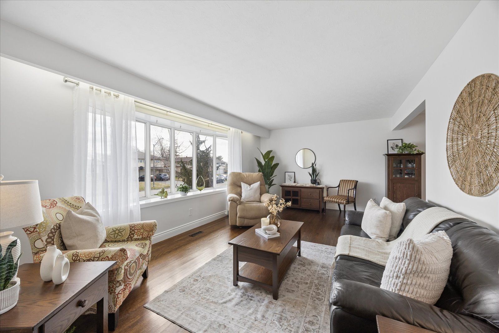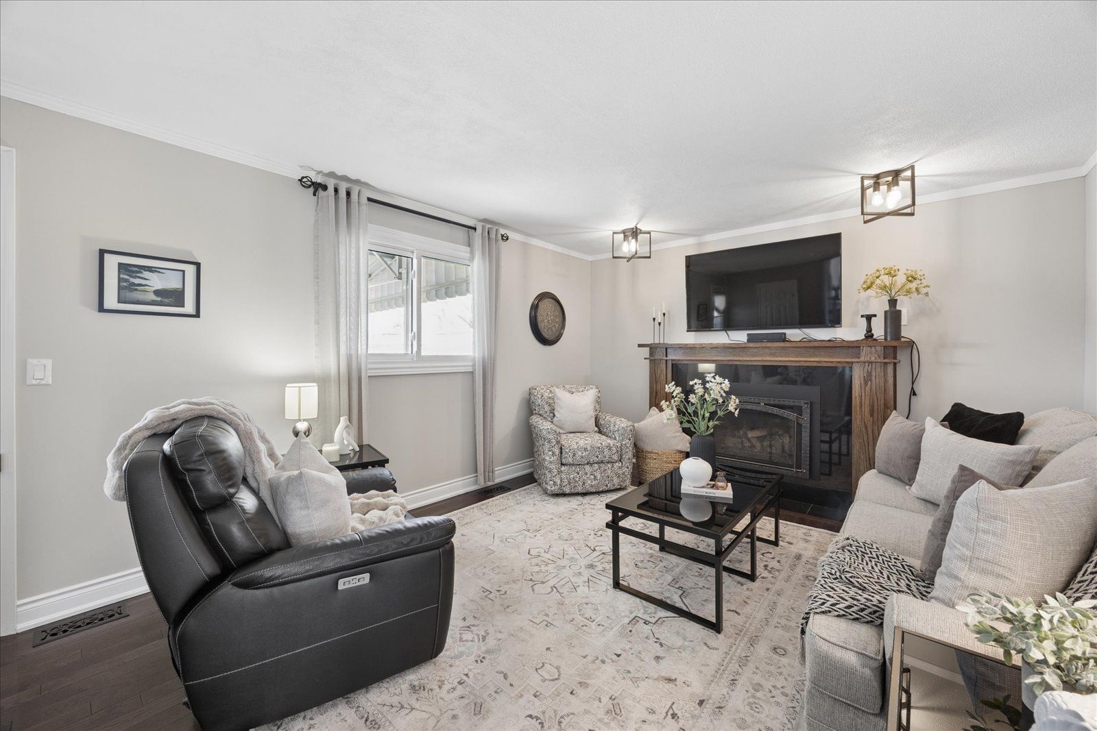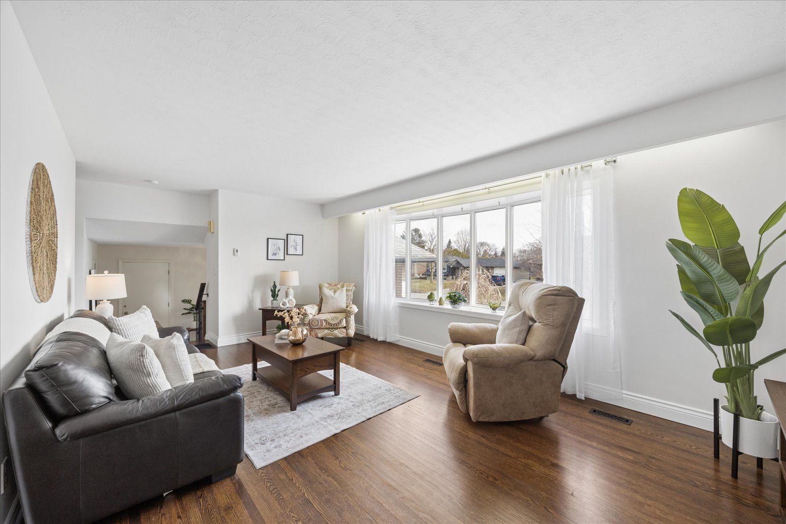 • Bright living room with hardwood flooring and natural light.