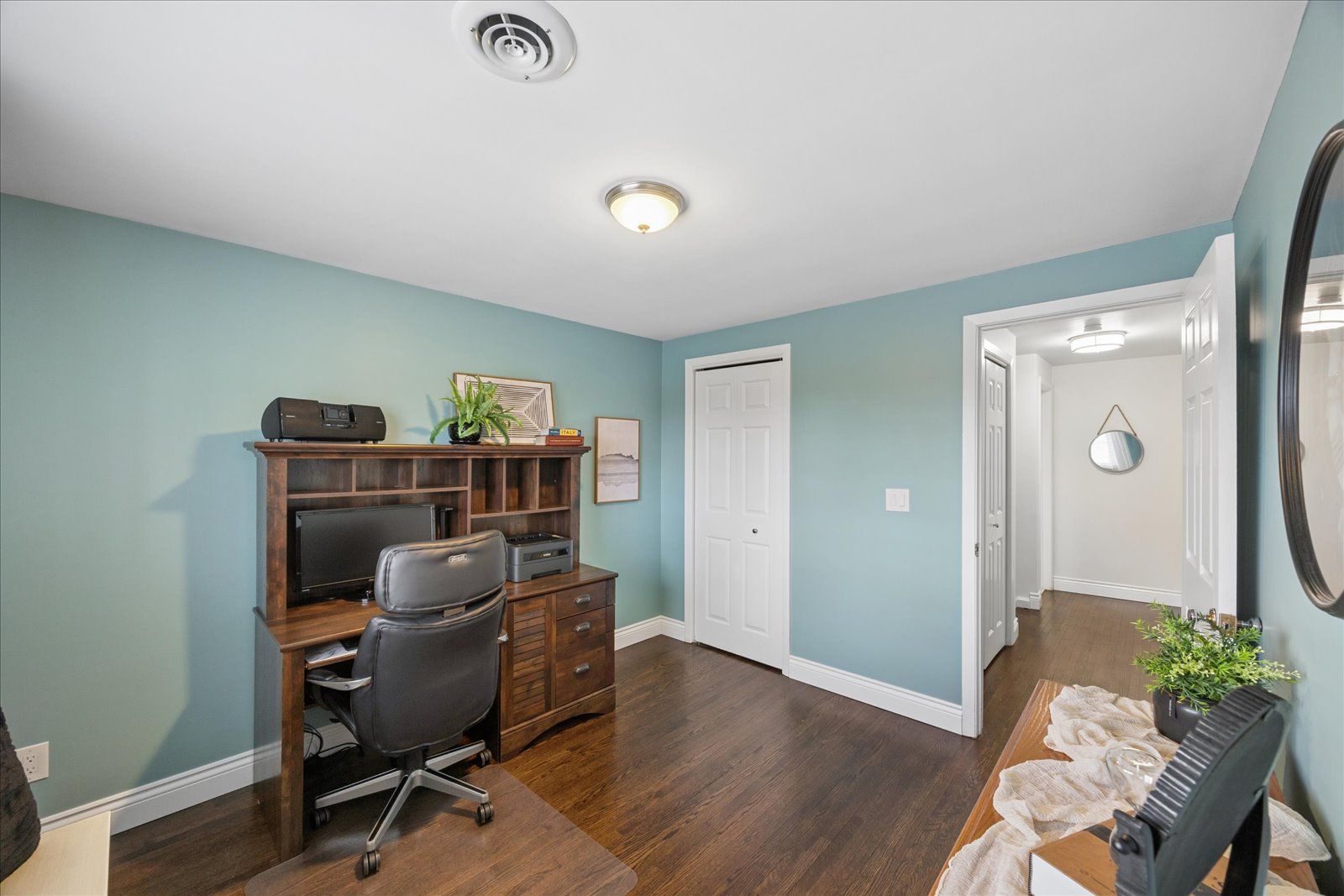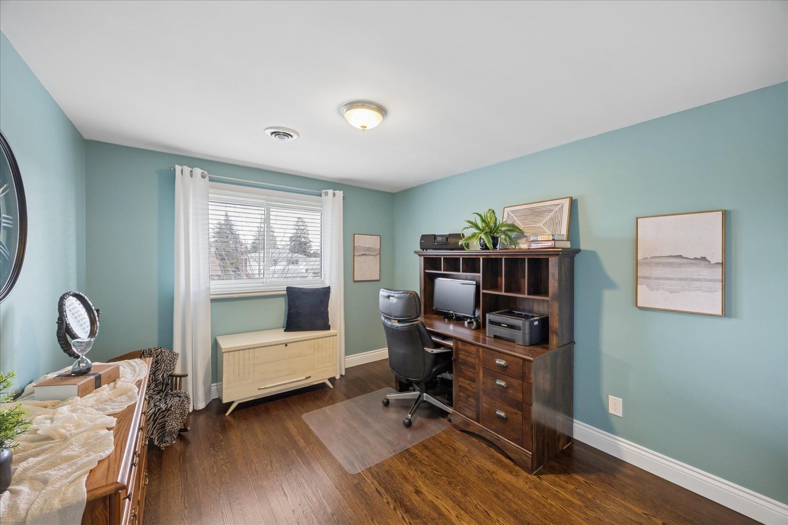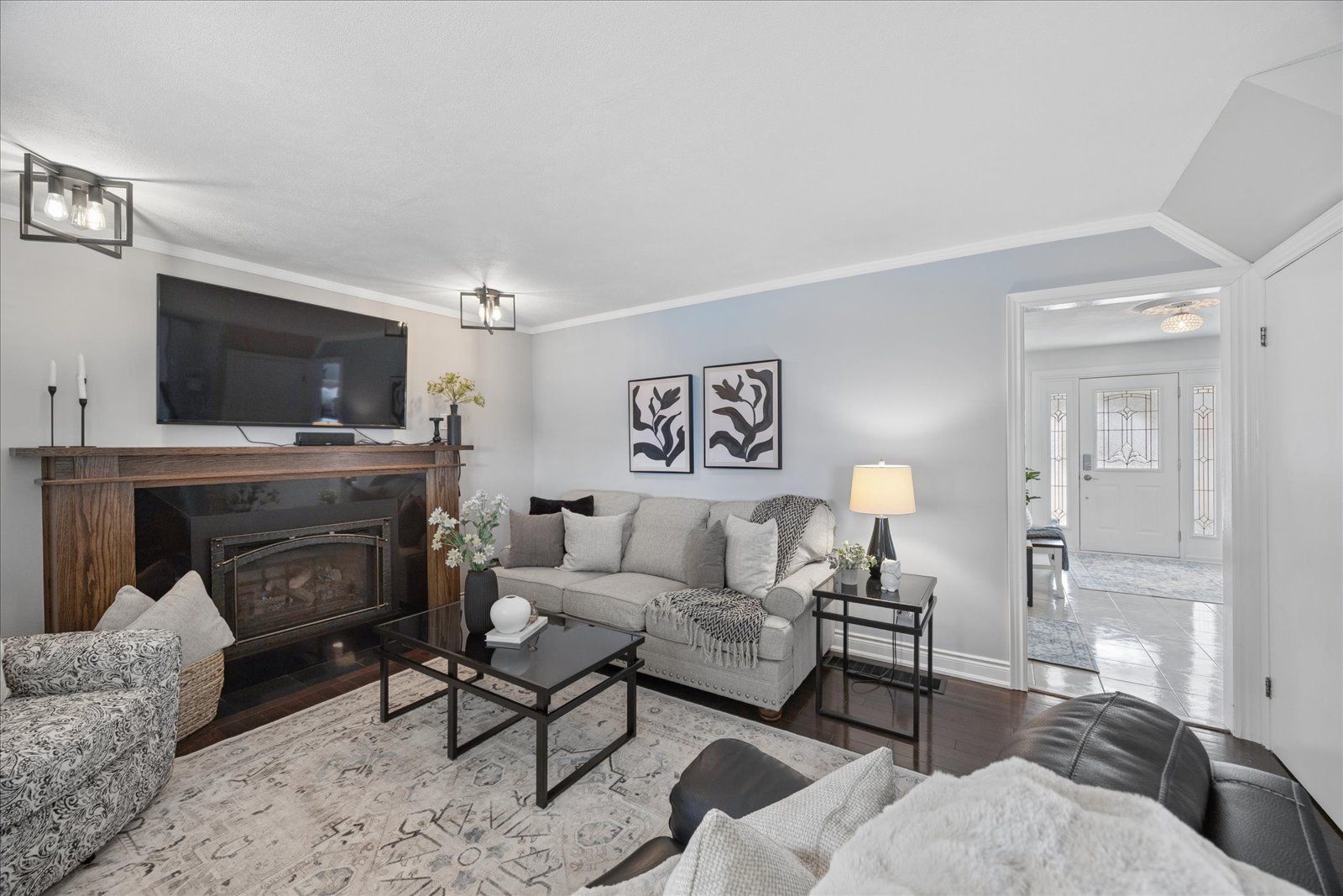 • Bright living room with hardwood flooring and natural light.