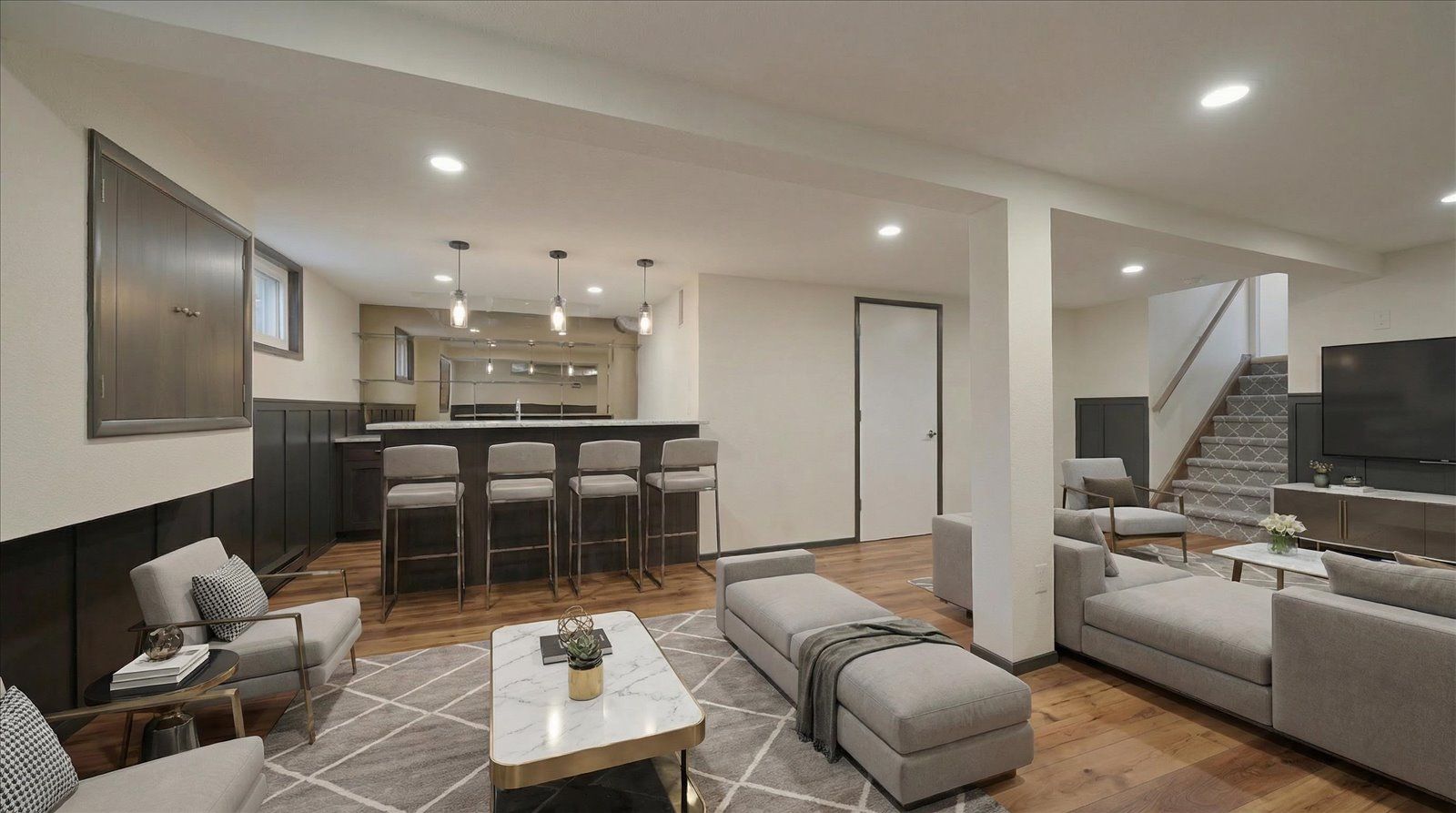 • Finished basement with wet bar, perfect for recreation or entertaining.