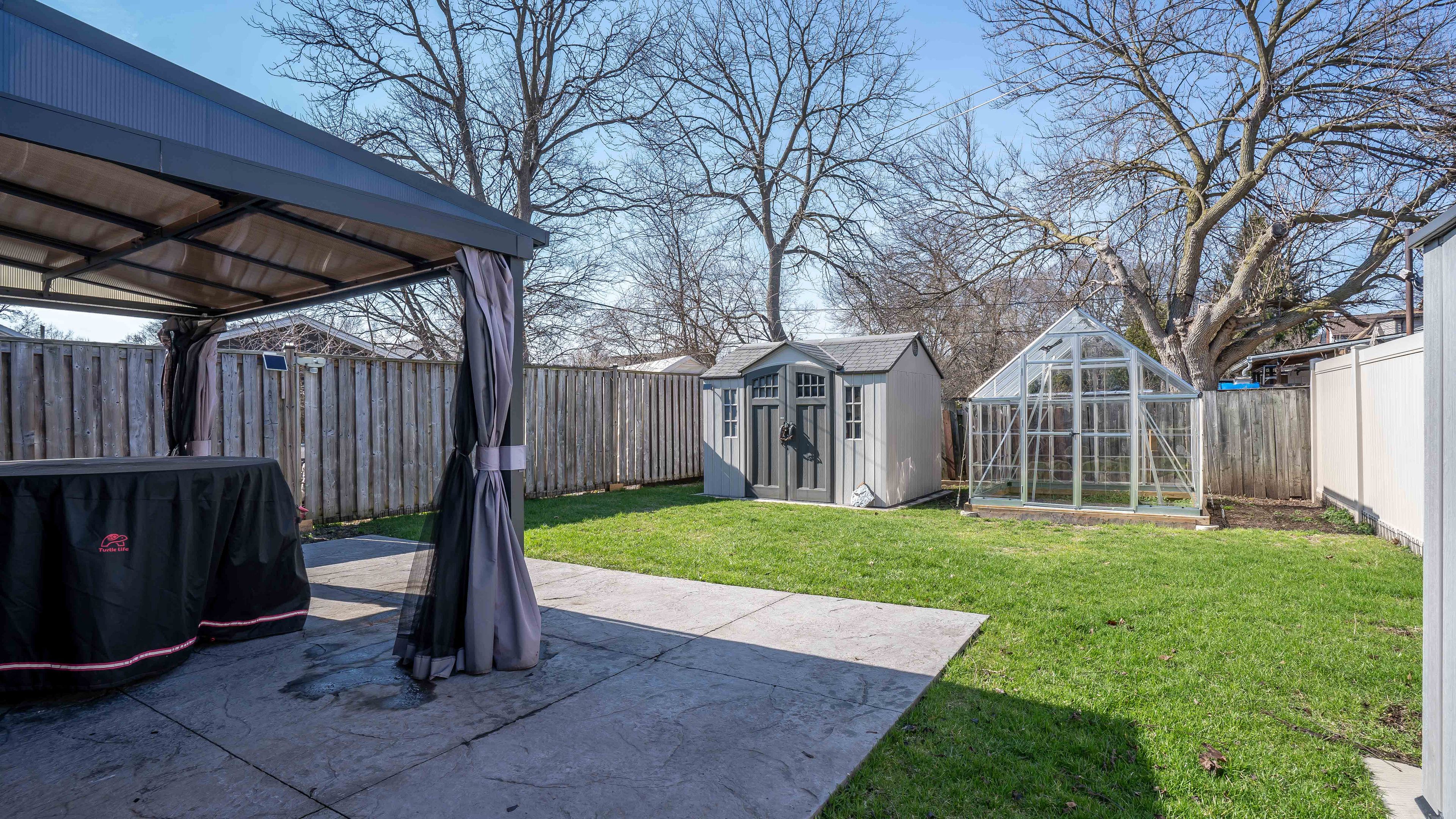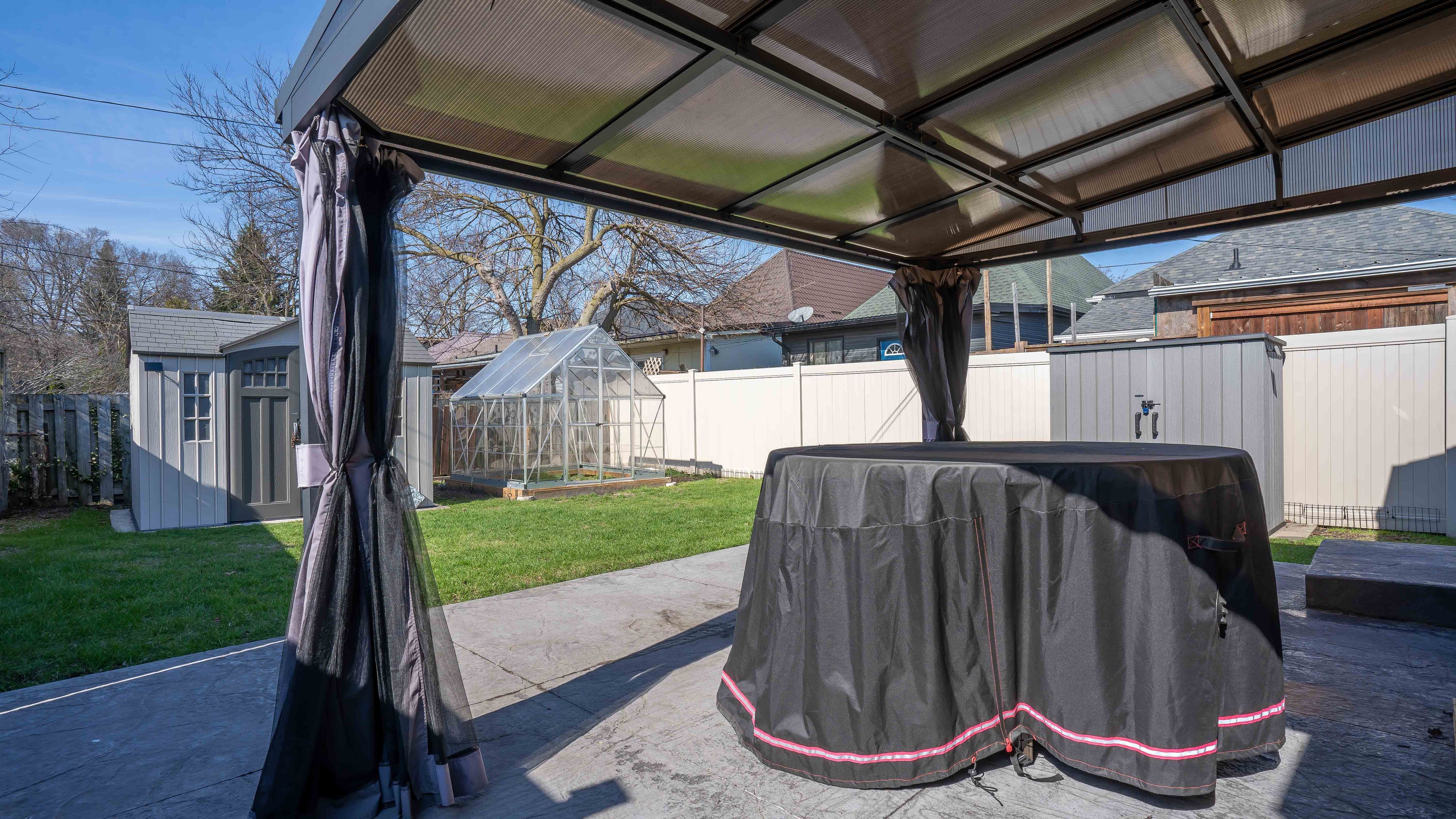 • Backyard features a newer concrete patio, shed, and covered gazebo.