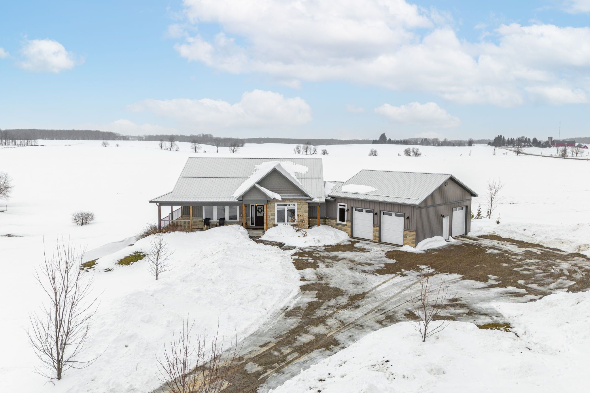 Just imagine... Waking up to wide open skies and rolling views in mulmur. Nearly nine acres stretch out before you, quiet and scenic, as your modern farmhouse rests comfortably in the landscape timeless, welcoming, and thoughtfully designed for the life you're living now. Built in 2019, this is a home where craftsmanship and comfort meet effortlessly. You step inside to the warmth of red oak hardwood floors underfoot. Morning light spills into the chef's kitchen, where a propane stove, pot filler, and generous walk-in pantry make cooking feel both practical and inspired. The wood-topped island becomes the natural gathering place where conversations linger over coffee from the coffee and wine bar, and evenings unwind with a glass poured just right. Life here is designed for ease. The primary suite on the main floor offers a peaceful retreat, with pastoral views, a private porch walkout, and a spa-like ensuite complete with heated floors and a freestanding soaker tub, a place to slow down, breathe, and reset at the end of the day. Downstairs, the finished lower level opens up a world of possibilities. With high ceilings, a bright open layout, private walkout, and two separate entrances, it's ready to adapt as your life evolves welcoming extended family, hosting guests, or creating future in-law accommodations with ease and independence. Outside, the land invites you to live fully. Quiet mornings on the porch. Family gatherings that spill from house to yard. Grandkids running free. Projects waiting in the detached heated shop. Space to tinker, organize, and dream a little bigger, with a separate pig barn and ample parking to support it all. This is a place to host, to retreat, to connect and to enjoy the freedom of country living without compromise. And with the flexibility of a long closing or sooner, this exceptional property can move on your timeline. This isn't just a home. It's the next chapter written exactly the way you want to live it!