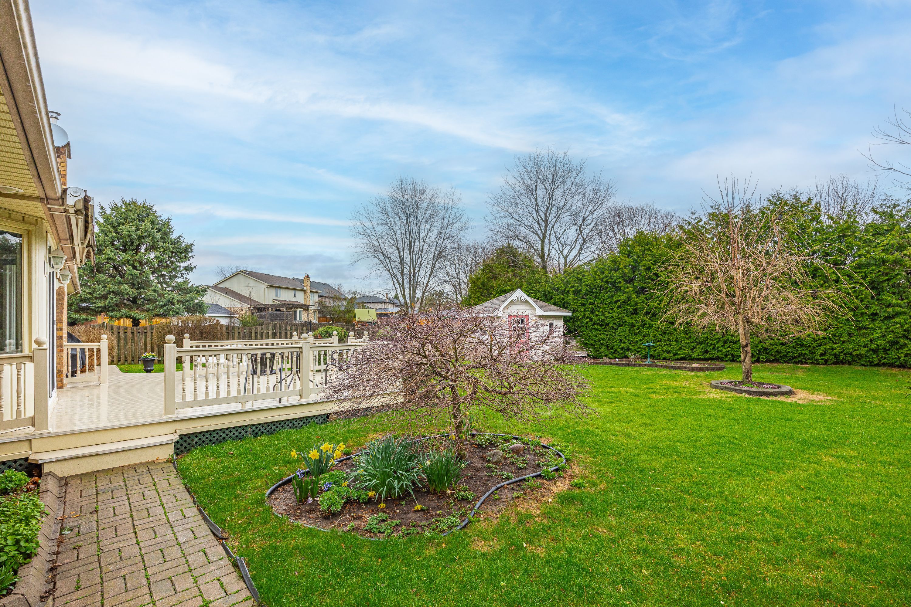 • Quiet backyard with a composite deck, gas BBQ, and irrigation system for convenience.