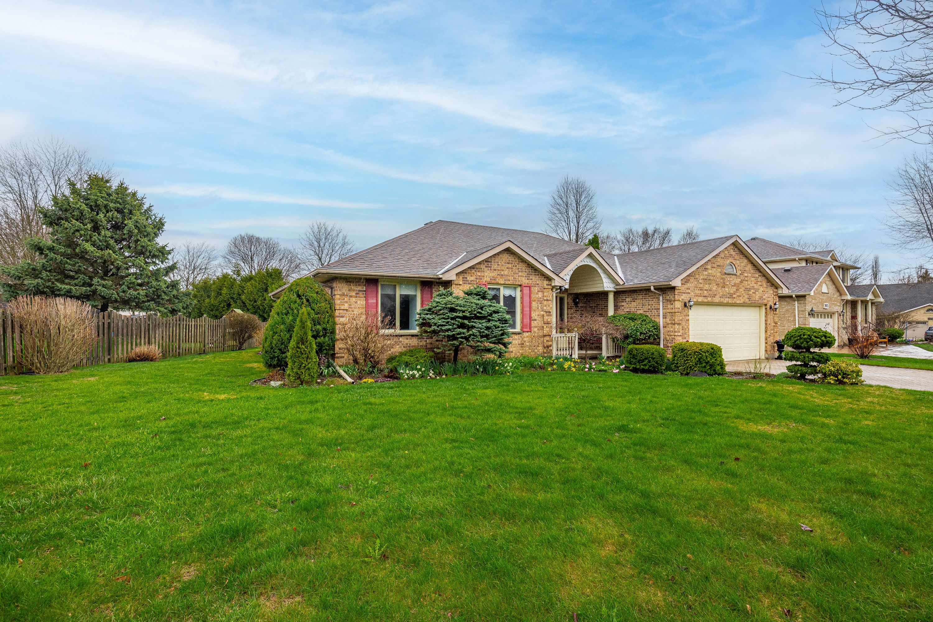 Welcome home to 7069 diane cres! This cozy bungalow is perfect for all stages in life and is situated in the beautiful, well established area of lambeth. You have quick access to the 402/401, grocery stores, schools, restaurants, quick convenience of tim hortons, pizza, lcbo, with lambeth and talbot village easily accessed for amenities! This home is solid brick construction, built in 1988. When you pull up to the home you will see an interlock double wide drive with parking space for 4 cars and a double garage with inside entry. You will enter to the spacious foyer with closets and a view to the sunken living room with vaulted ceilings, ample light from skylights and a brick gas fireplace to cozy up to in winter. Off the living room to one side is the kitchen, breakfast area and adjacent dining room which make it perfect to entertain. You have patio door access off the breakfast area to a composite deck that extends across the whole back of the house. The back yard is quiet, has an irrigation system, a gas bbq (included) and a retractable awning which makes summer entertaining even better! A garden shed with hydro completes the back yard which is fenced along back and one side. To the other side of the living room is 3 bedrooms. The primary with a walk in closet and 4pc ensuite. The primary also has french doors to the back deck area. Downstairs access is just off the inside garage entry and mudroom. It would work well for an in-law suite or contained teenage den as it has a bedroom, rec room, office and 3 pc bathroom. Downstairs you will also find an incredible workshop for the handy person! This home has so much potential and space to grow. If you are looking for a wonderful family area, you have found it! Updates are: skylights, roof (approx 10 yrs), some windows, newer kitchen appliances, ac (7-10 yrs), ventilation system in workshop.