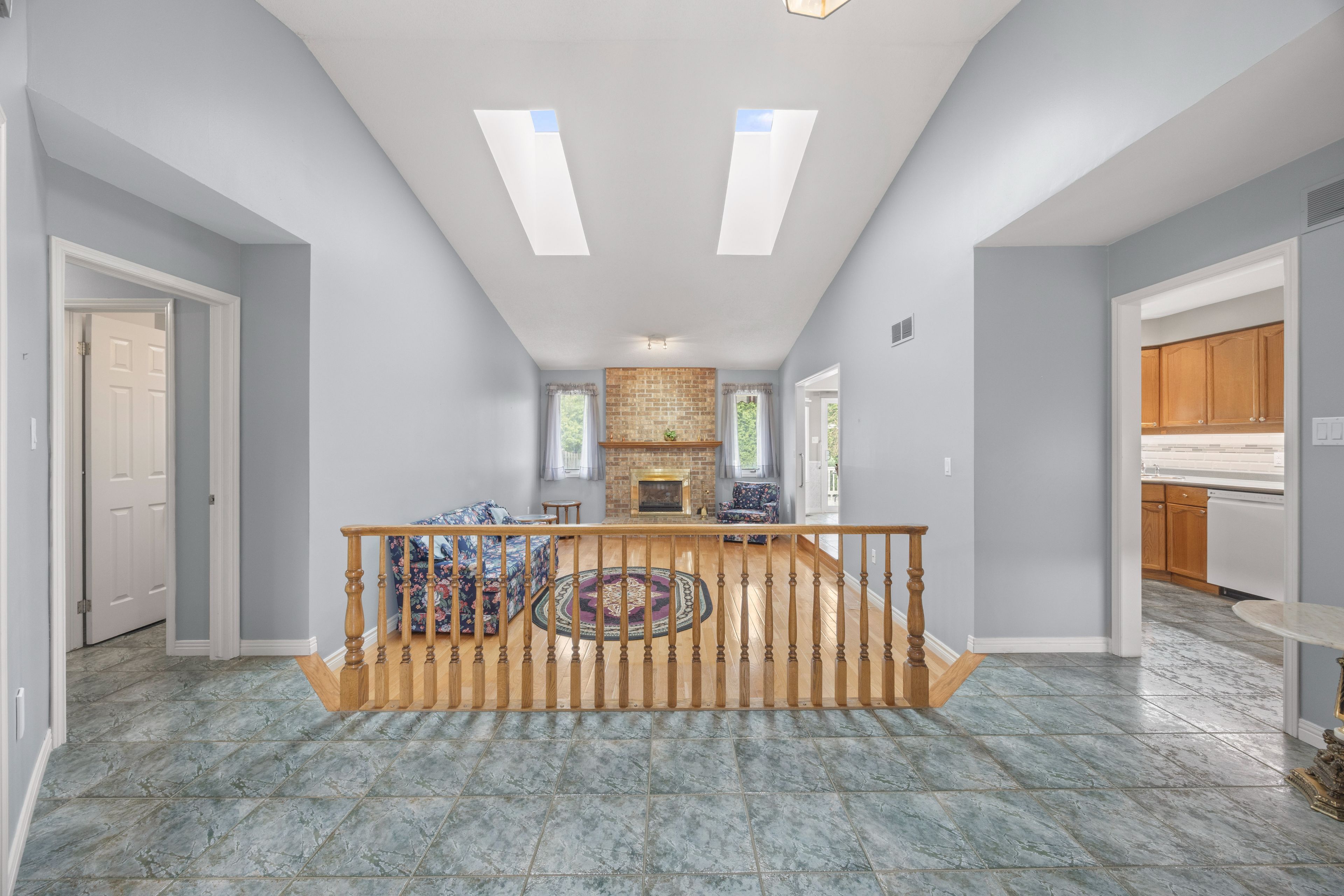 • Solid brick construction with a spacious foyer and sunken living room featuring vaulted ceilings.