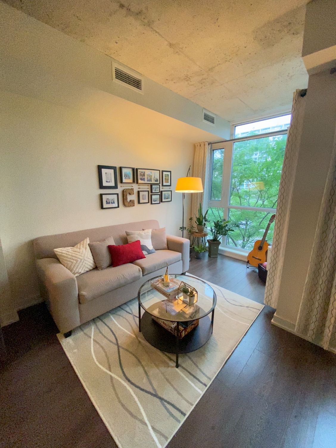 Tired of being surrounded by concrete? This condo is your solution. A quiet, boutique loft-style residence perfectly nestled in the connecting heart of the city - where urban city energy meets tree-lined residential charm. Located in vibrant bloorcourt village, you're less than a 5-minute walk to ossington subway station, placing the entire city at your doorstep. Step outside and you're moments from neighbouring communities - the annex, ossington strip, little italy, and queen west - each offering an incredible mix of local cafés, independent shops, and standout restaurants. Inside, this bright and airy suite boasts an impressive 12'6" width, creating an expansive feel rarely found in condo living. With 9-foot ceilings and floor-to-ceiling windows, natural light pours in, enhancing the open, easy-to-live-in layout. The spacious bedroom offers a large closet and a quiet retreat from the city buzz. A charming corner nook adds versatility - perfect for a home office, reading corner, or coffee station - a flexible bonus space that brings both character and function. The thoughtfully designed floor plan flows effortlessly for everyday living and entertaining.