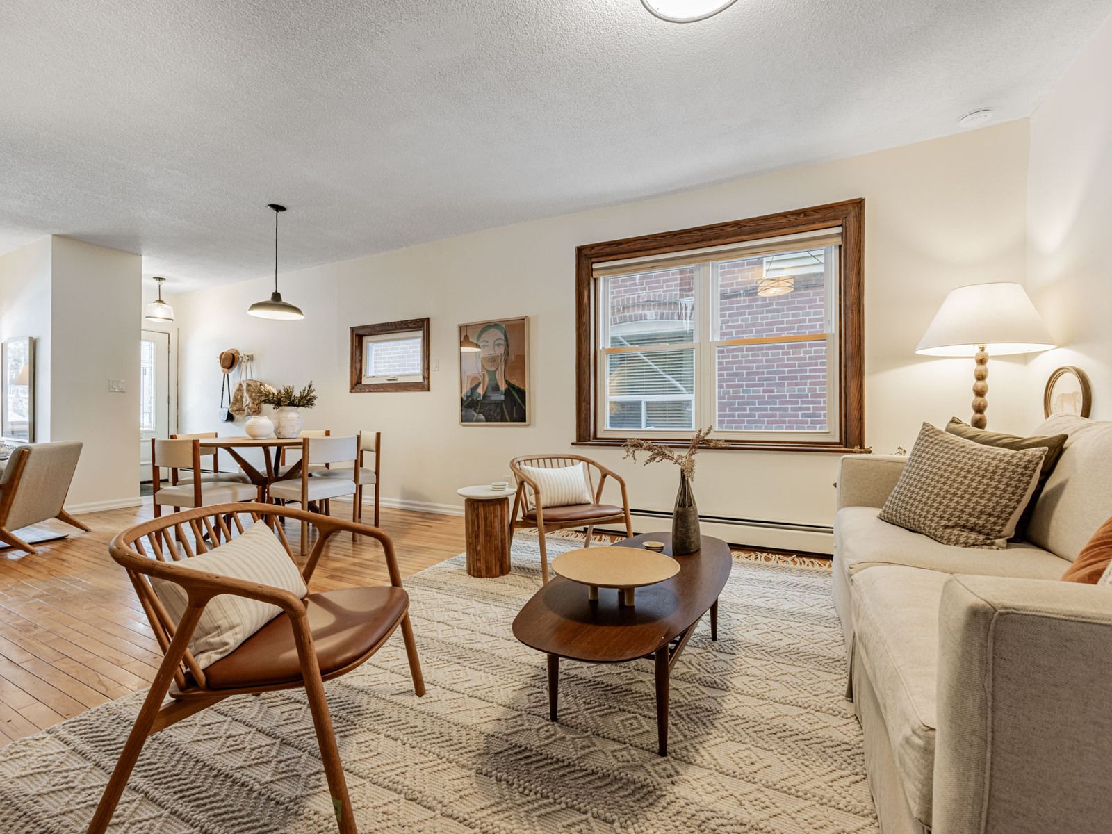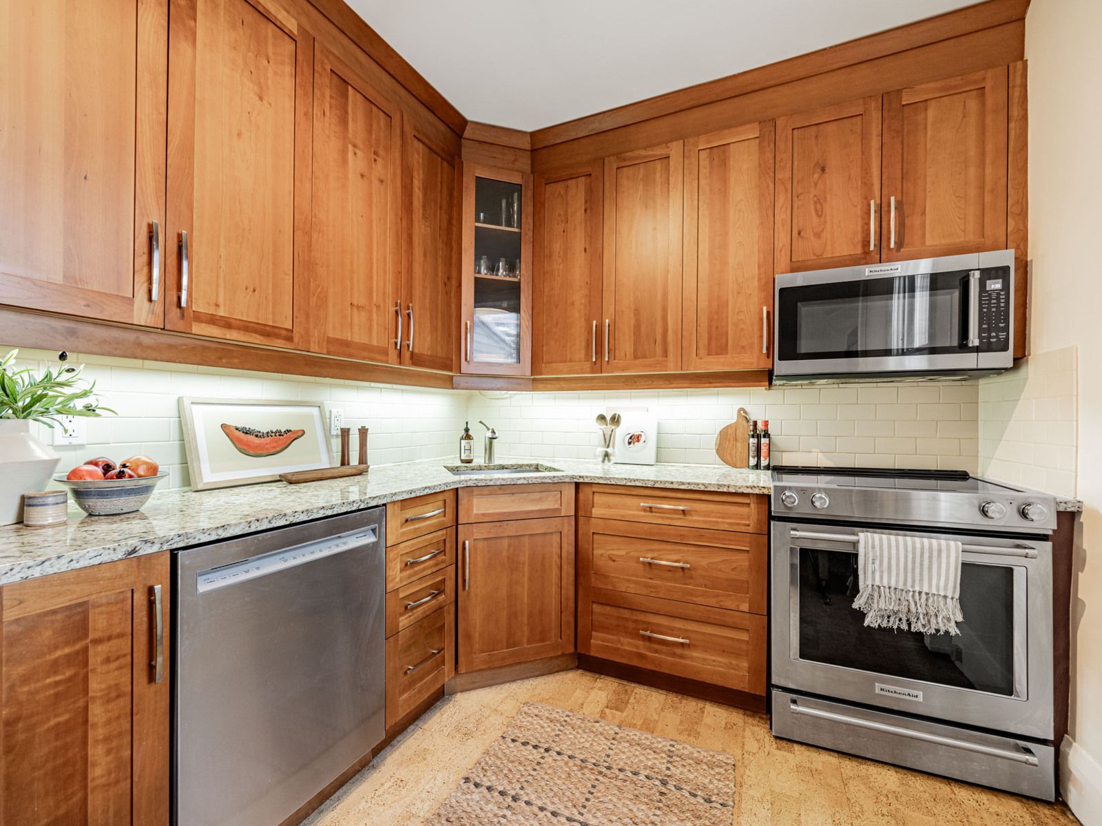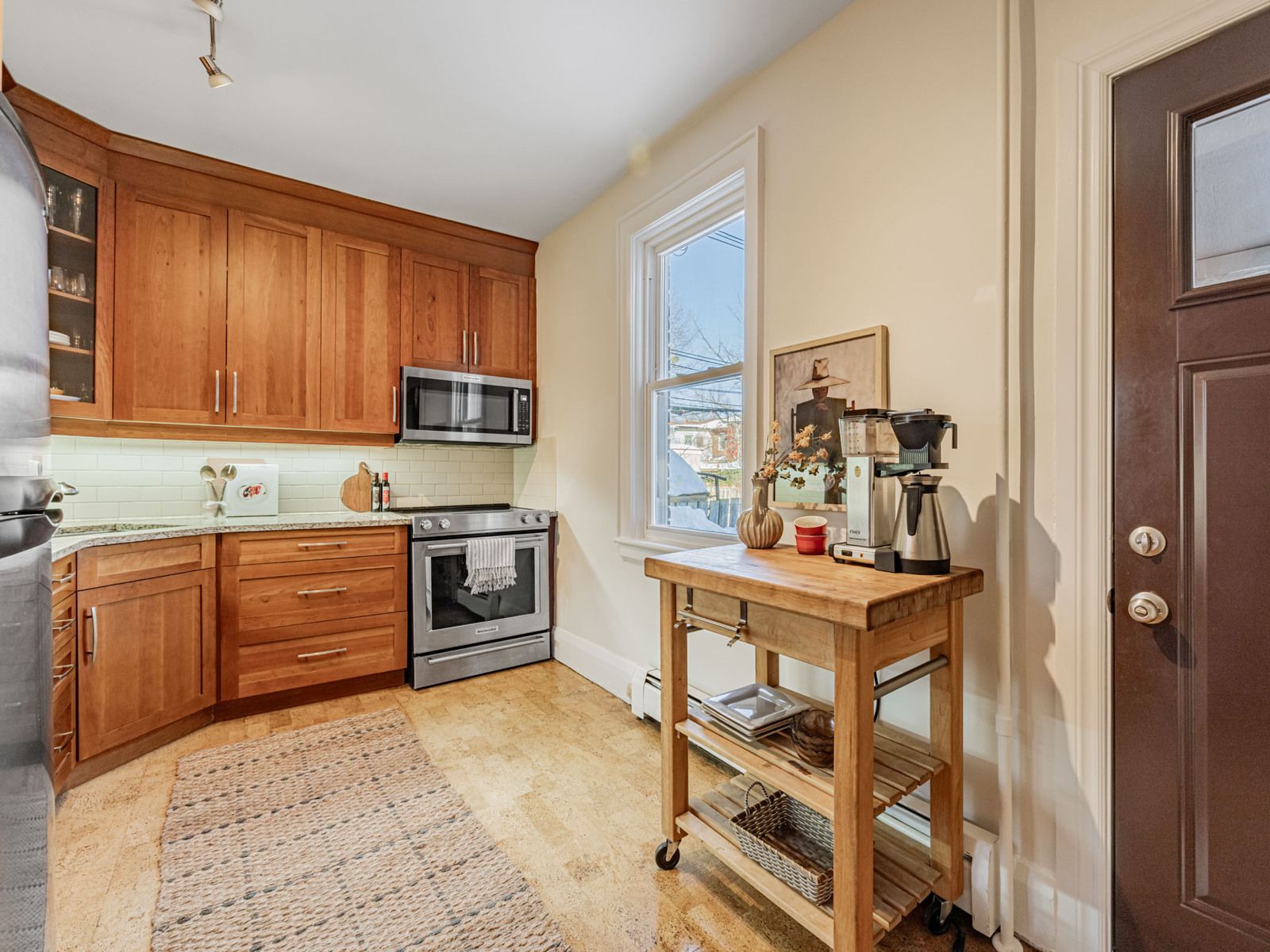 • Updated kitchen with stainless steel appliances and ample cabinet space.