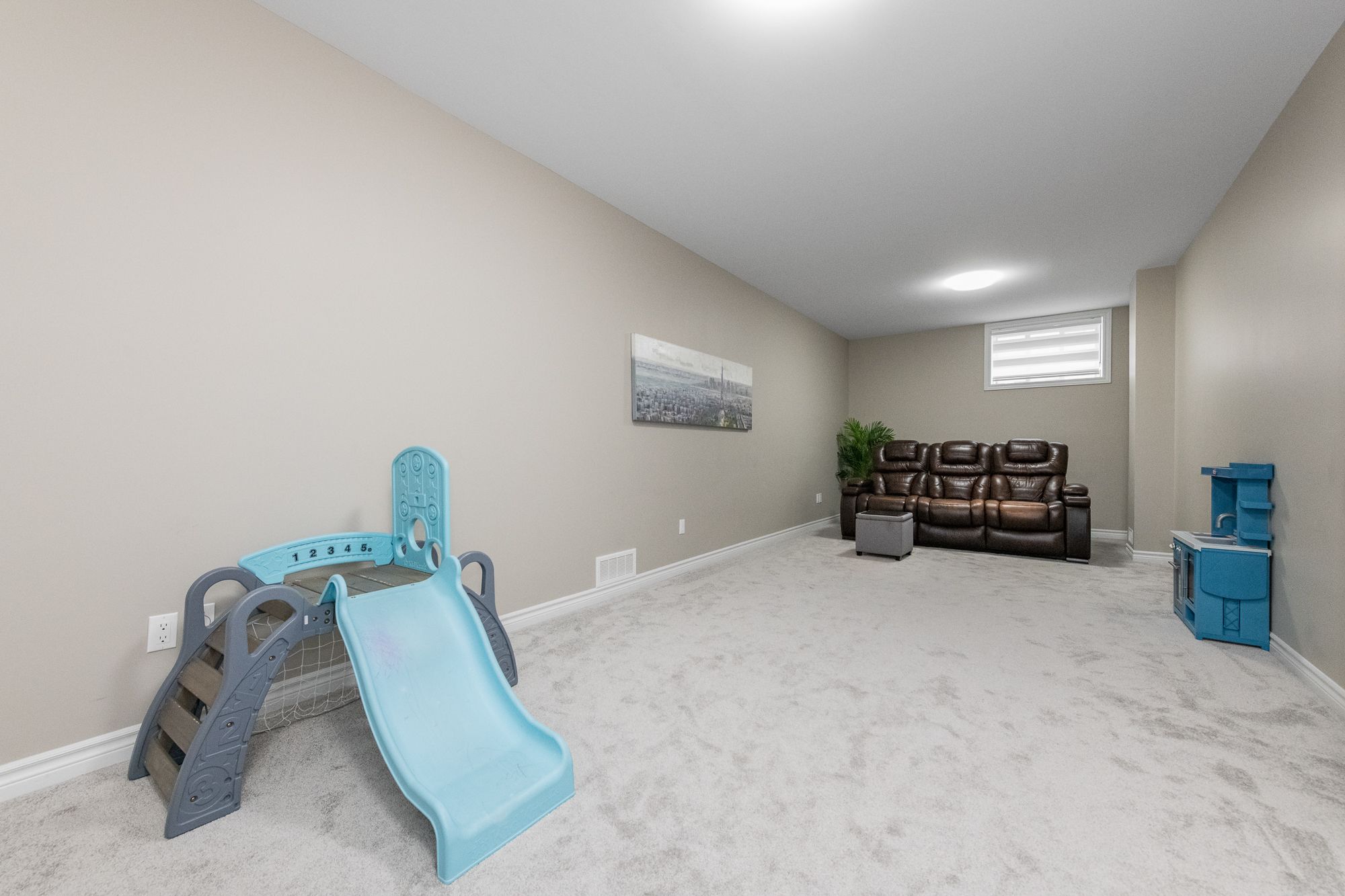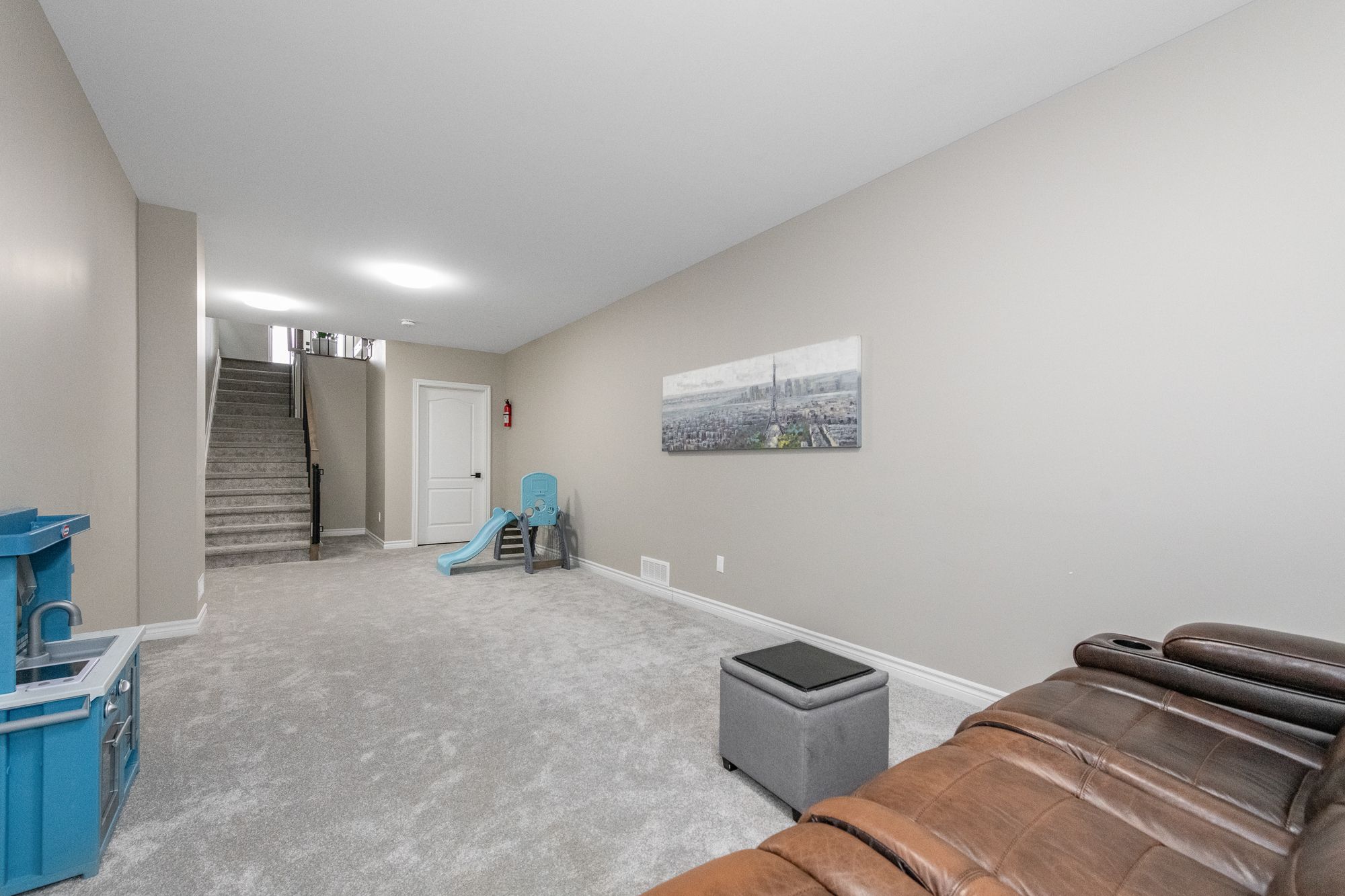 • Finished basement with a large recreation room and storage.