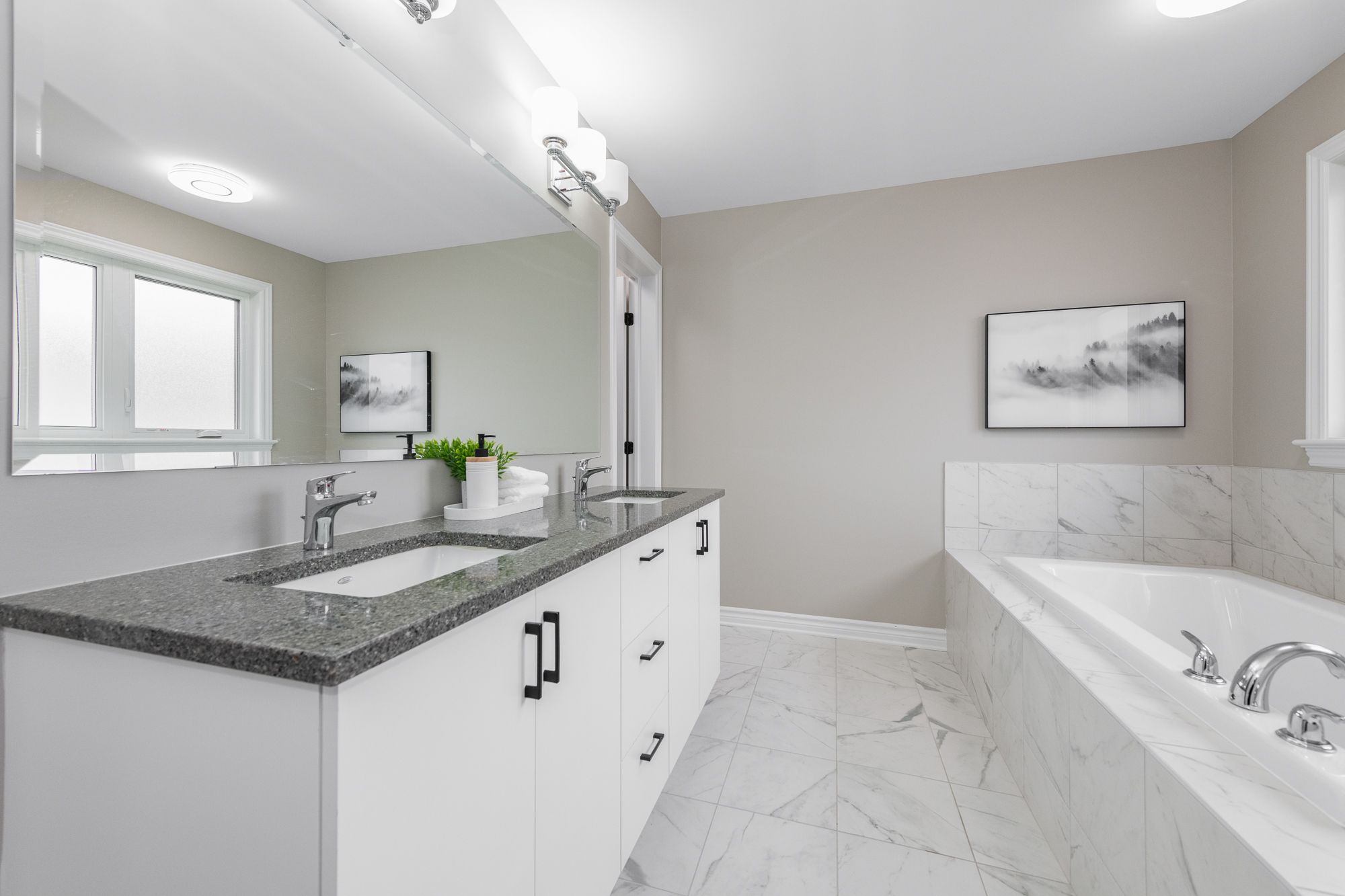 • Modern kitchen with quartz counters and high-end appliances.